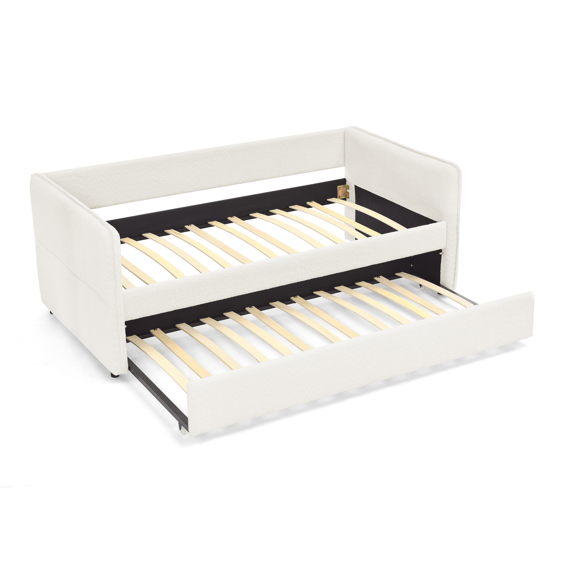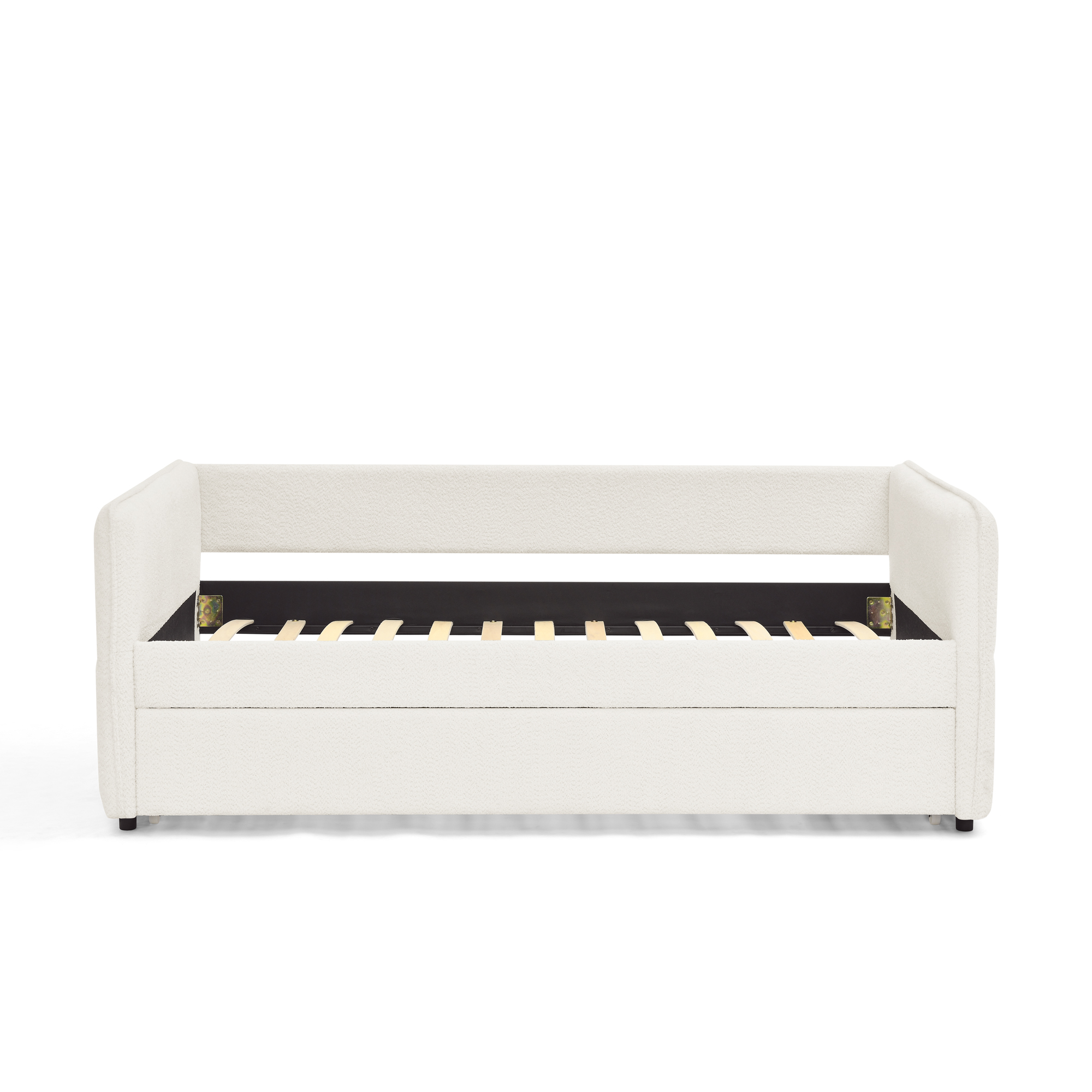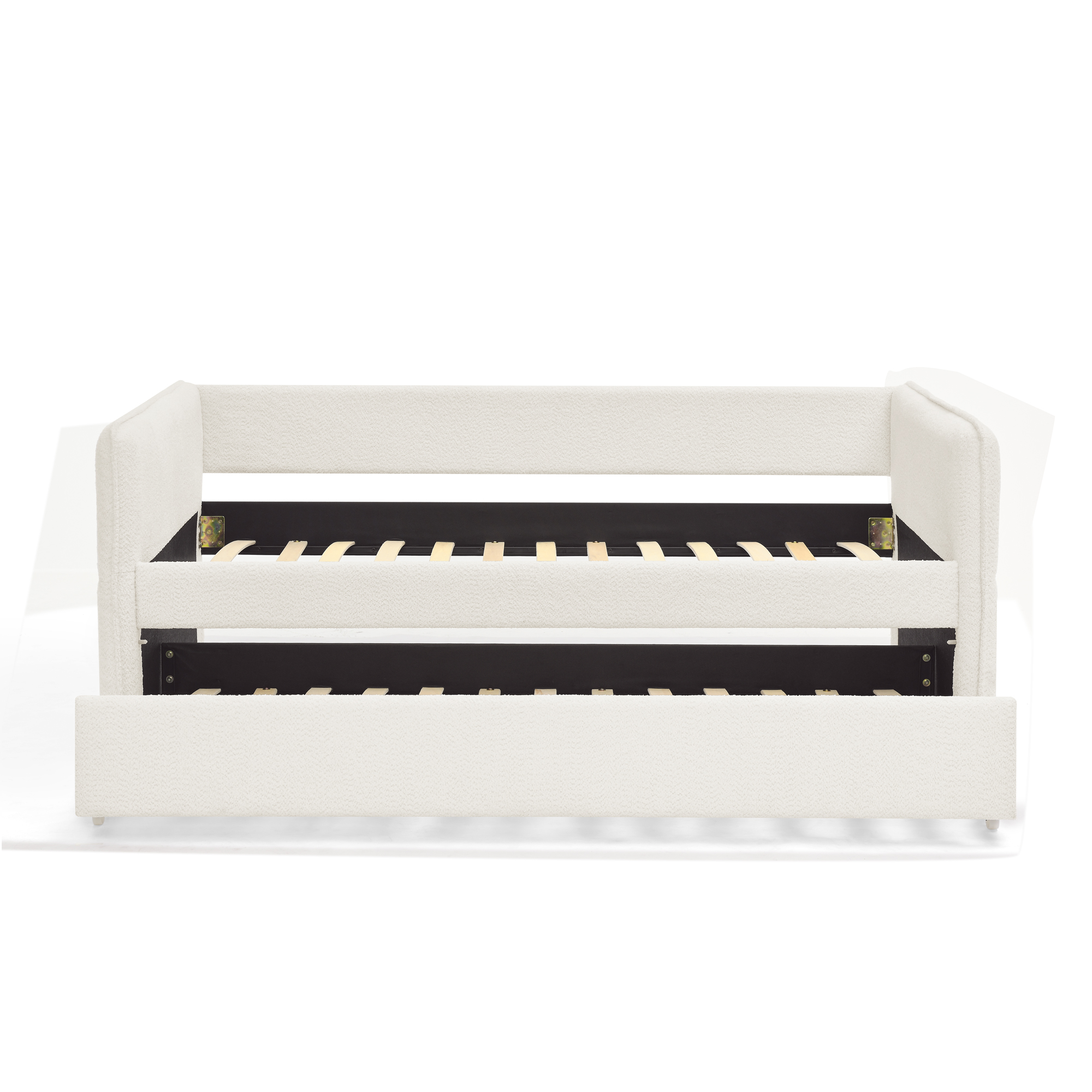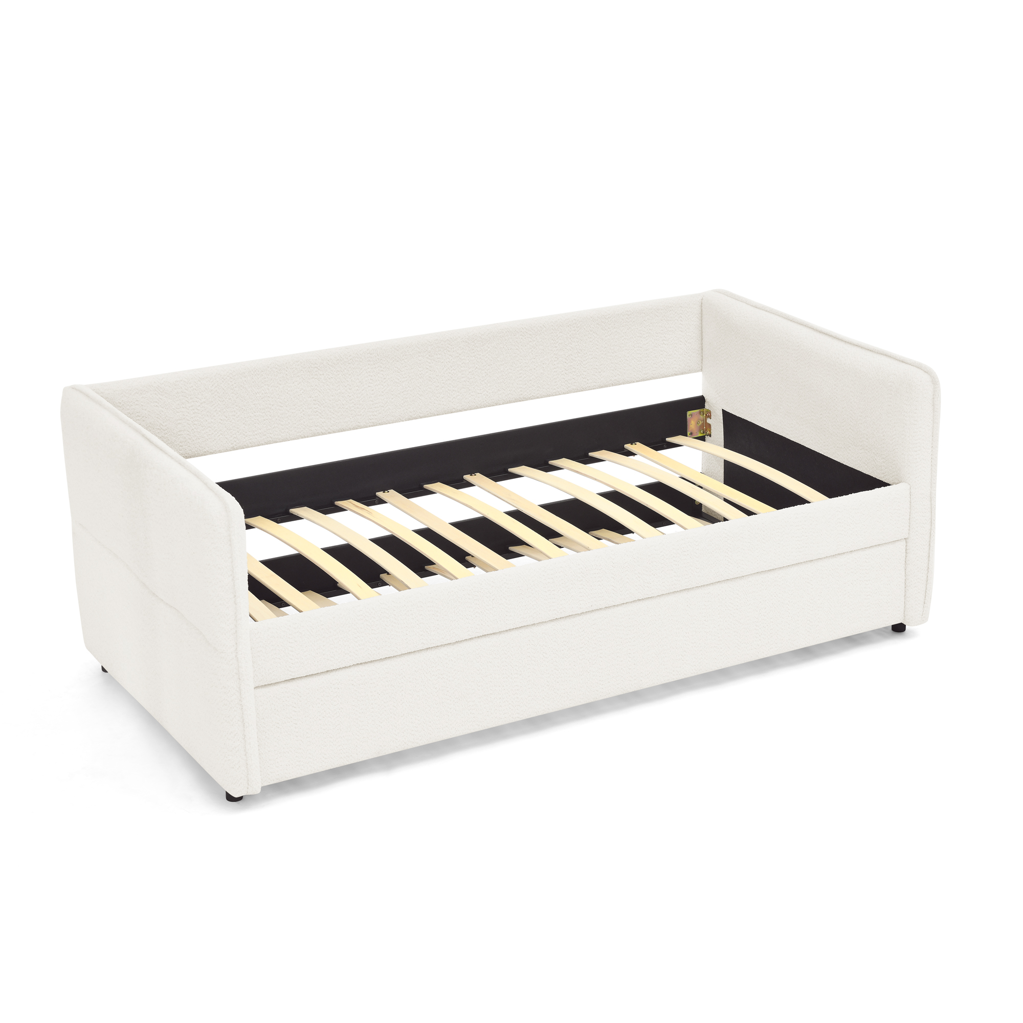 - [Comfortable Experience] Foam padded sides and back that provide optimal back support and comfort.This twin-size daybed provides you with a great seating experience that ergonomically supports your back and arms. Meanwhile gorgeous soft fabric ensures you can keep cool for extended periods.