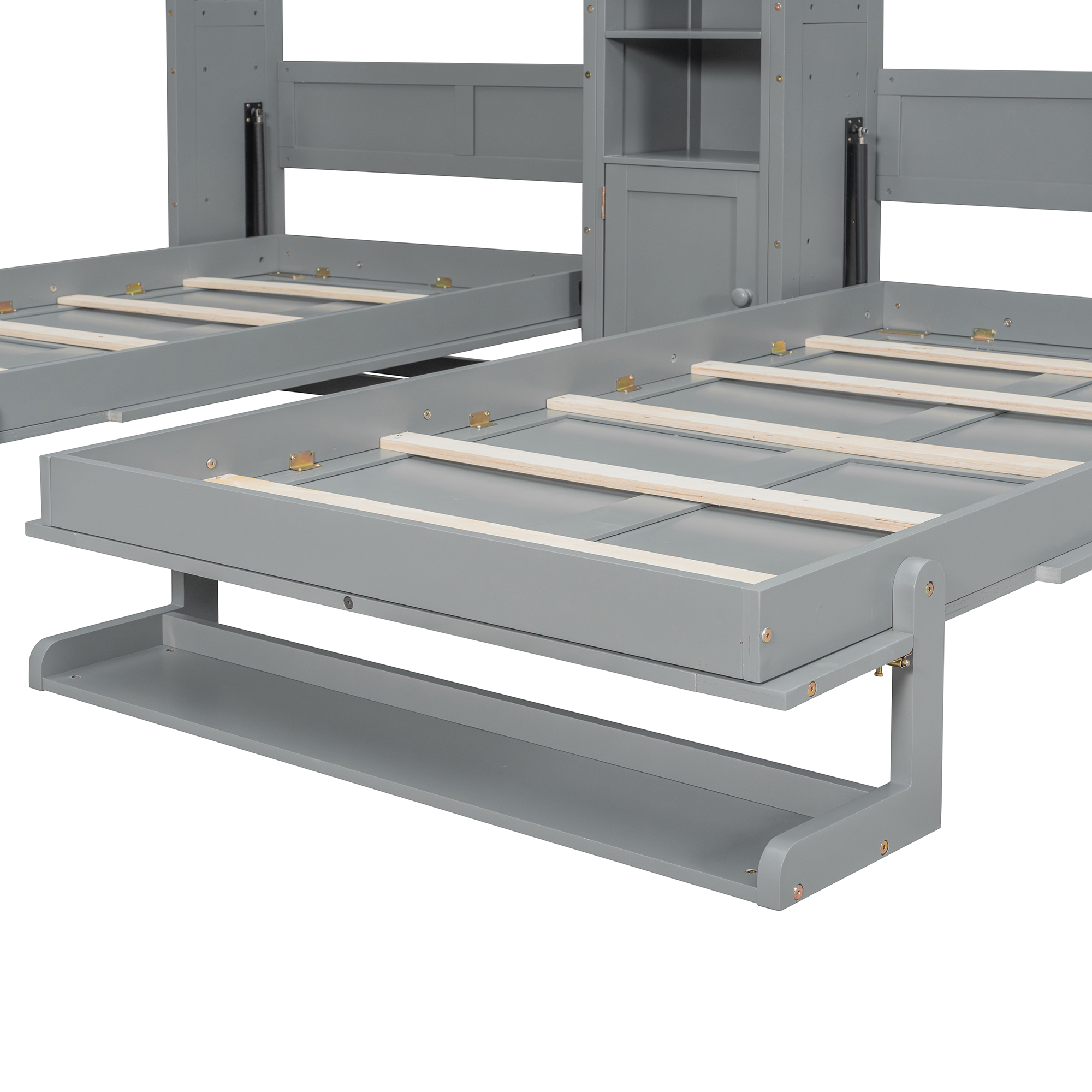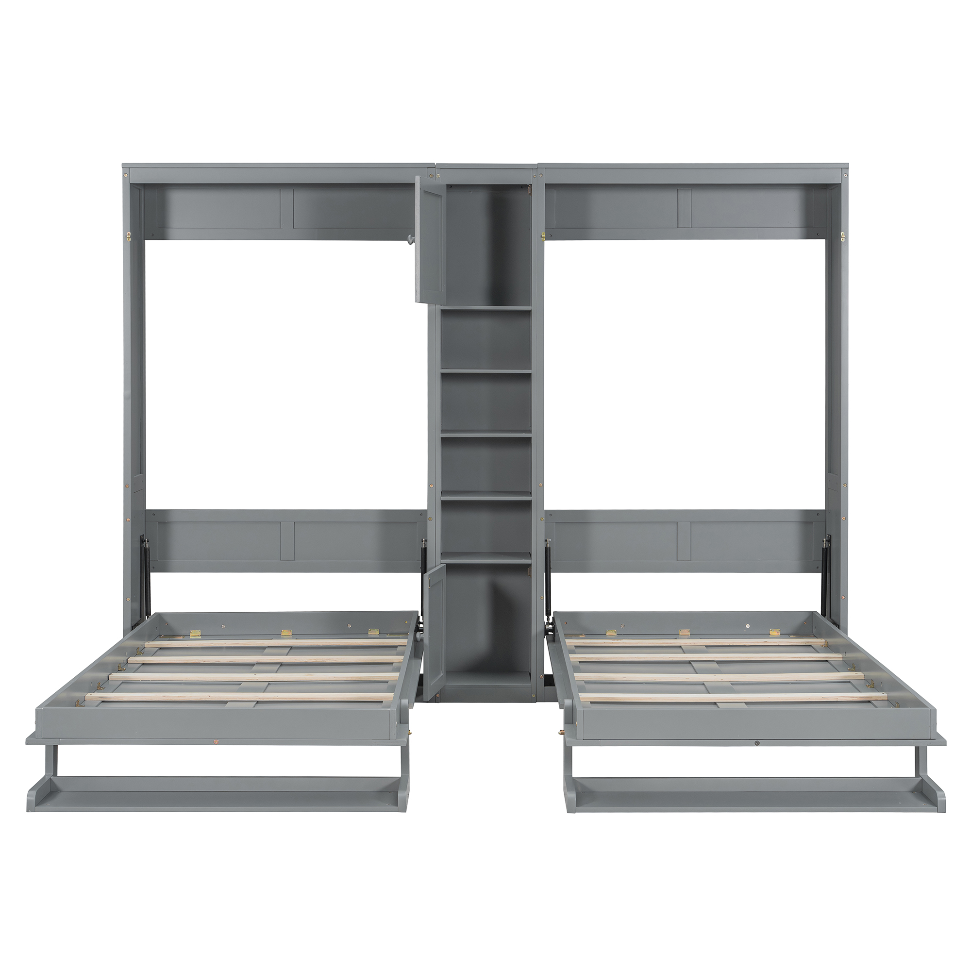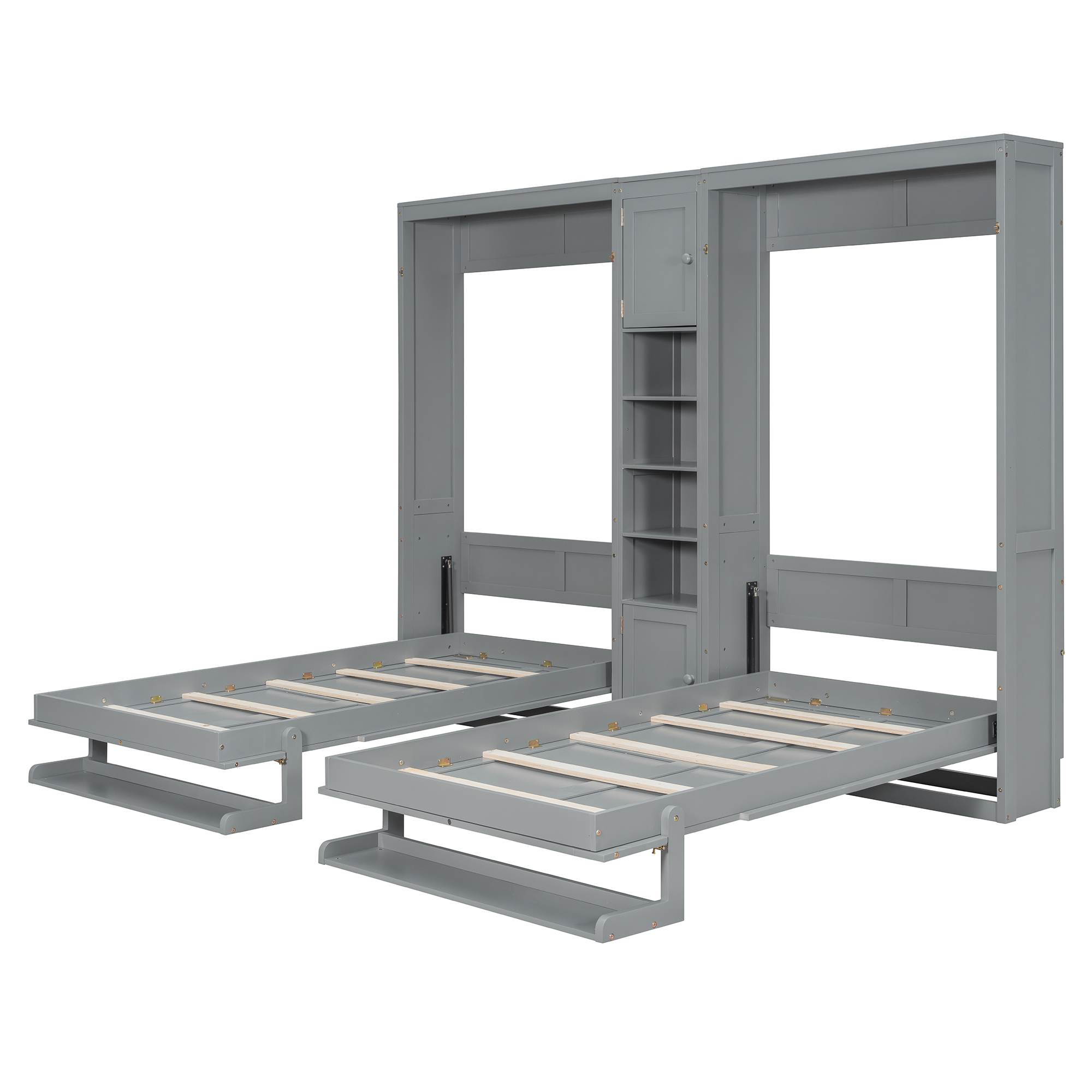 Dual Twin Size Wall Murphy Beds With Cabinets And Shelves