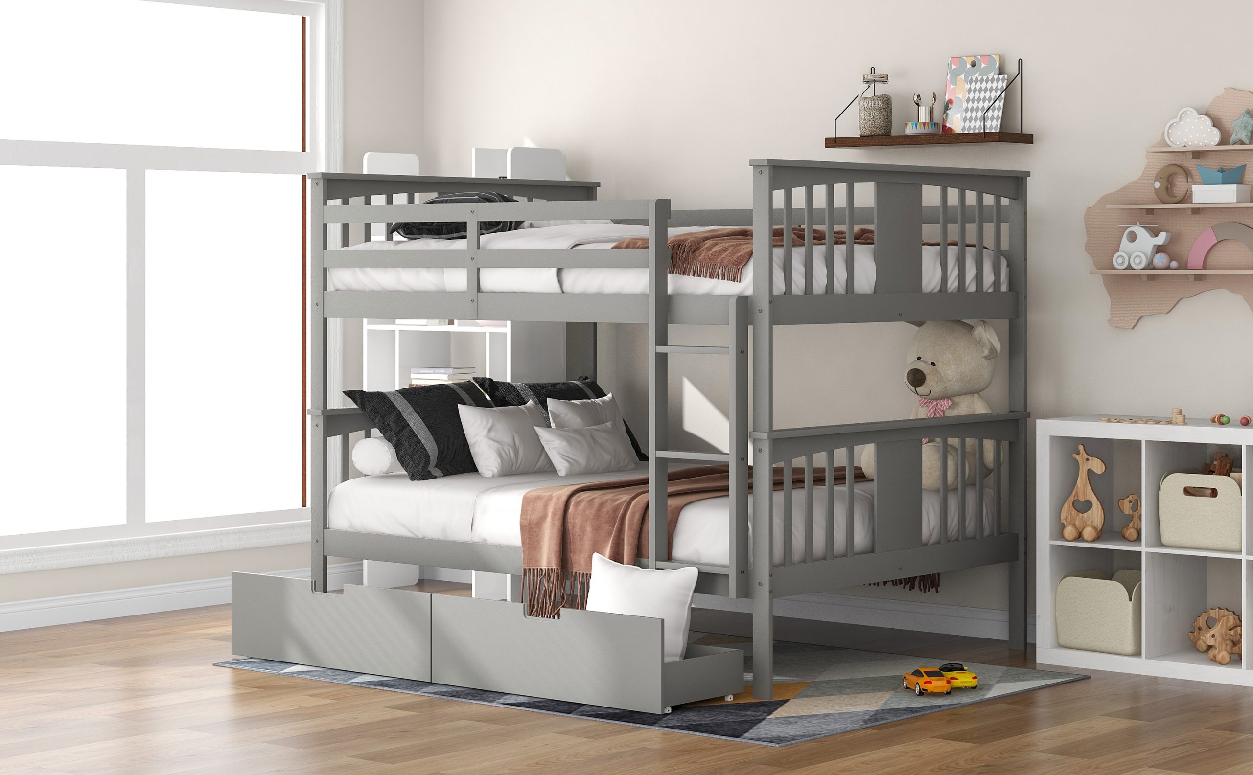 - [Versatility galore] This bunk bed features one full size upper bed, one full size bottom bed and a pair of drawers for accommodating you or overnight sleepers. It can also be divided into two individual beds for even more convenience, depending on how you want to organize your space. No spring box needed.
