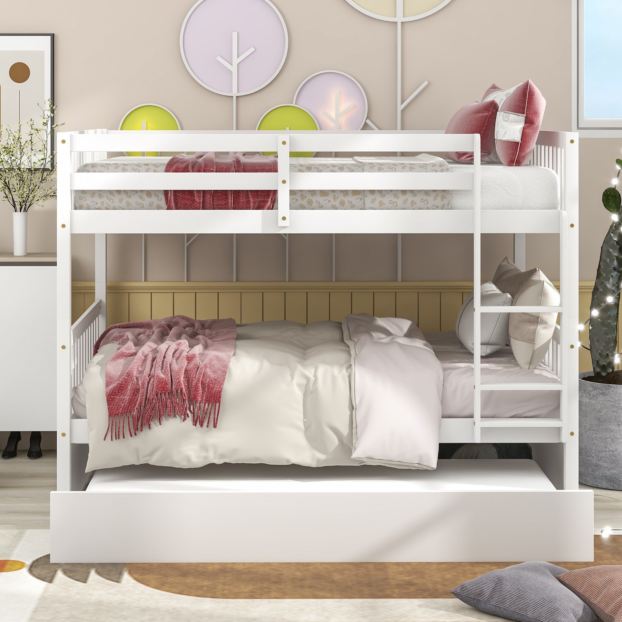 - [Pull-Out Trundle for Guest] The withdrawal of the trundle can be conducted effortlessly, creating a separate bed for guests, establishing a comfortable and exhilarating experience during their staycation. Trundle can be the key formula to generate unforgettable memories with your overnight guests.