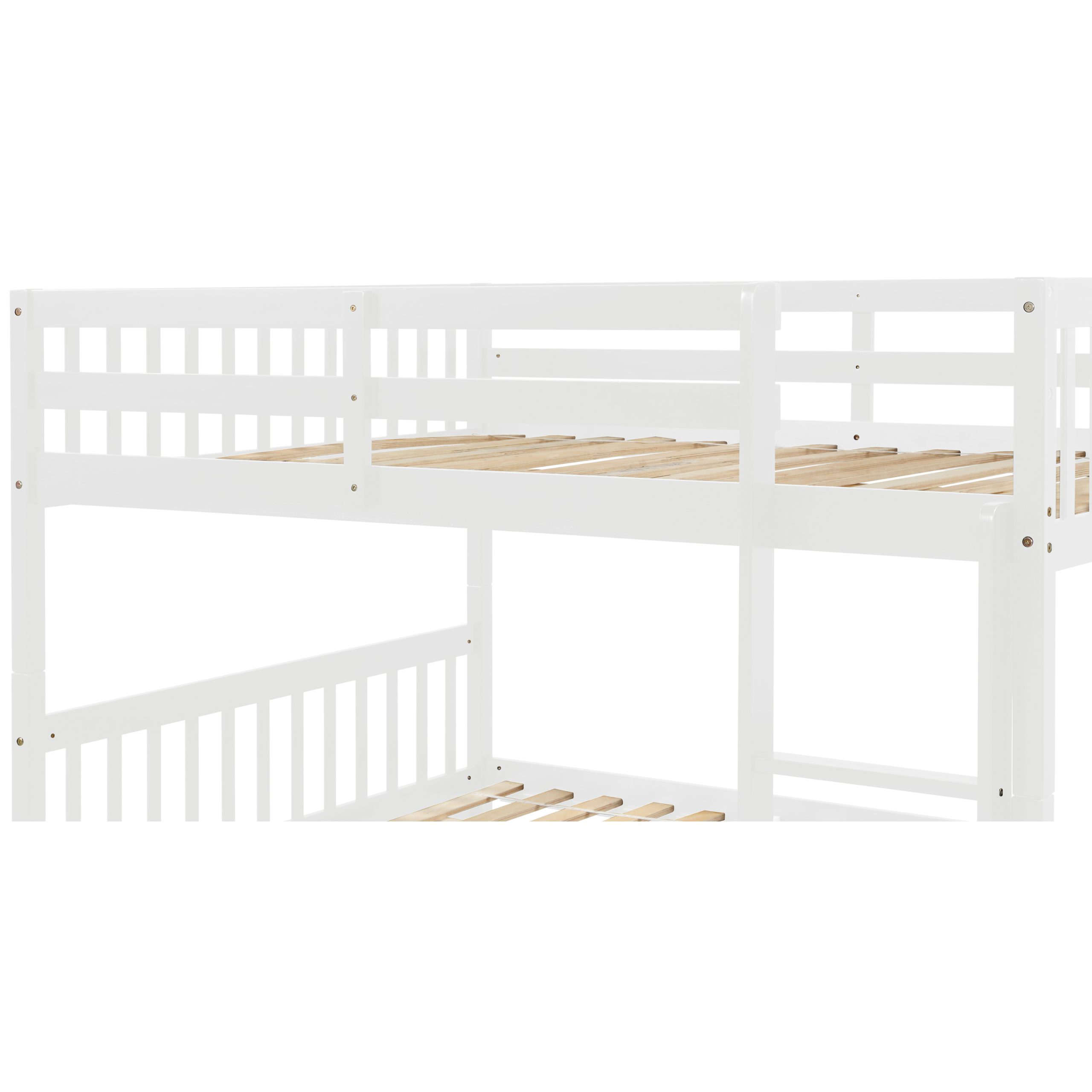 - [Safety and Quality Guaranteed]3.1 [Strengthened Lower Bedframe] This bunk bed is mainly crafted from quality pine wood, 10 bed slats upgraded to 14 bunk slats, providing lasting sturdiness and durability. The addition of a slat-support further increases the stability of the lower bed frame, optimizing the environment, comfort and mind for better quality sleep and more restful nights. The high guard rails surrounding the upper-bunk bed will further protect children from falling off the bed.