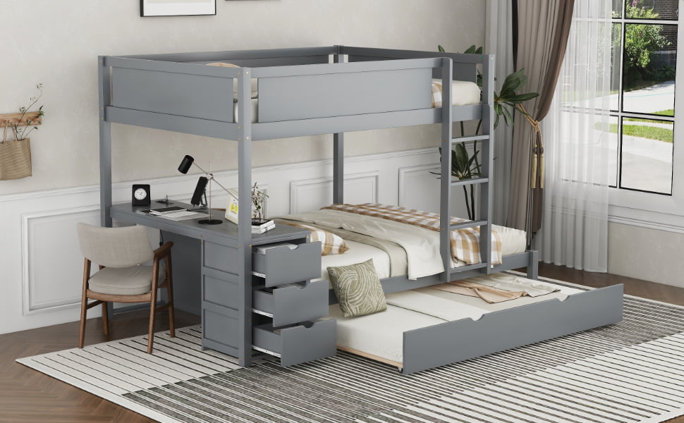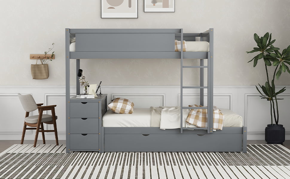 - [Versatility Galore] This bunk bed comes with a twin-size trundle that accommodates big families or any overnight sleepers. Functional and aesthetic, this bunk bed will enhance any bedroom.