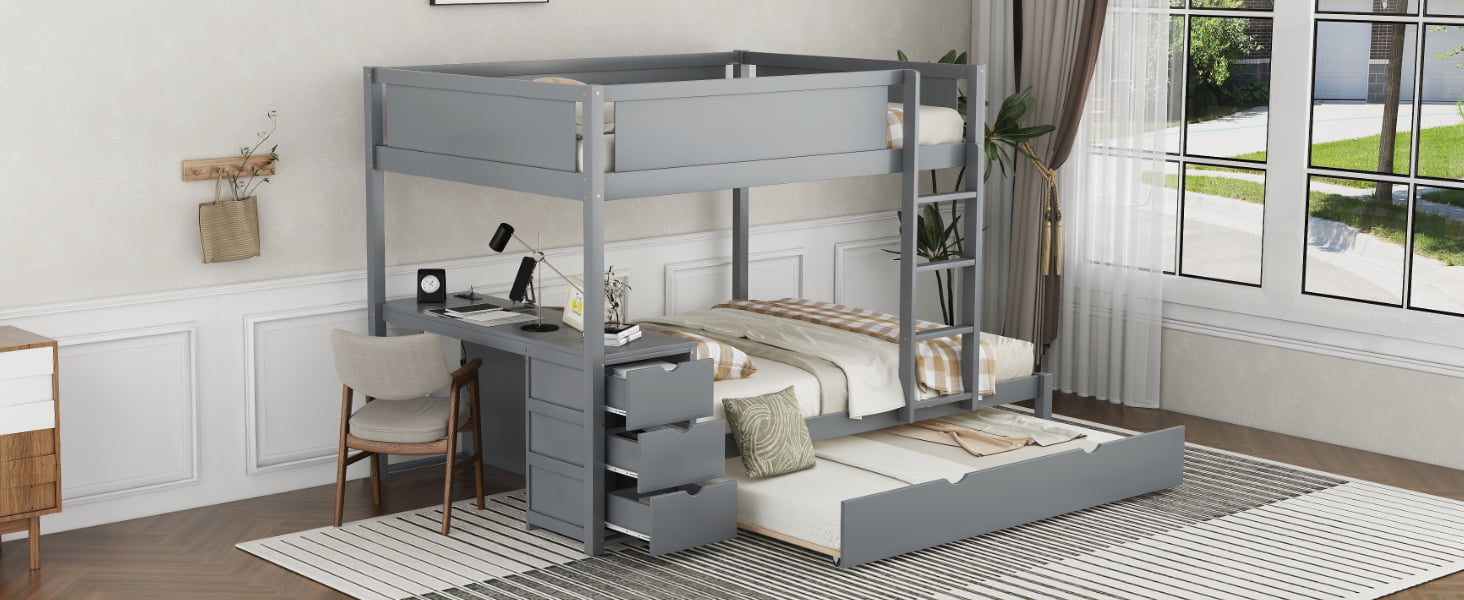 The full-over-full design with a twin trundle is perfect for our needs – my two older kids each get a full bed, and their little sister uses the trundle for sleepovers or when she doesn’t want to sleep in her room.