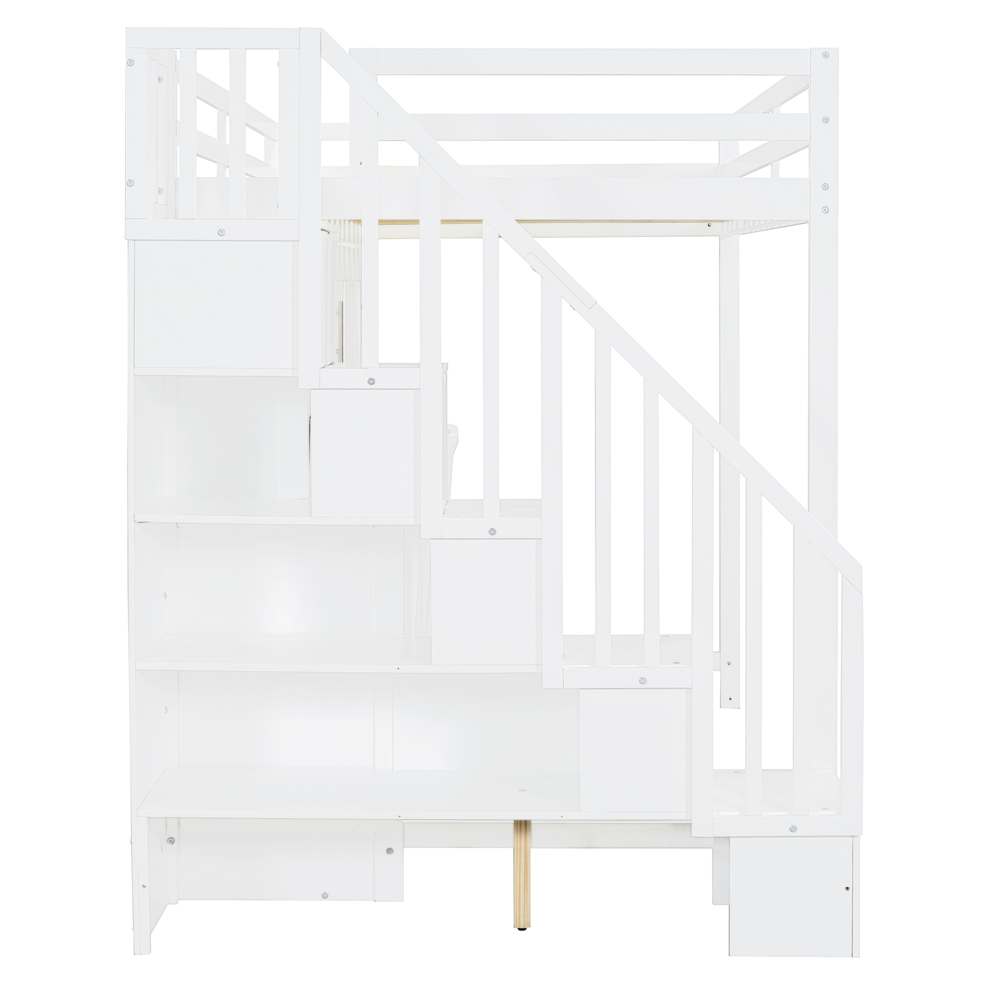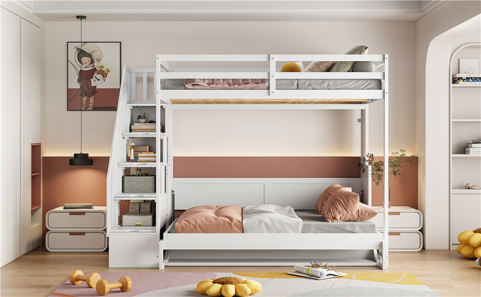 - [Ample Storage—Staircase with Built-in Cabinets] This design is more than just a bed; it offers exceptional storage solutions! The staircase features four built-in cabinets, perfect for storing books, clothes, toys, or everyday essentials. Each step is thoughtfully designed with cabinets that are easy to open and close, allowing for convenient access and helping you maintain a tidy and organized living space.