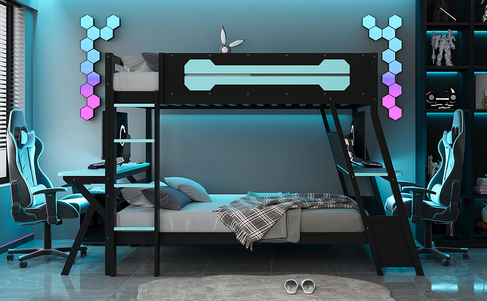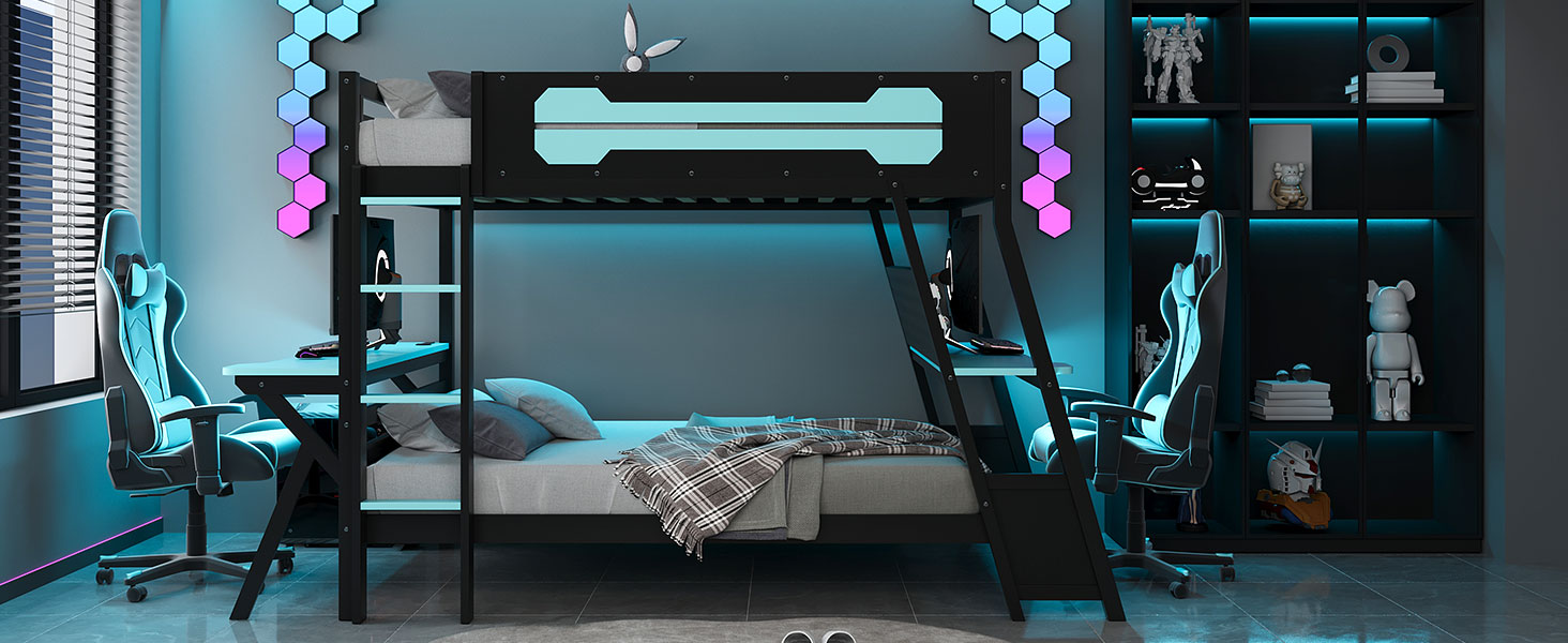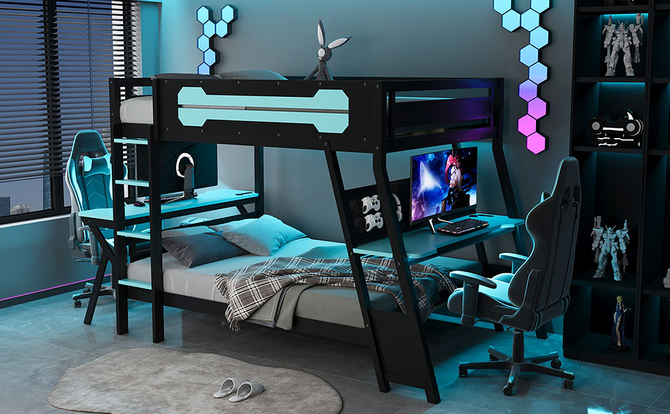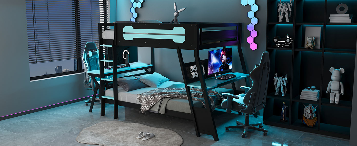 - [Convenient & Multi-Functional]: Combining sleep, workspace, and gaming functionality, this bunk bed provides stability, convenience, and smart organization—ideal for creating a clean and efficient gaming setup.