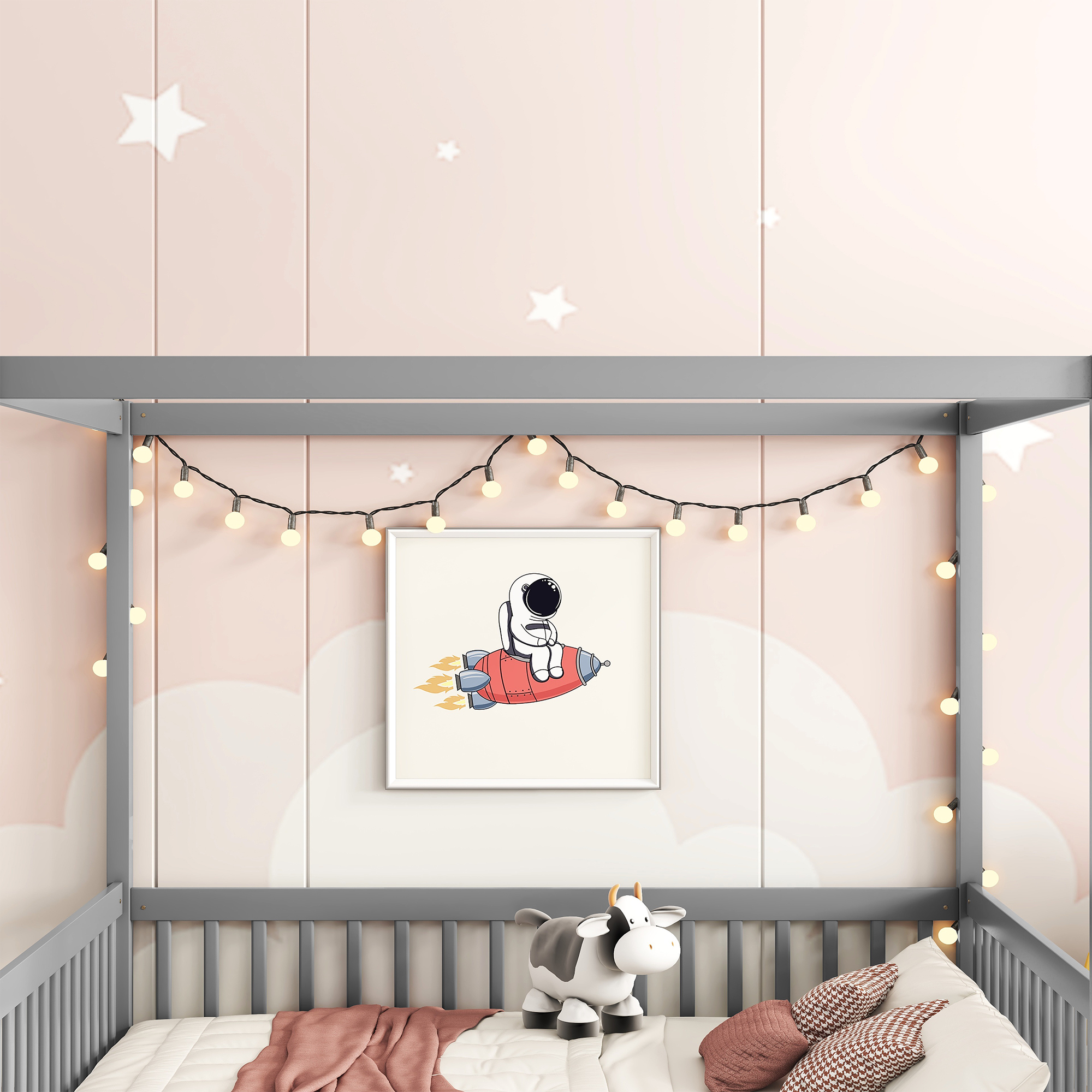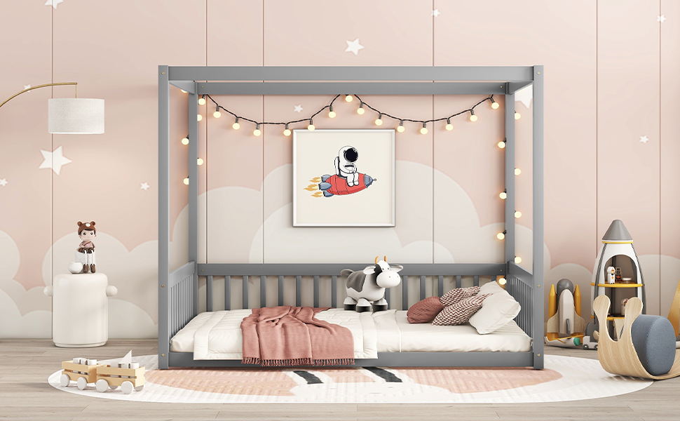 - [Safety and Quality Guaranteed]This floor bed is mainly crafted from premium pine wood, its canopy frame structure providing lasting sturdiness and durability. The bed is constructed with firmly secured structure, forging strong stability that ensures the safety of users while resting in the floor bed.
