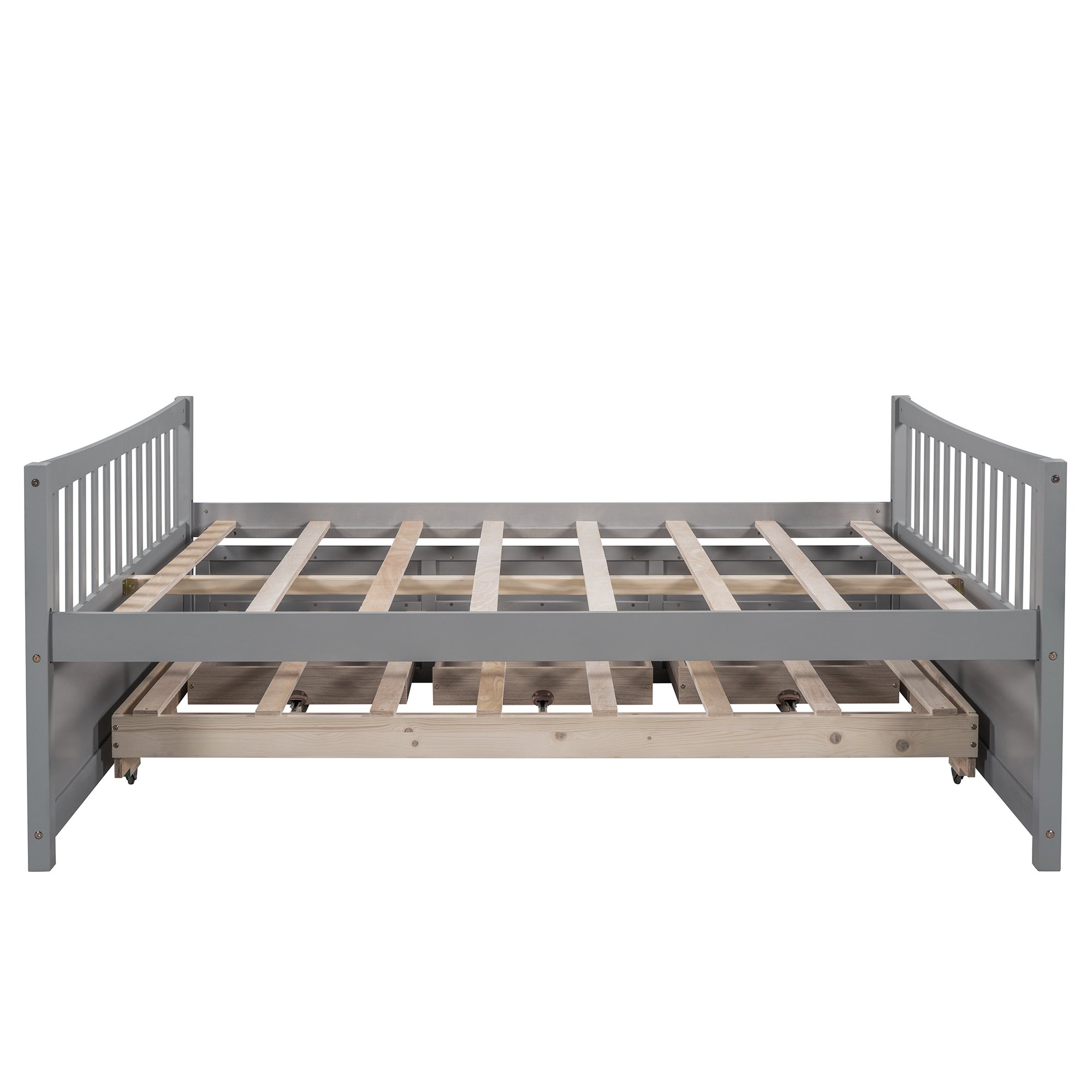 If you need extra sleeping space or your kids love sleepovers, this daybed with handy pull-out trundle and three drawers is perfect for your home. High-quality, solid and a strong, durable frame ensures stability and durability for long-term use. Slat kit included so box springs are not required. This daybed is designed with a clean silhouette and a hue of elegance. It suits all styles of home decoration, and completes the look of any bedroom.