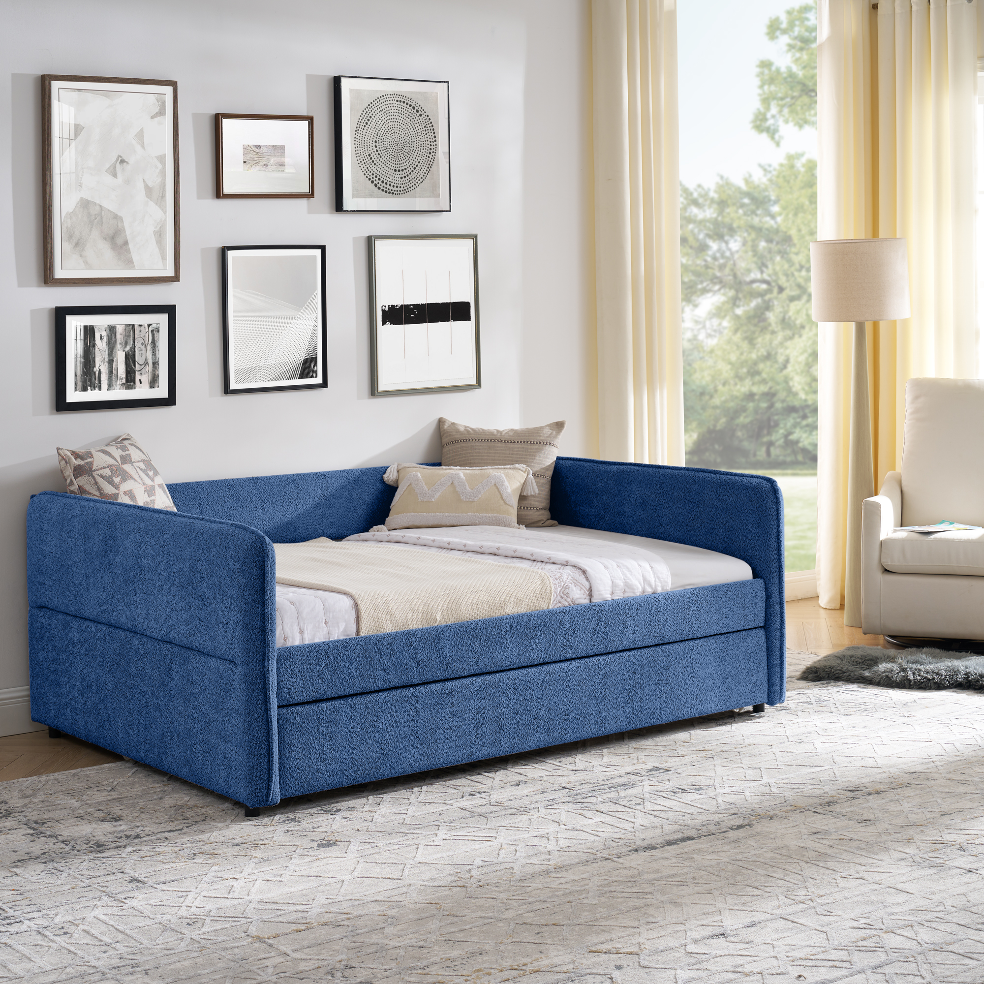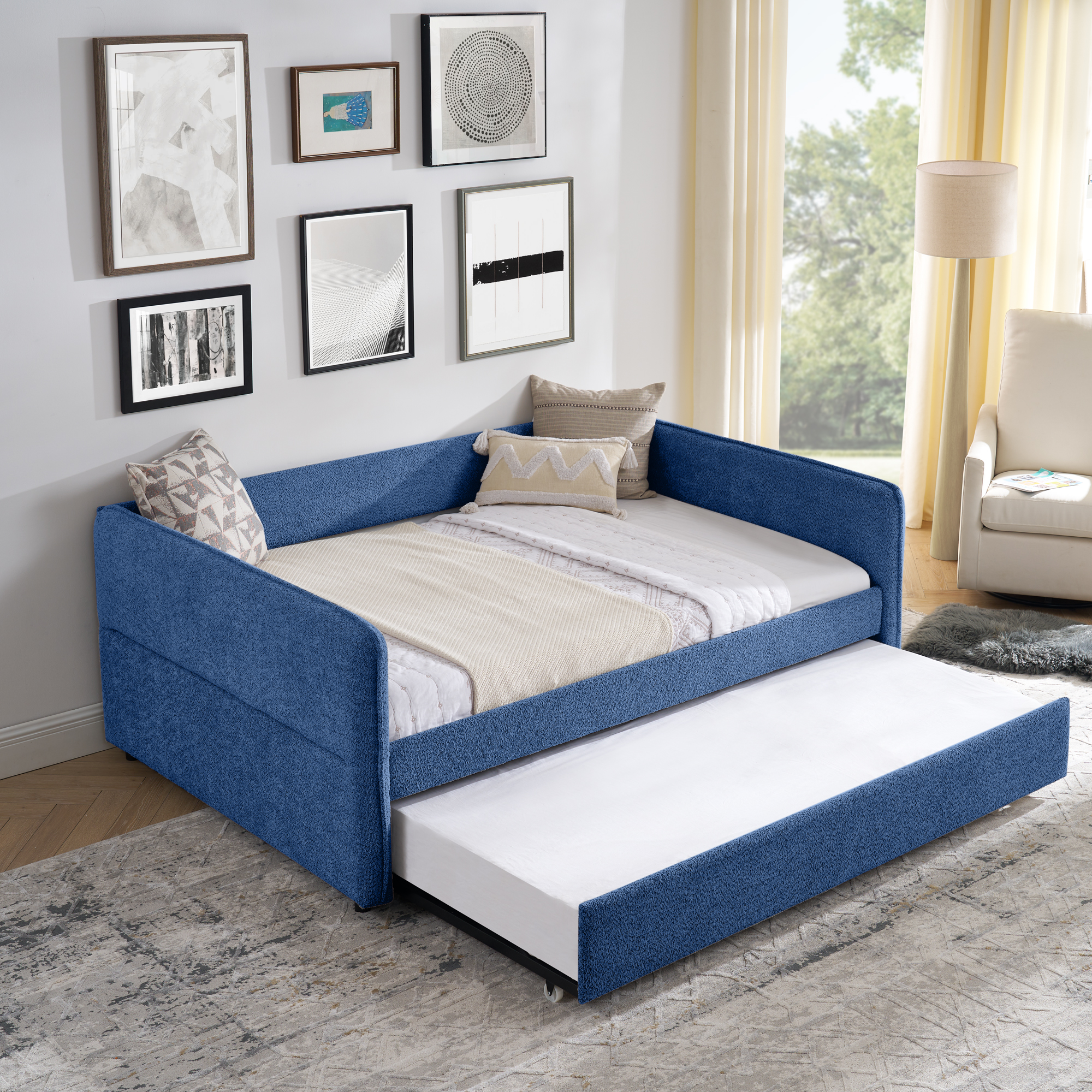 - [Functional Trundle] This exceptional piece of living room furniture is manufactured to meet your needs, allowing the cozy bed to not only afford a comfortable seating experience but also one trundle under the bed provide more sleeping space.
