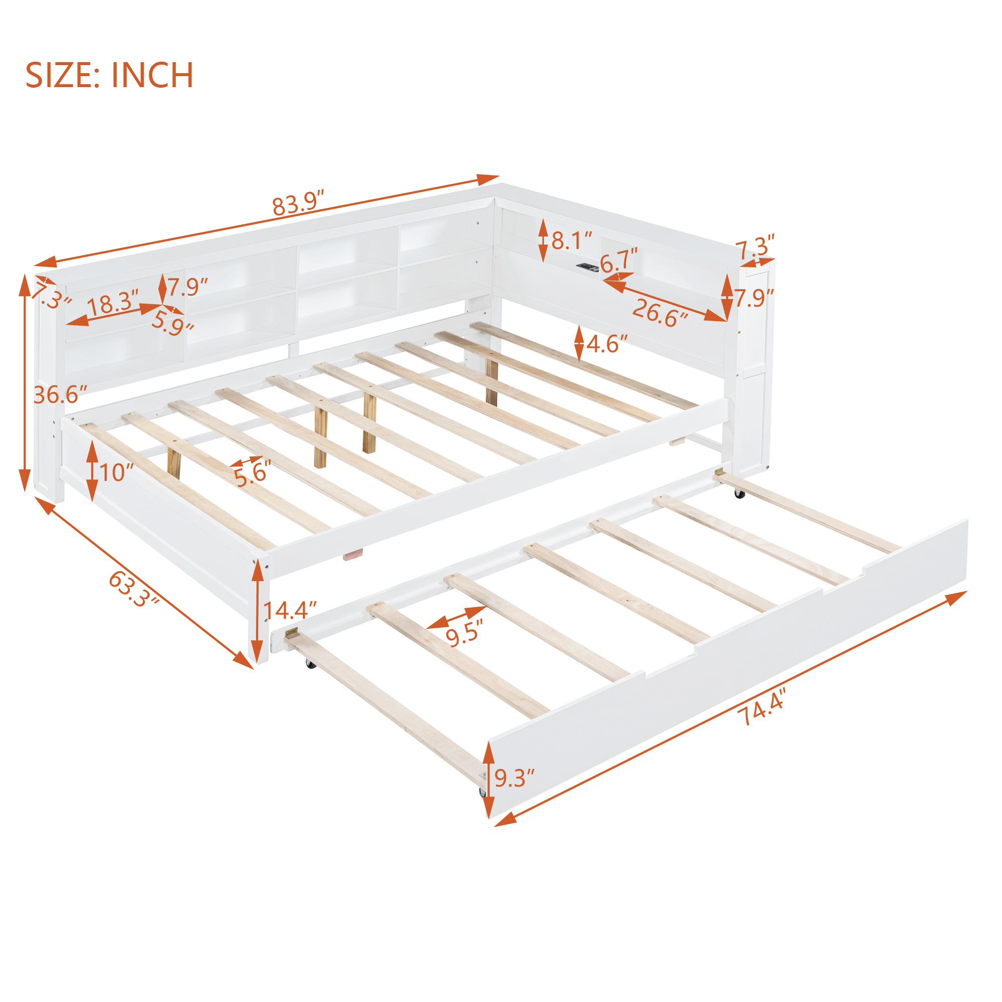 | Number of Slats | Bed:10 Trundle:7 |