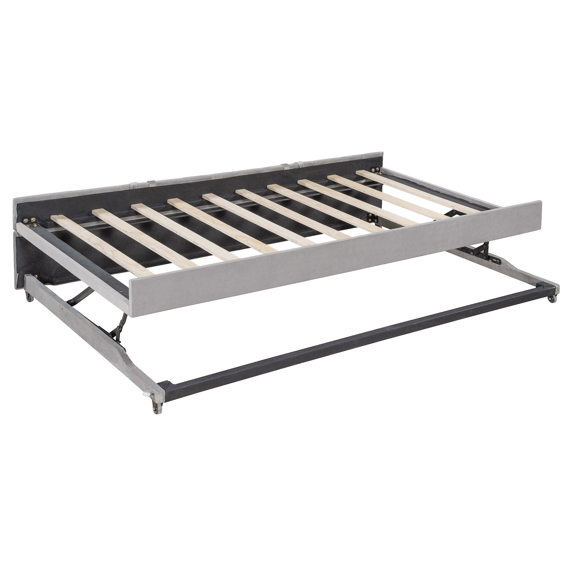 - [Pull-Out Twin Trundle] Equipped with a hidden twin-size trundle bed that slides out easily to accommodate extra guests or family members. The trundle lifts up smoothly to align with the main bed, creating a spacious, level sleeping surface when needed.