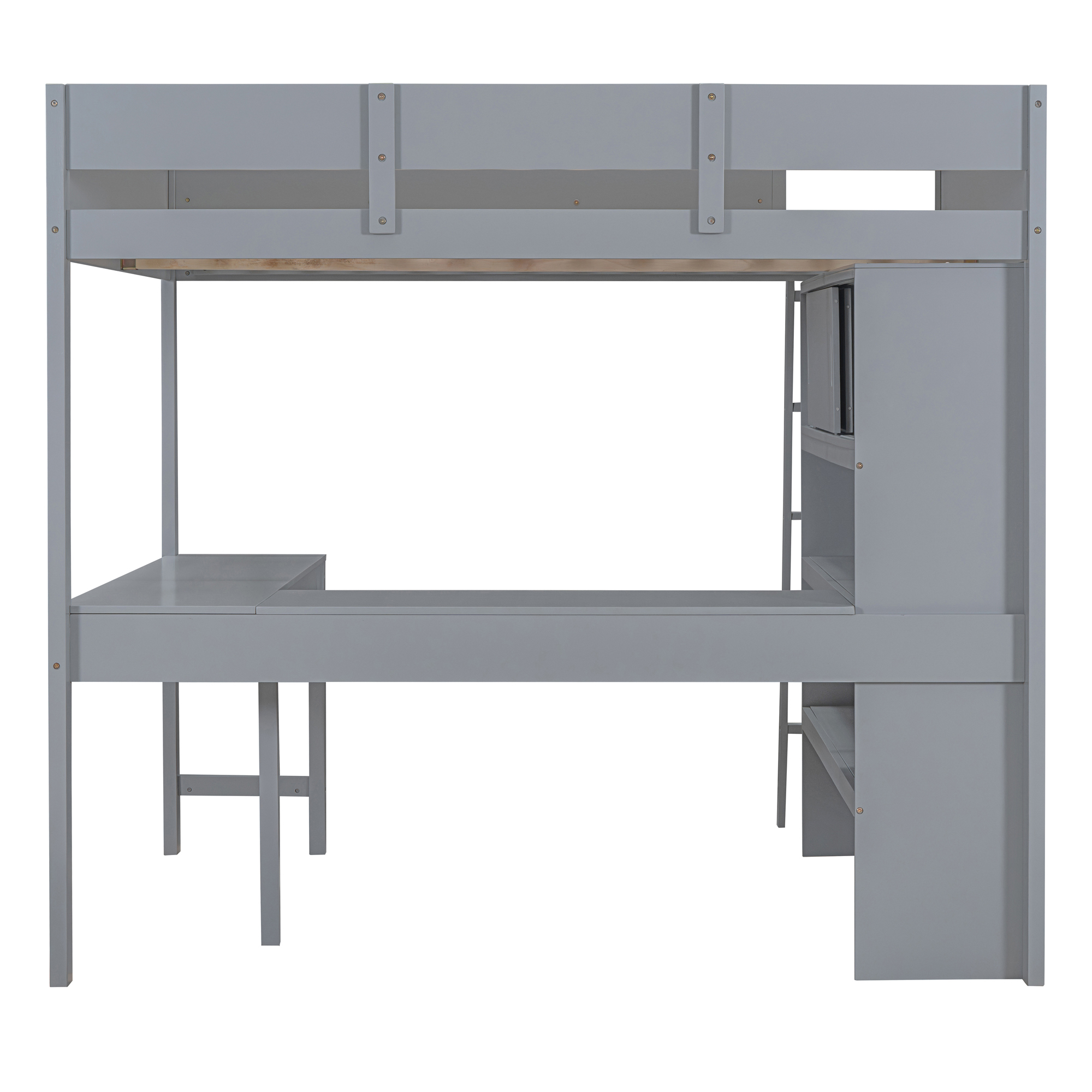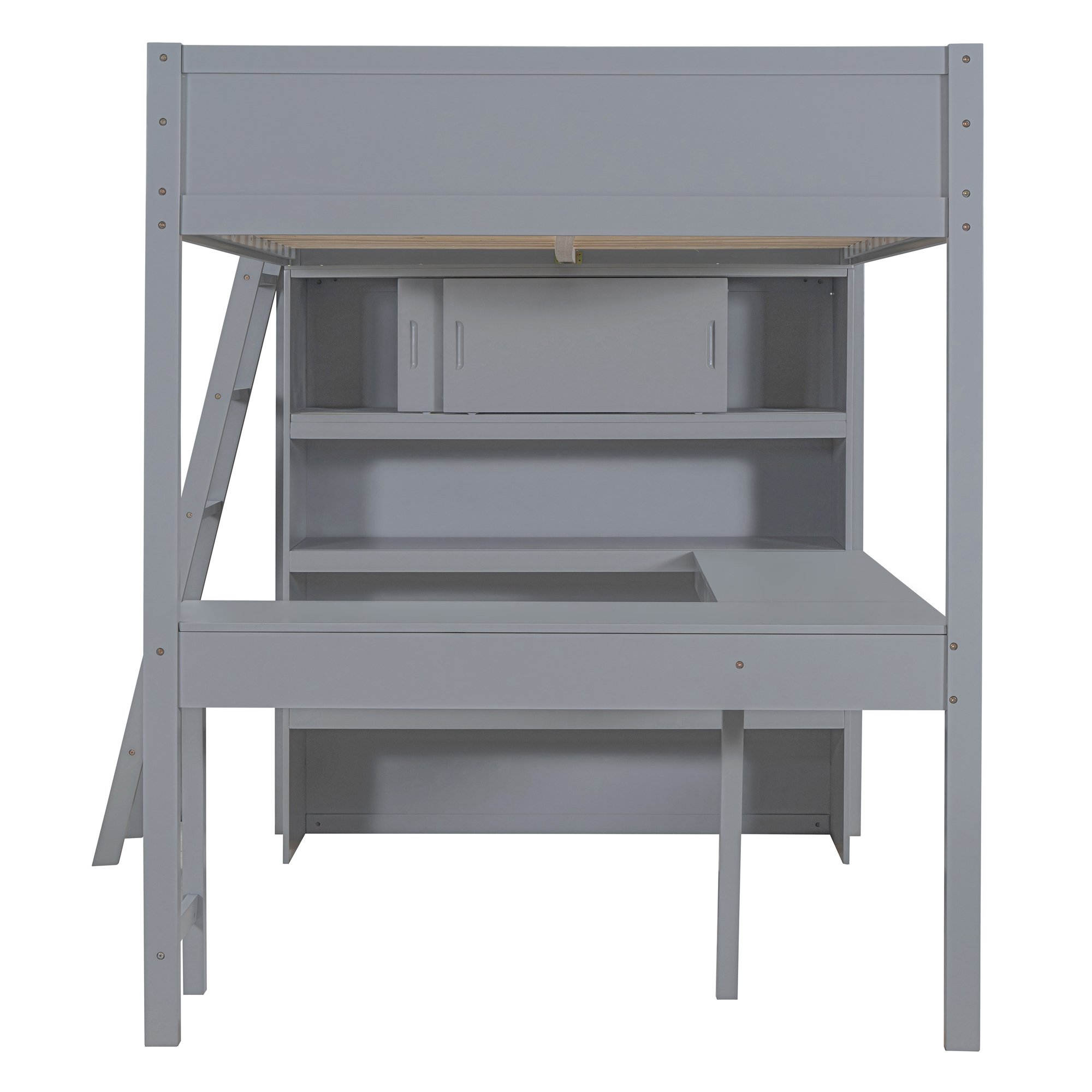 Full Size Loft Bed with Ladder, Desk and Shelf