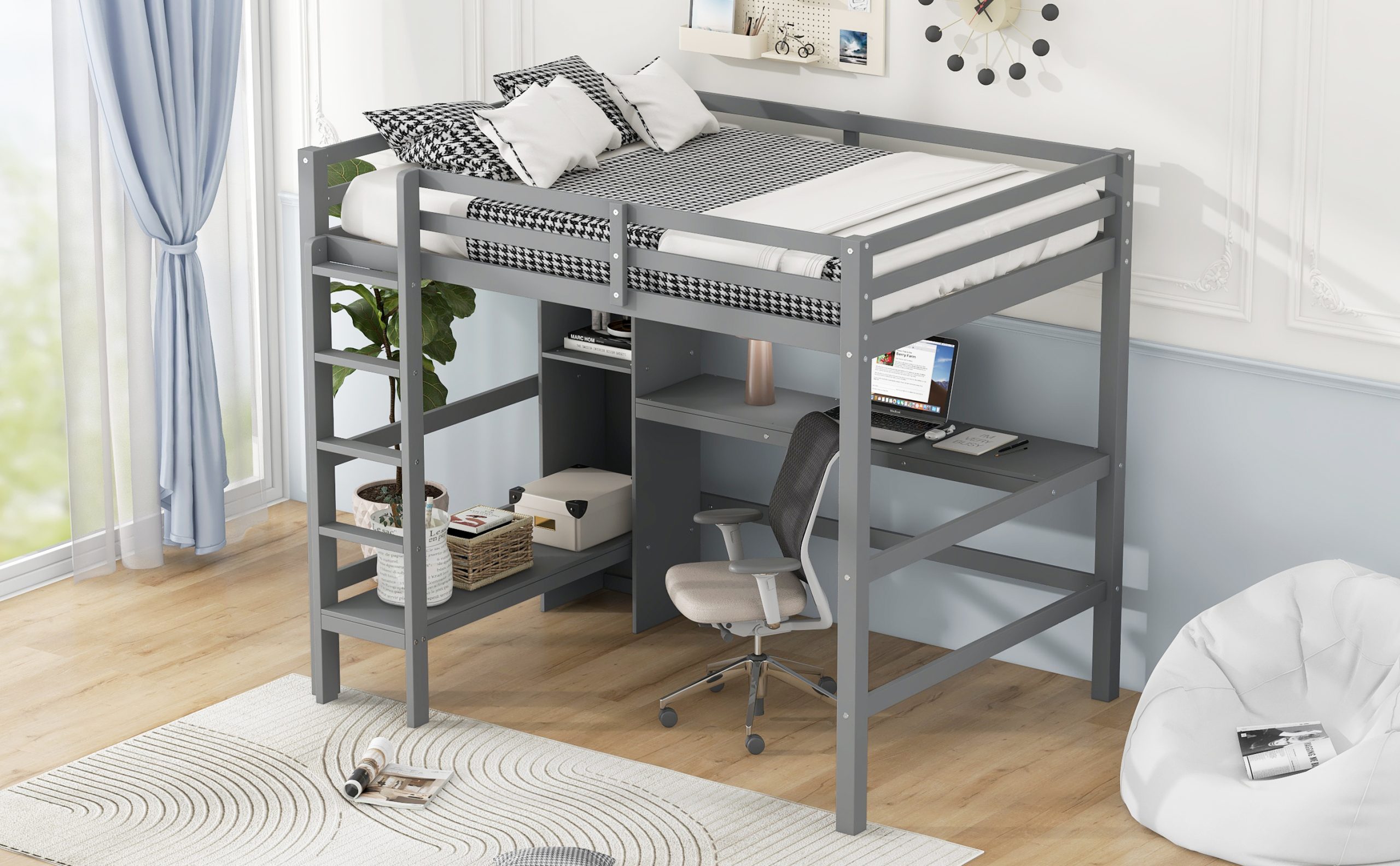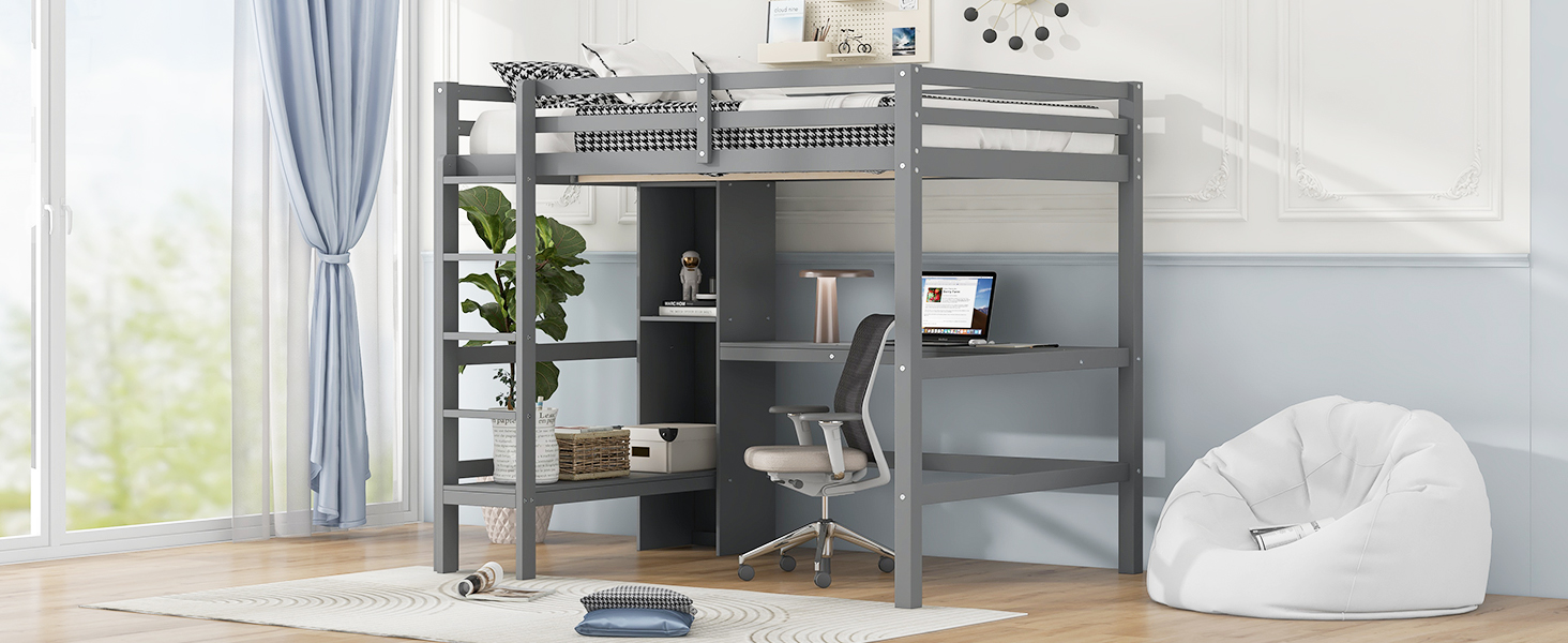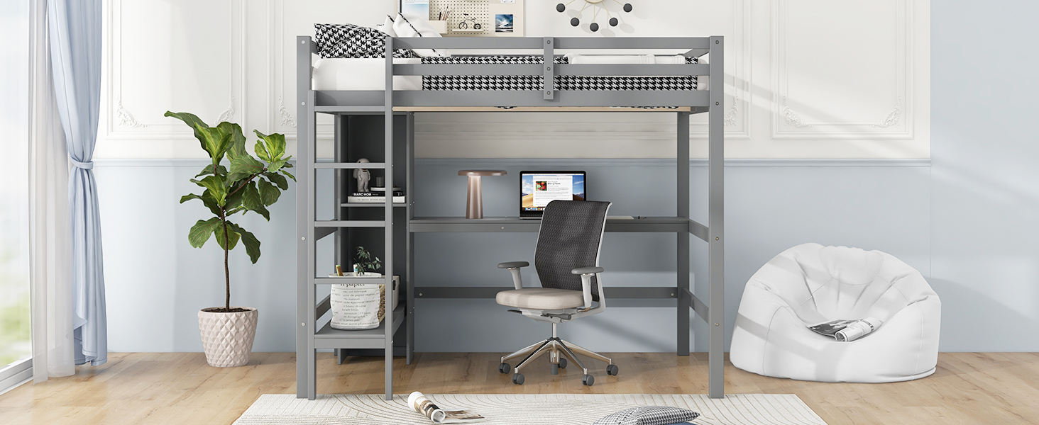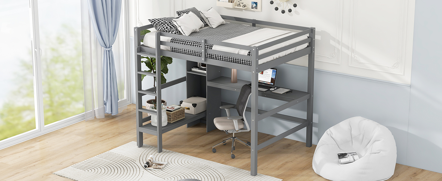 - [Built-in Desk] This full loft bed comes with a built-in desk, bringing convenience for your bedroom which can be regarded as a learning space or workplace,perfect for small space.
