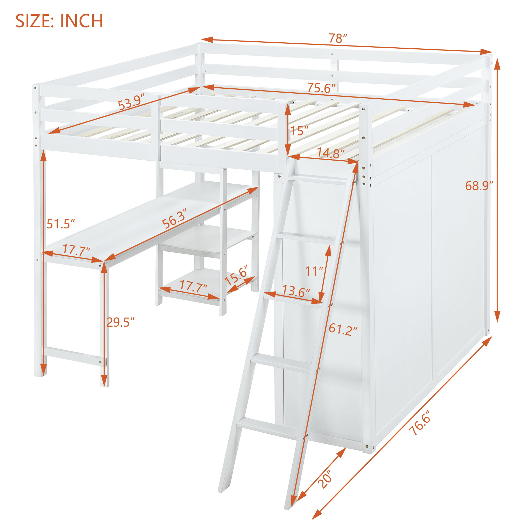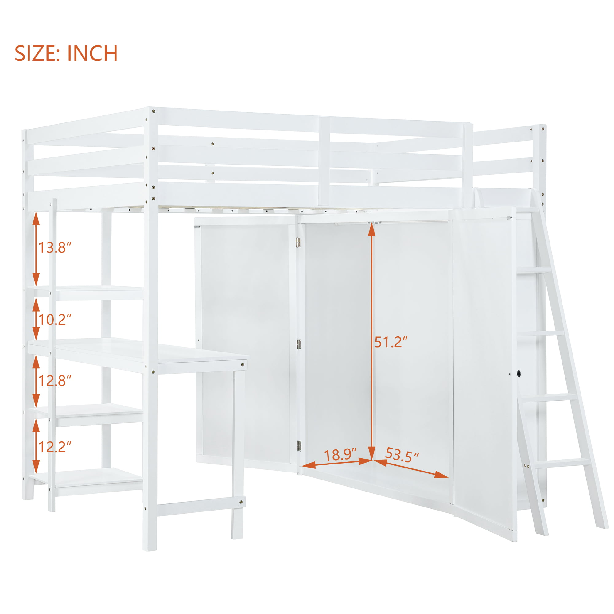 - [Versatility galore] The bed comes with a wardrobe with a pole in it, perfect for your home if the room space is limit. Desk and shleves help to keep the room clean and tidy.