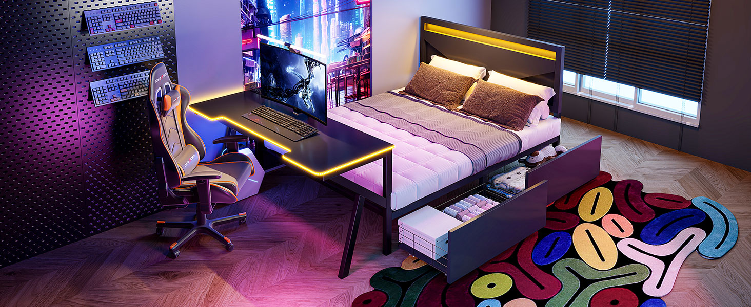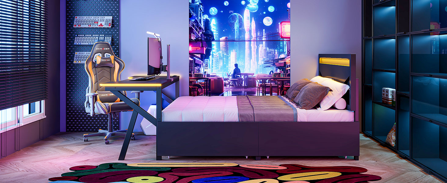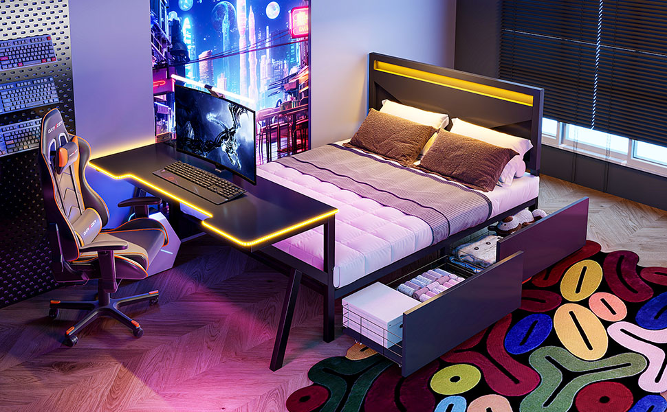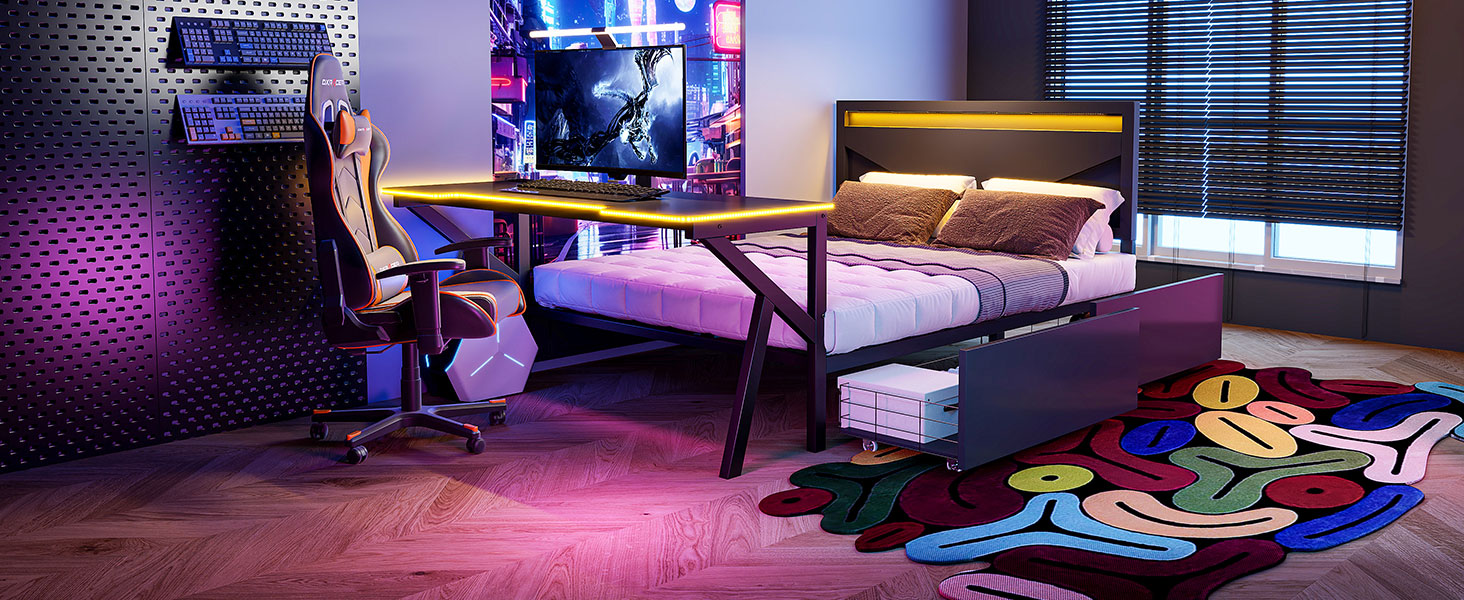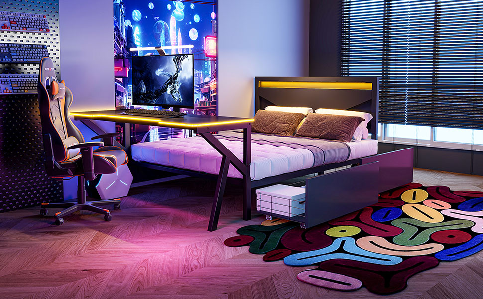 - [Desk with LED] The LED design around the table enhances the gaming of this bed. So many LED colors you can choose to create the style of your bed.