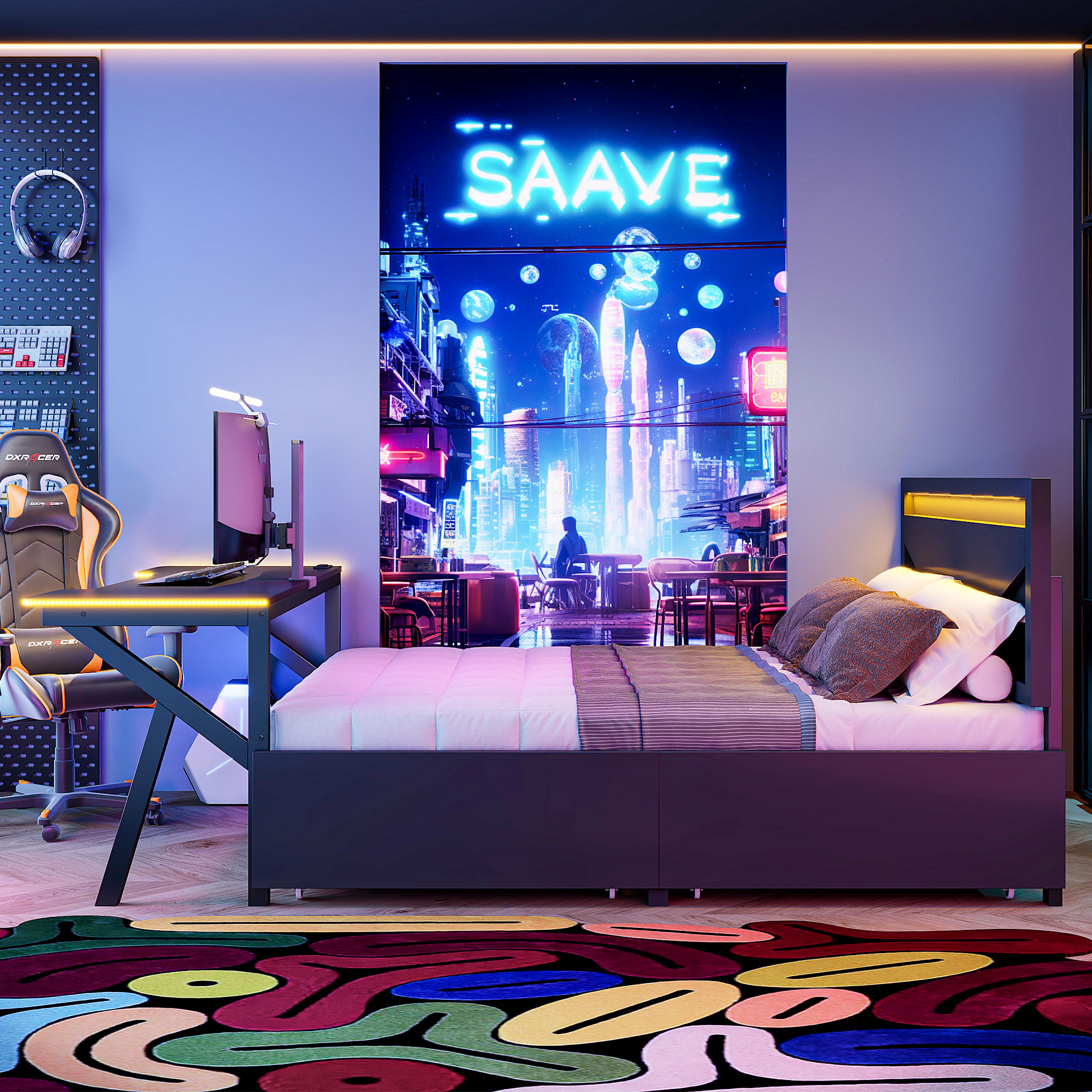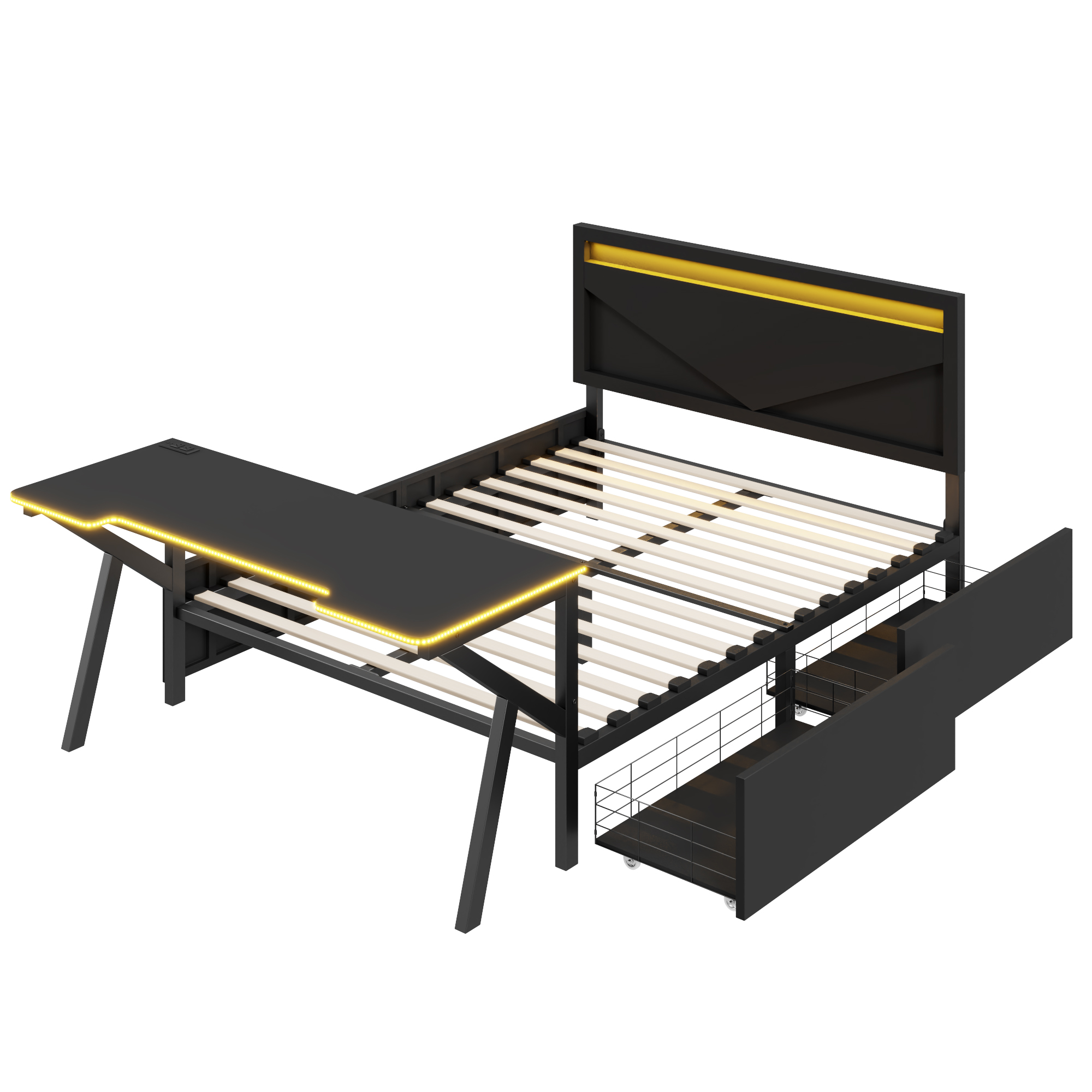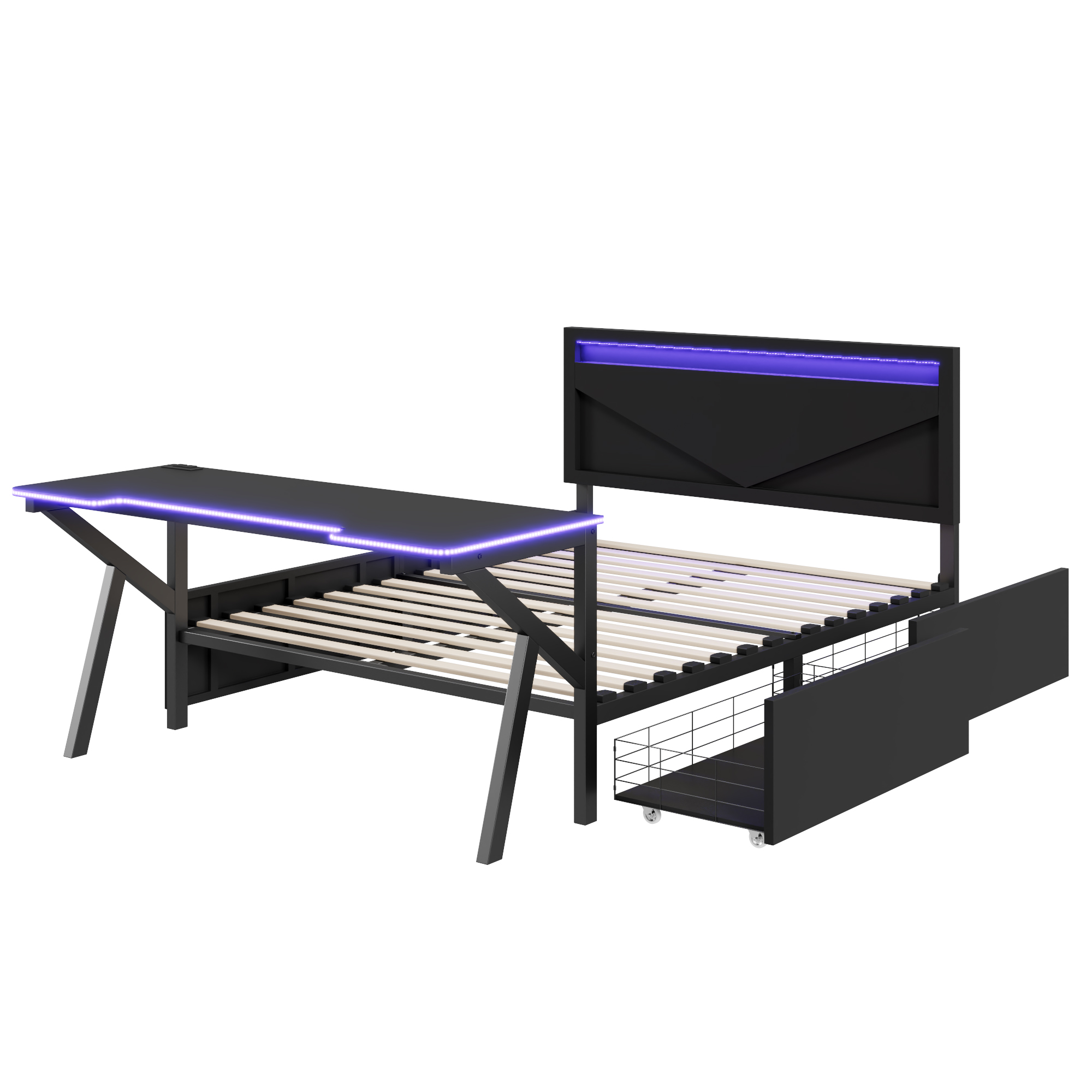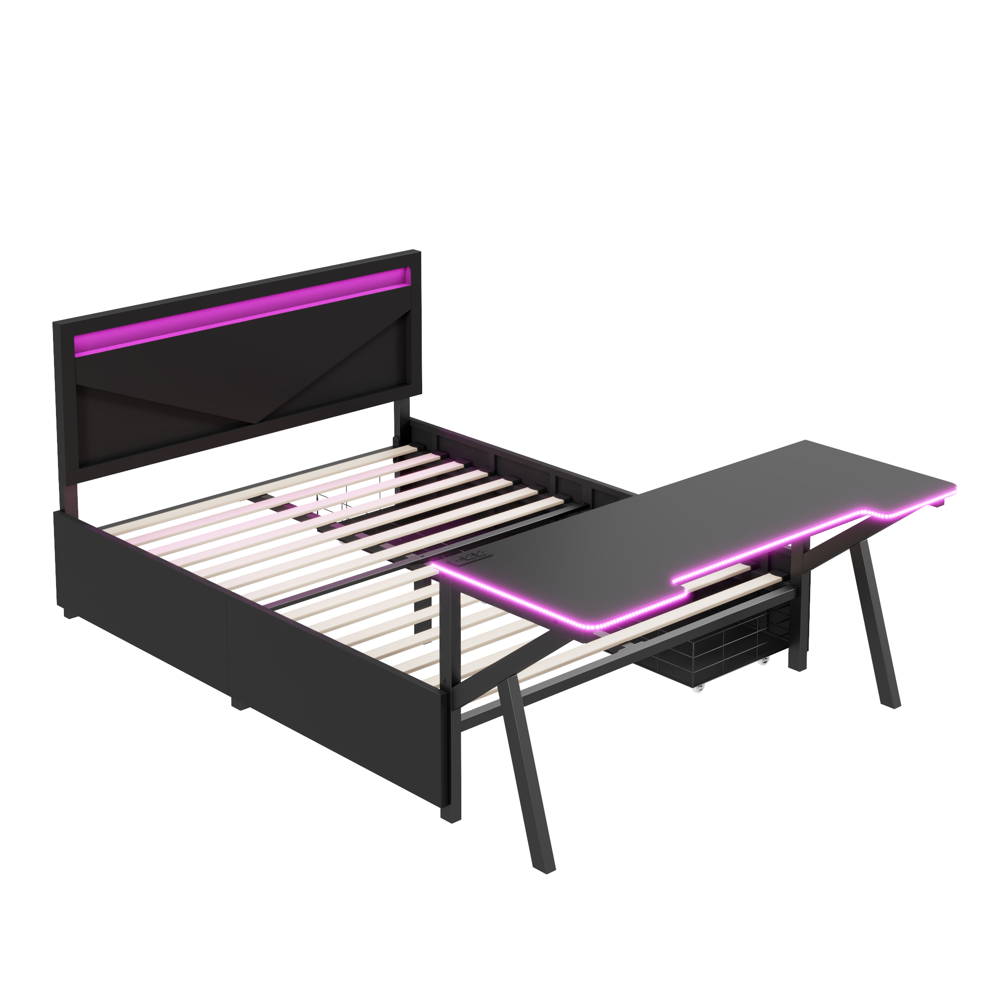 - [Desk with LED] The LED design around the table enhances the gaming of this bed. So many LED colors you can choose to create the style of your bed.