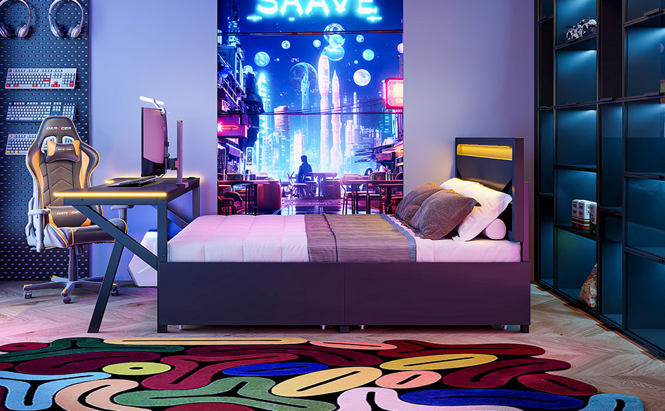 - [Headboard with LED] The headboard is equipped with LED, you can adjust these colorful colors as you like. It brings convenience to your night life.