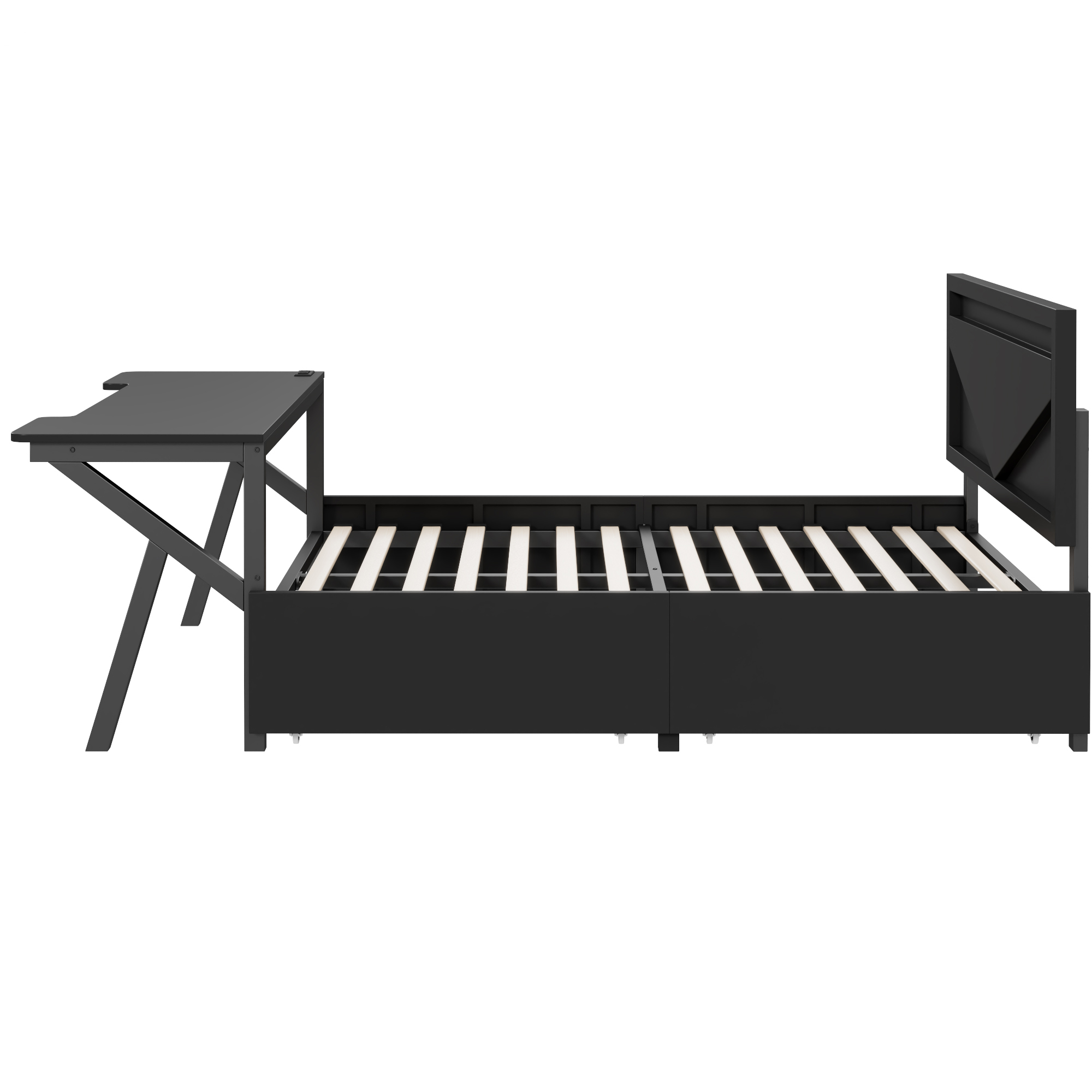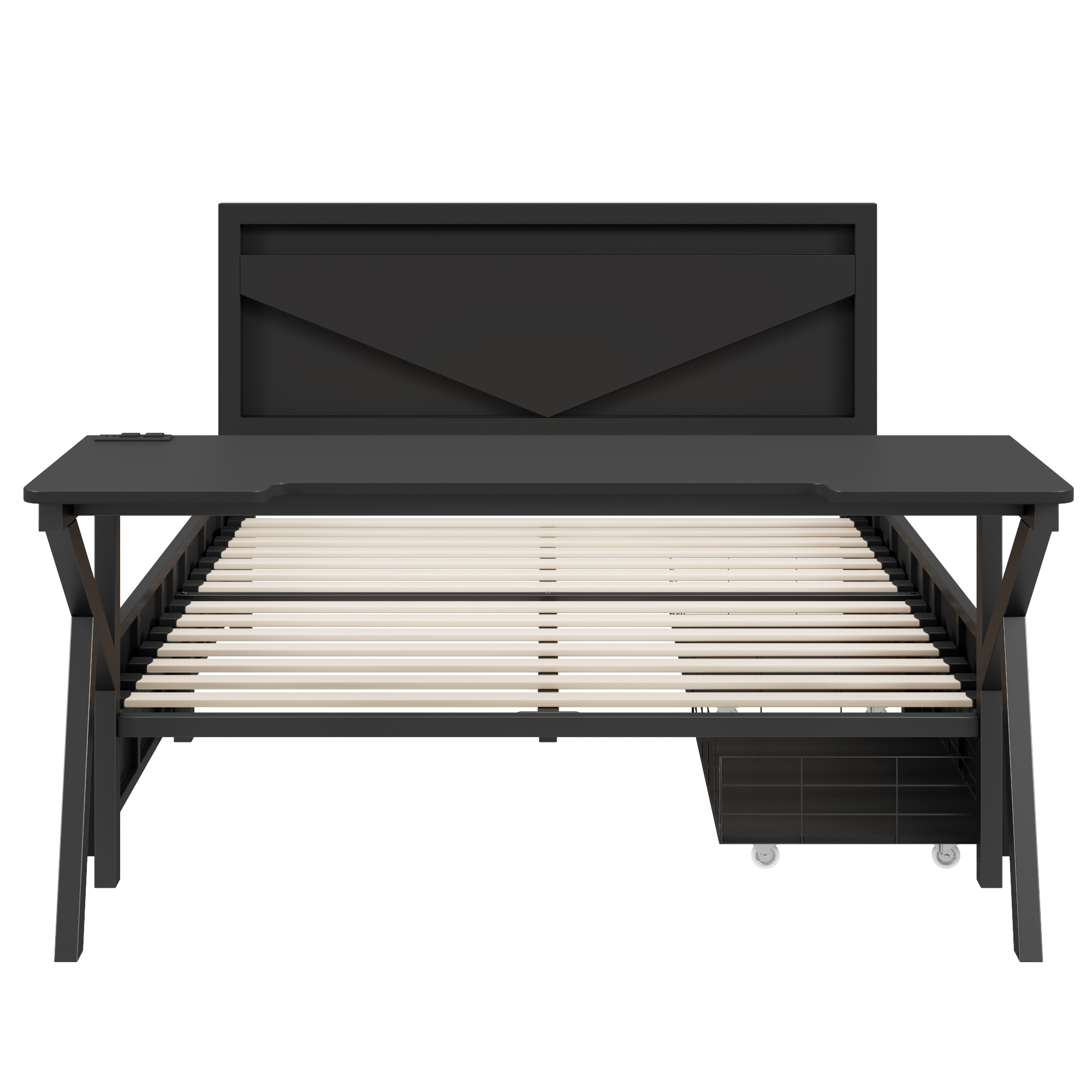 - [USB Charging Station] This bed comes with 2 Standard Plug Outlets & 1 USB Ports & 1 Tape C Ports on the desk. It is very convenient for you to use your laptop to work immediately or to charge electronic devices while lying down.