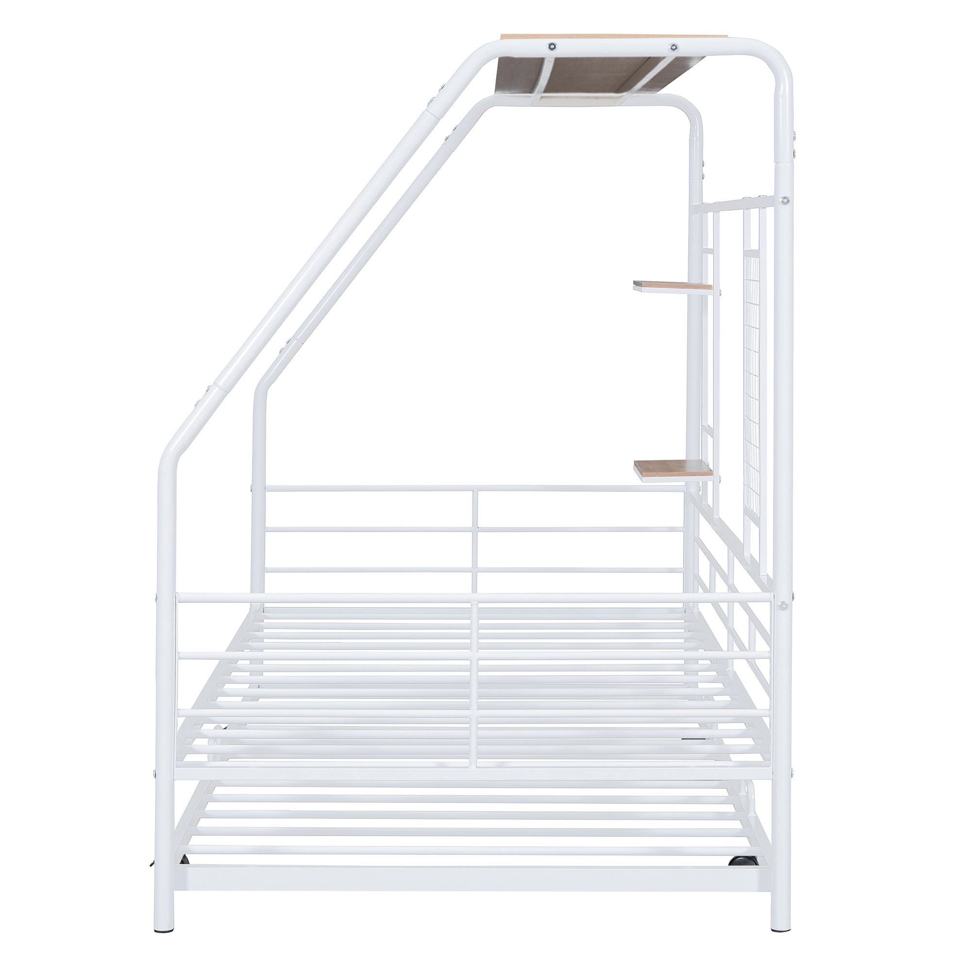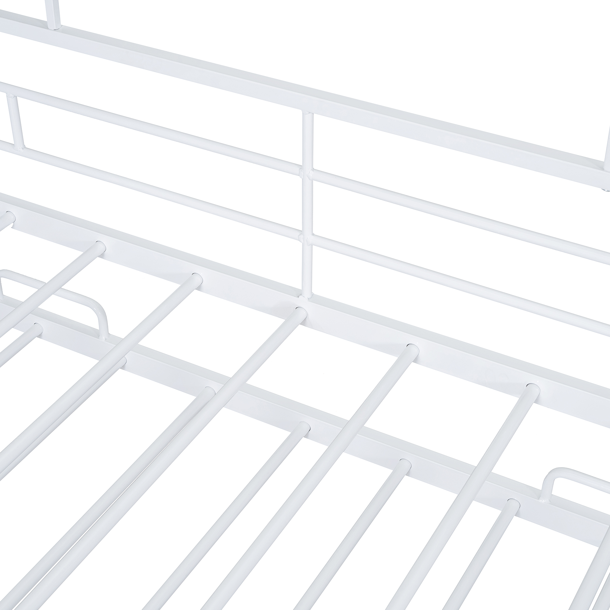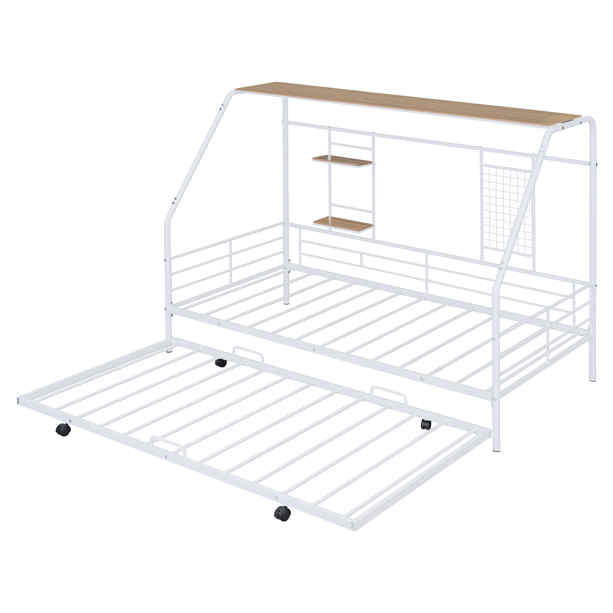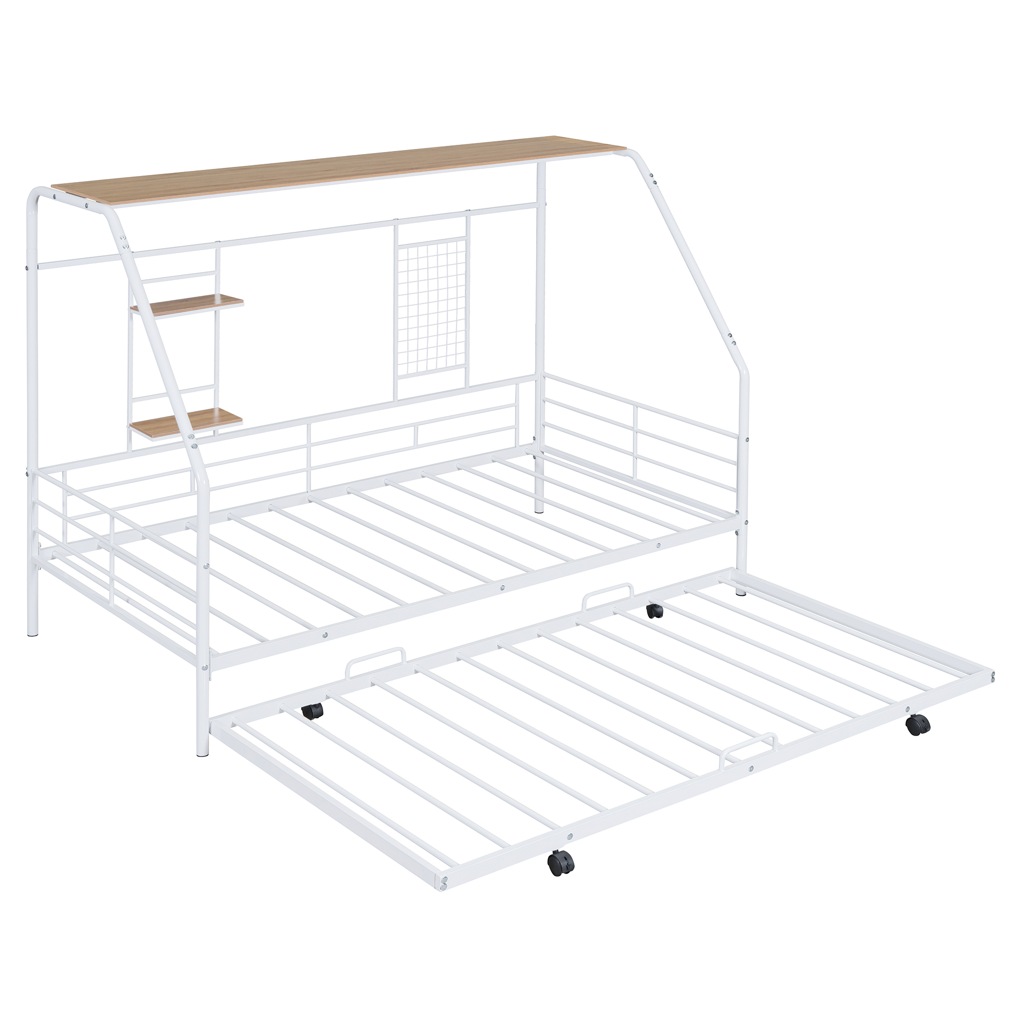 - [Built-in Shelf and Grid] This metal bed making full use of space, coming with three shelves. The most special thing is that it contains a metal grid, which can hang some decorations, photos, etc.