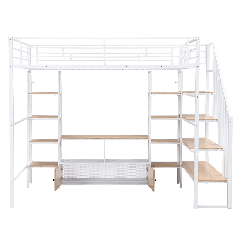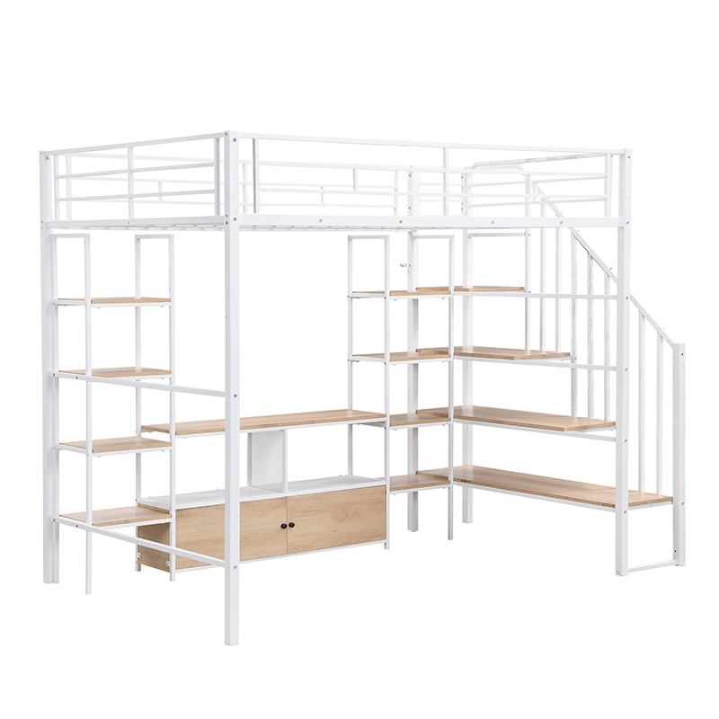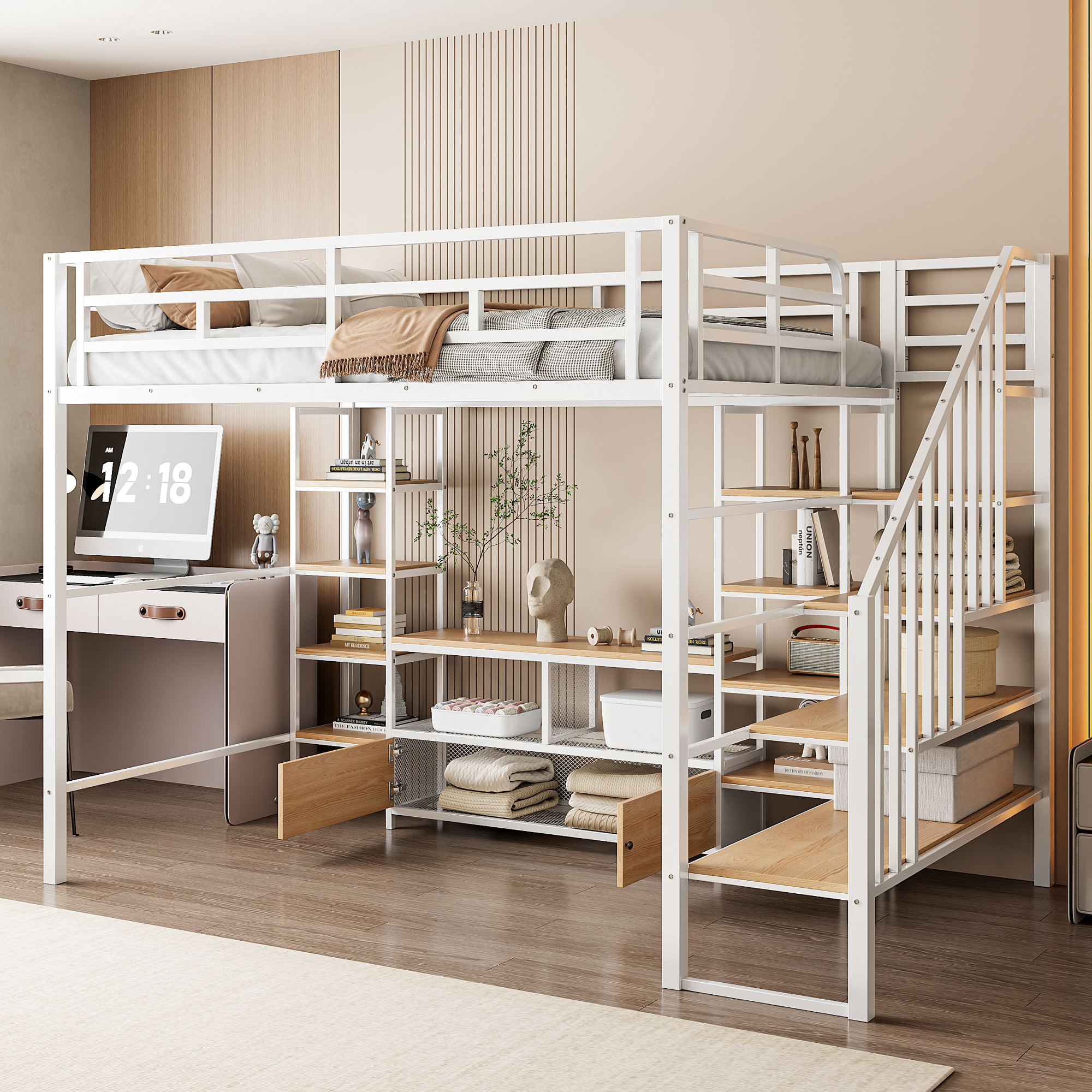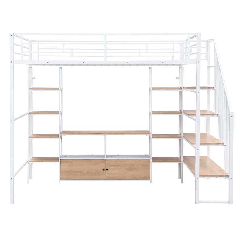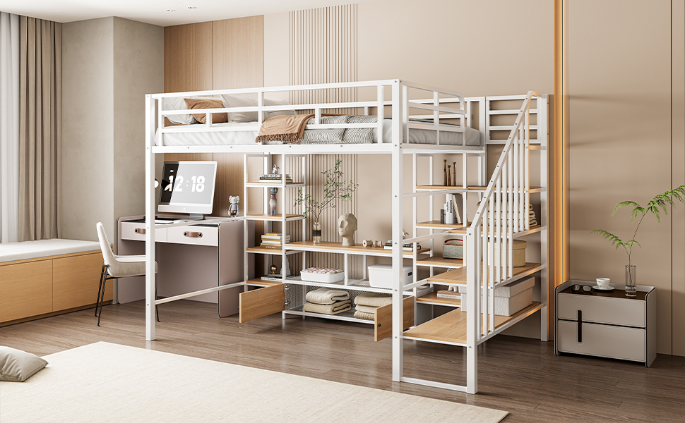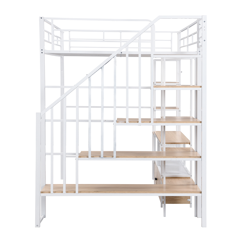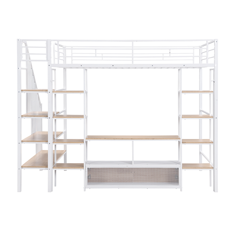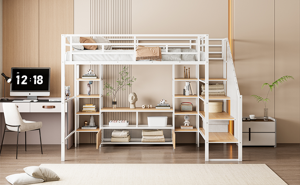- [Multifunctional Storage Design] The bed frame with powerful storage space under the bed includes two 4-tier shelves, a low table with 2 mesh shelves for your books, files, home printer, photos, decorations or other items.