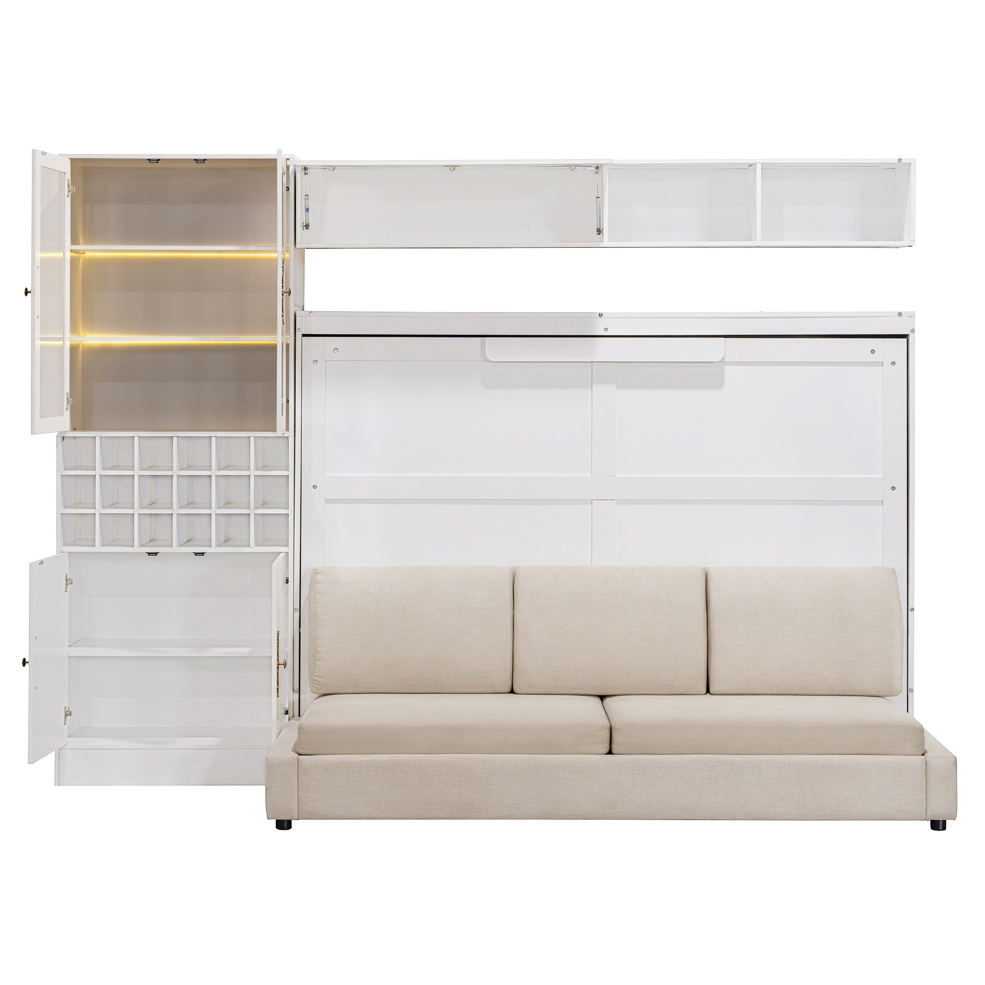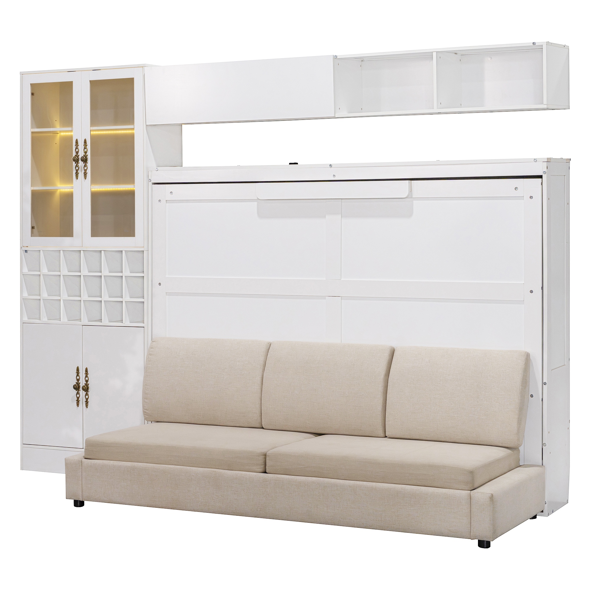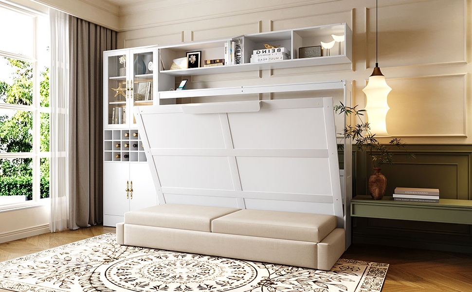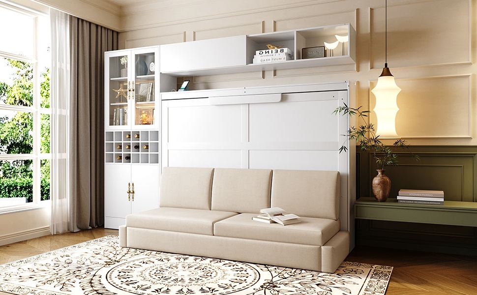 - [Multifunctional Design] The Murphy Bed not only provides a comfortable sleeping space but also incorporates a sofa, seamlessly blending the functionalities of both to meet diverse spatial needs effortlessly.
