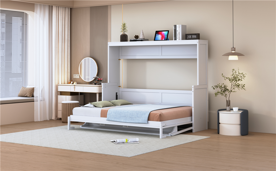 - Two Classic Color Options: Available in washed white and washed gray, this Murphy bed offers a sleek, minimalist look that complements various interior styles. Whether your décor is modern, Scandinavian, or industrial, it adds a touch of sophistication to any room.