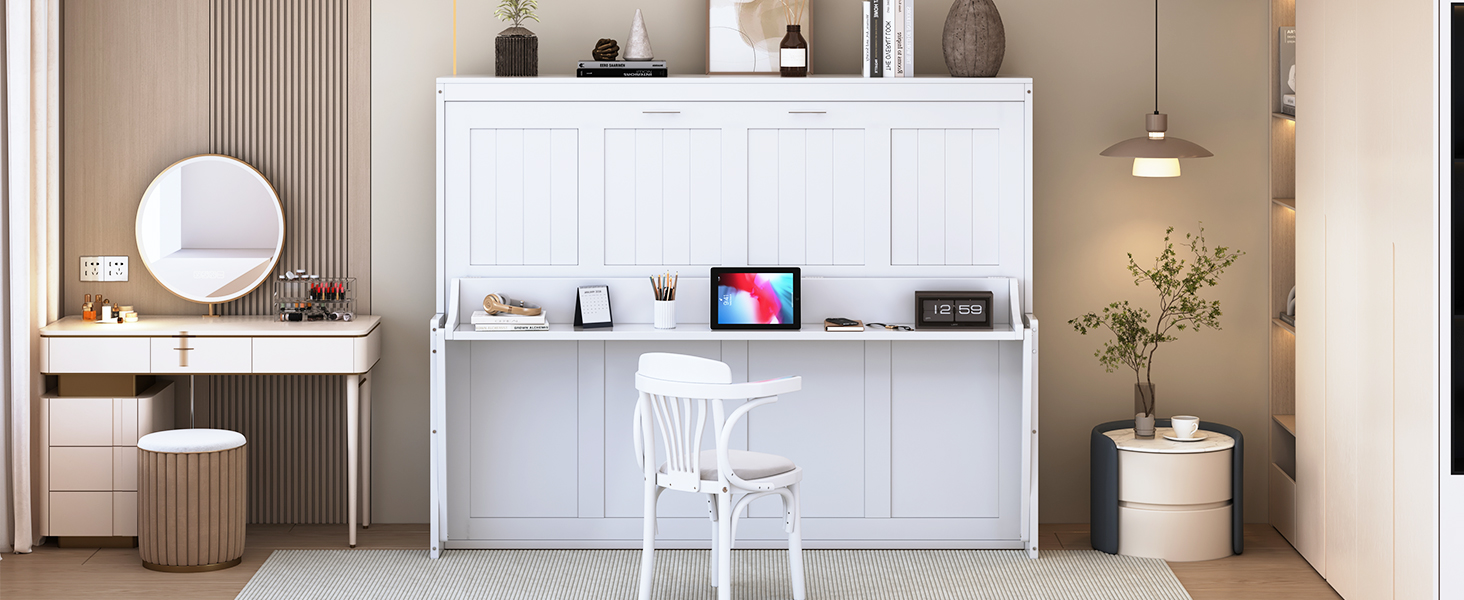 - Space-Saving Design: This Full Wall Murphy bed features an innovative folding mechanism that seamlessly combines a bed and desk. Equipped with hydraulic hinges, the desk automatically folds away when the bed is pulled down, maximizing space. It’s the ideal choice for small apartments, studio rooms, or multifunctional spaces.