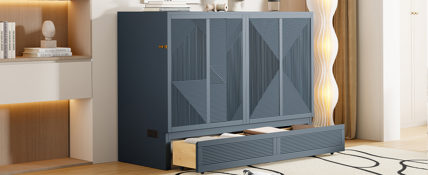 Full Size Murphy Bed with Large Drawer, USB Ports and Outlets