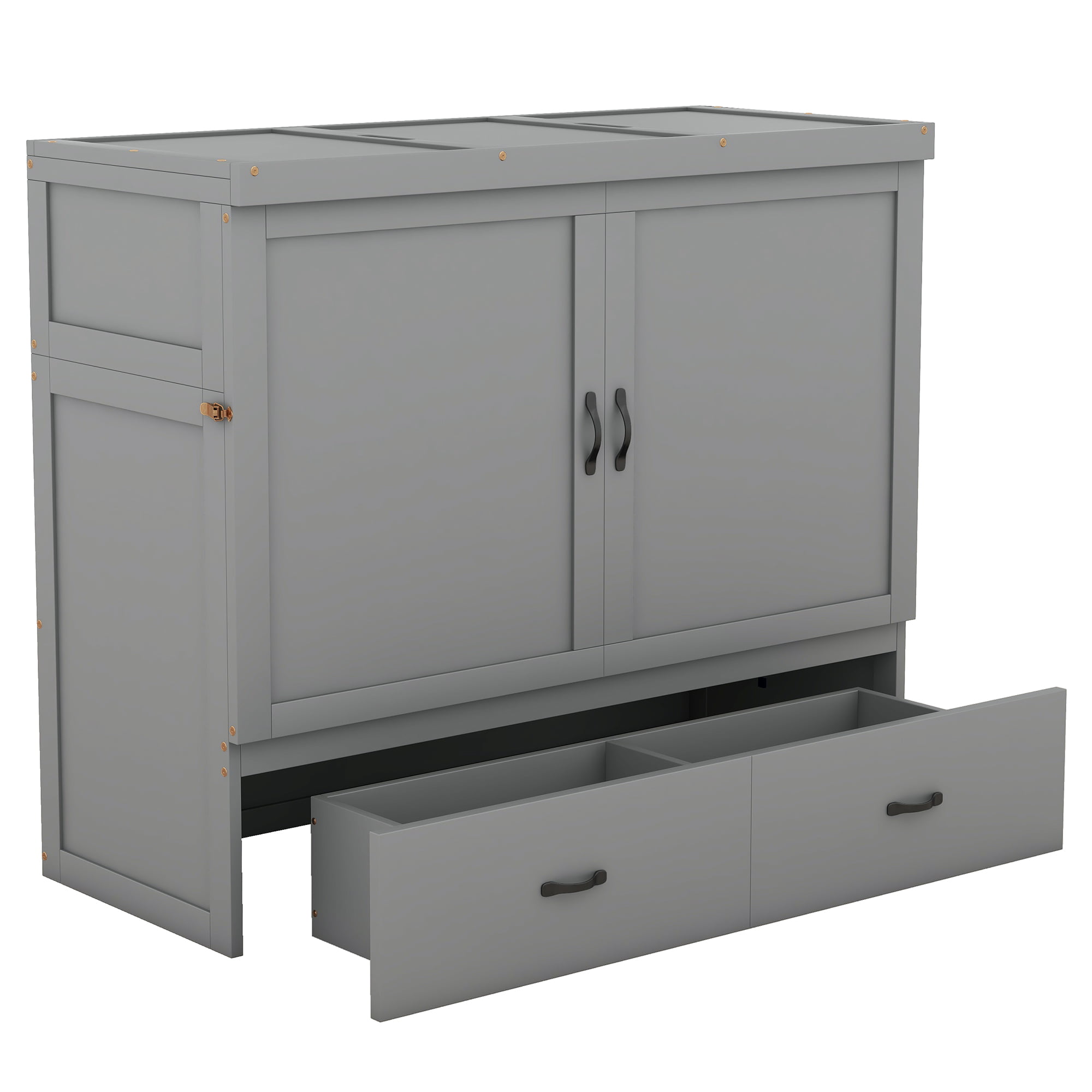 - [Space-Saving Design] There are 2 finishes for the bed. It can be used as a cabinet as well as a bed. It’s perfect for you if you have sleepover often or the room needs more space.And the large drawer underneath the bed can offer you enough space for clothes, toys and any small items you like.