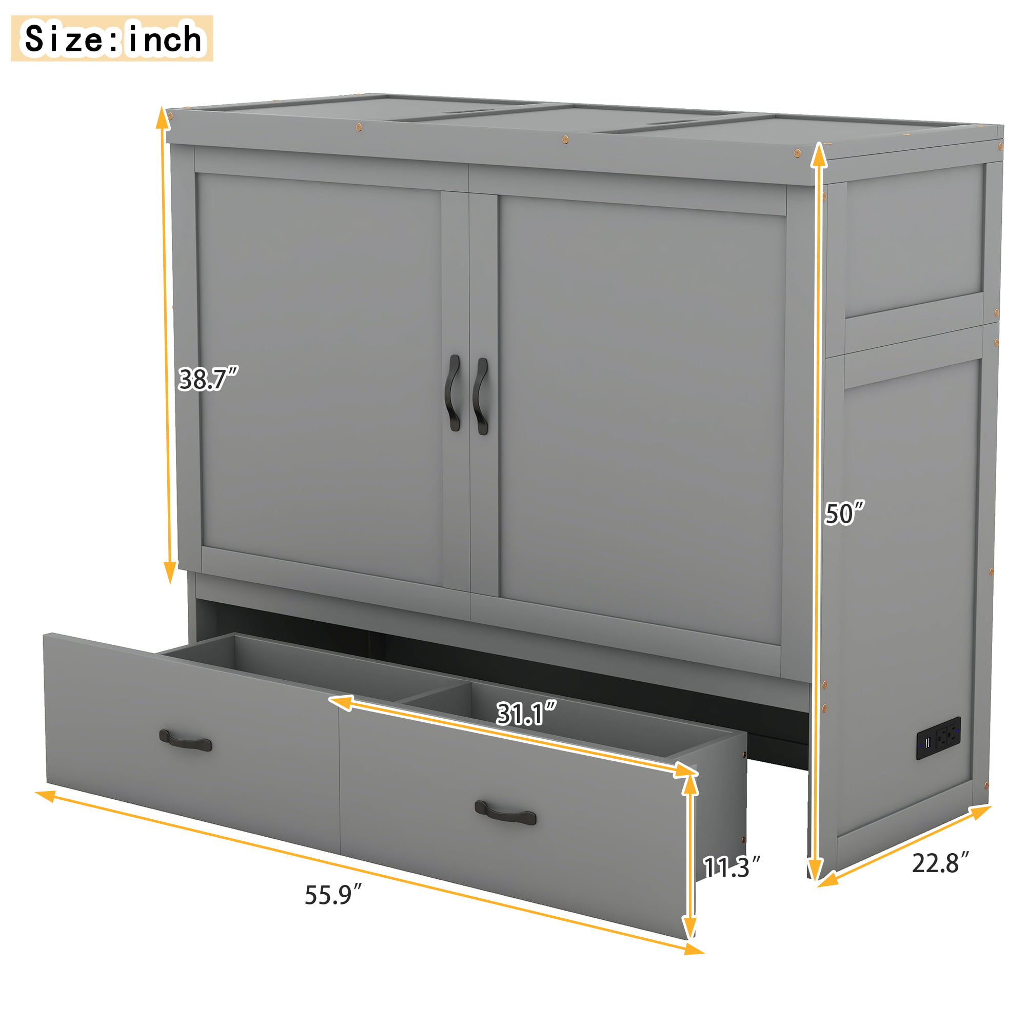 - [Dimensions & Assembly] 81.1″L x 55.9″W x 37.2″H(As a bed) 55.9″L x 22.8″W x 50″H(As a cabinet) Mattress not included. Some assembly is required, although we have provided clear instructions and tools.