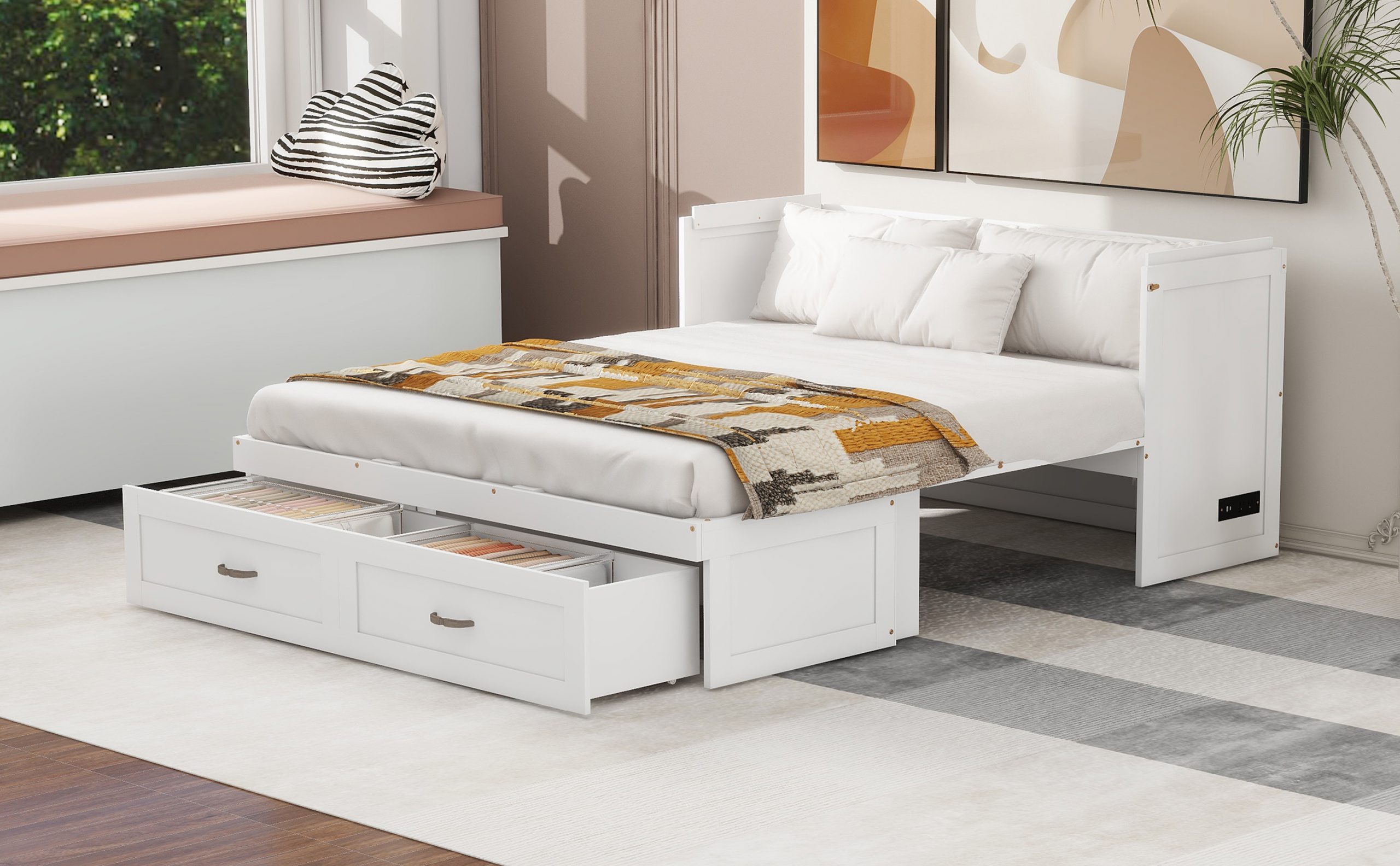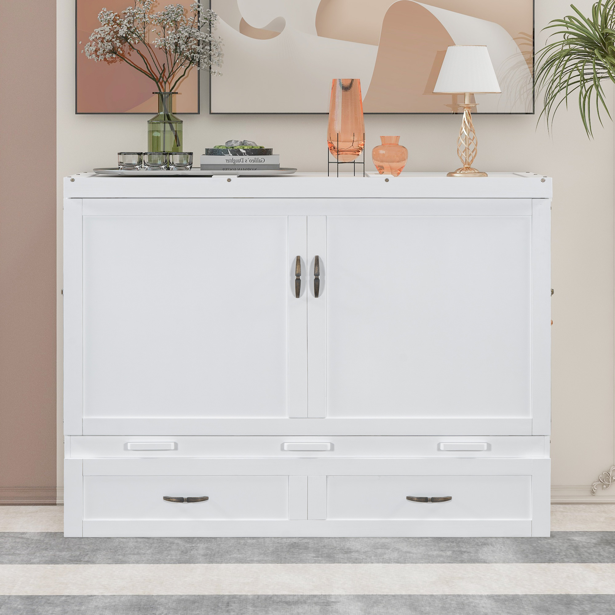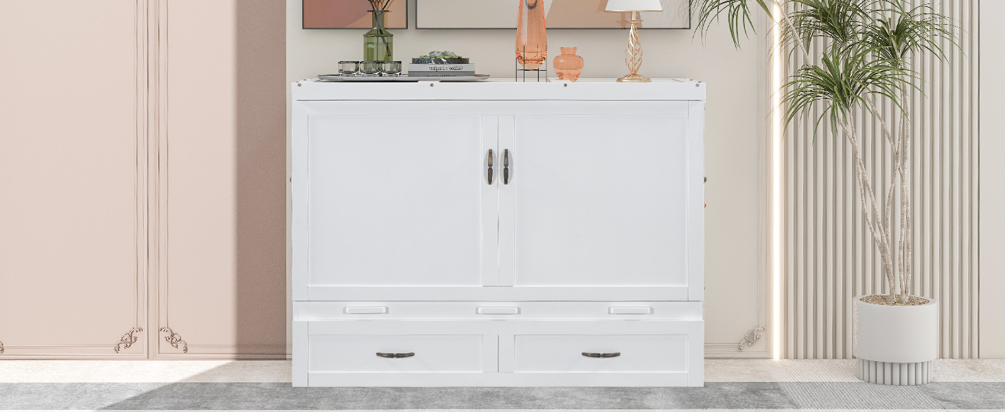 - [Space-Saving Design] There are 2 finishes for the bed. It can be used as a cabinet as well as a bed. It’s perfect for you if you have sleepover often or the room needs more space.And the large drawer underneath the bed can offer you enough space for clothes, toys and any small items you like.