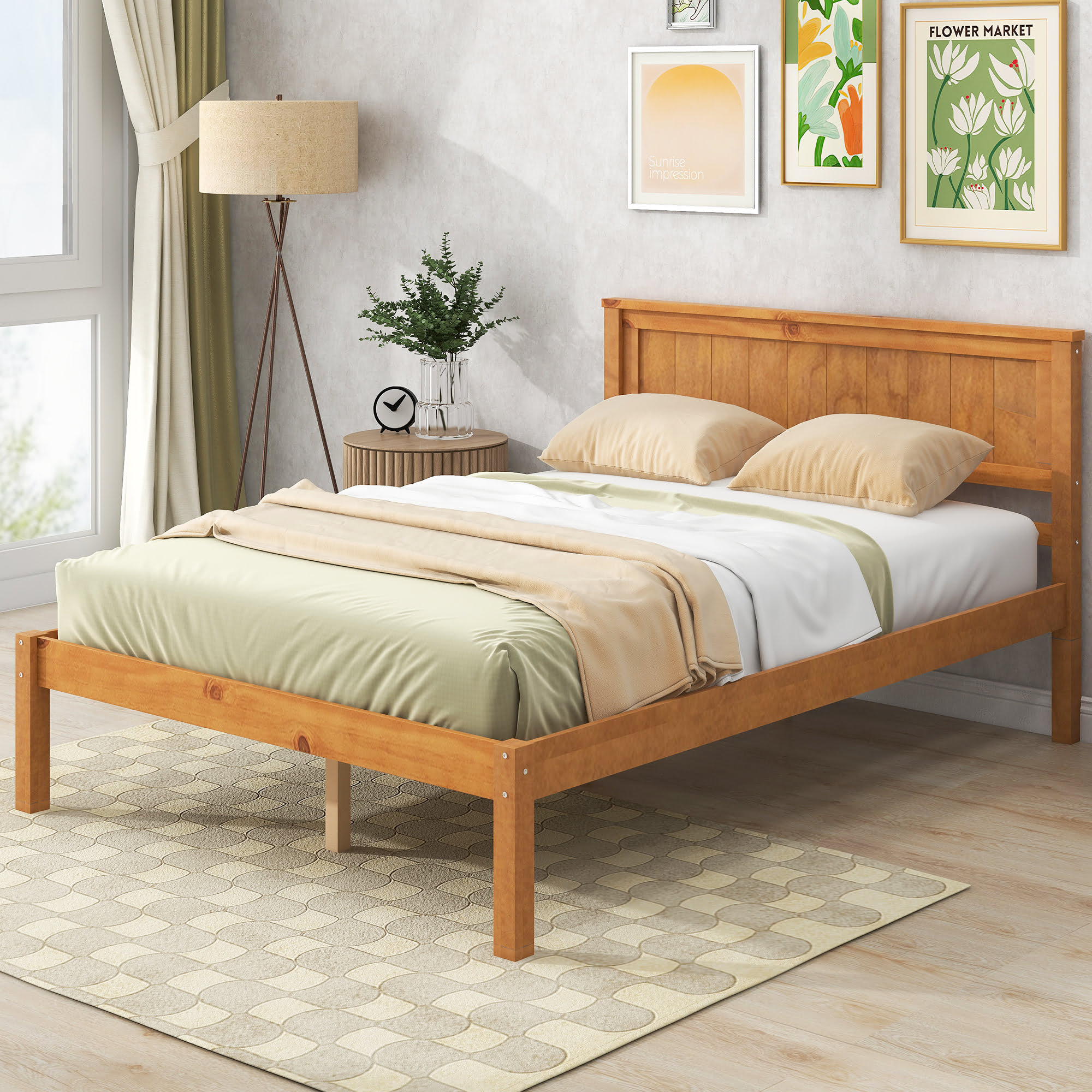 (Price Includes Shipping, No Tax Fee.)This platform bed with headboard features a perfectly simple appearance and works well with any style of home décor. This bed combines modern and rustic style which provides a comfortable and relaxing environment on a busy day. Including strong wooden slats and support legs to support your memory foam, latex, or spring mattress (not included). Made of high-quality MDF and pine wood, this platform bed is very durable and sturdy and can serve your family for years. The under-bed space is available for you to sore your stuff, convenient, and space-saving.