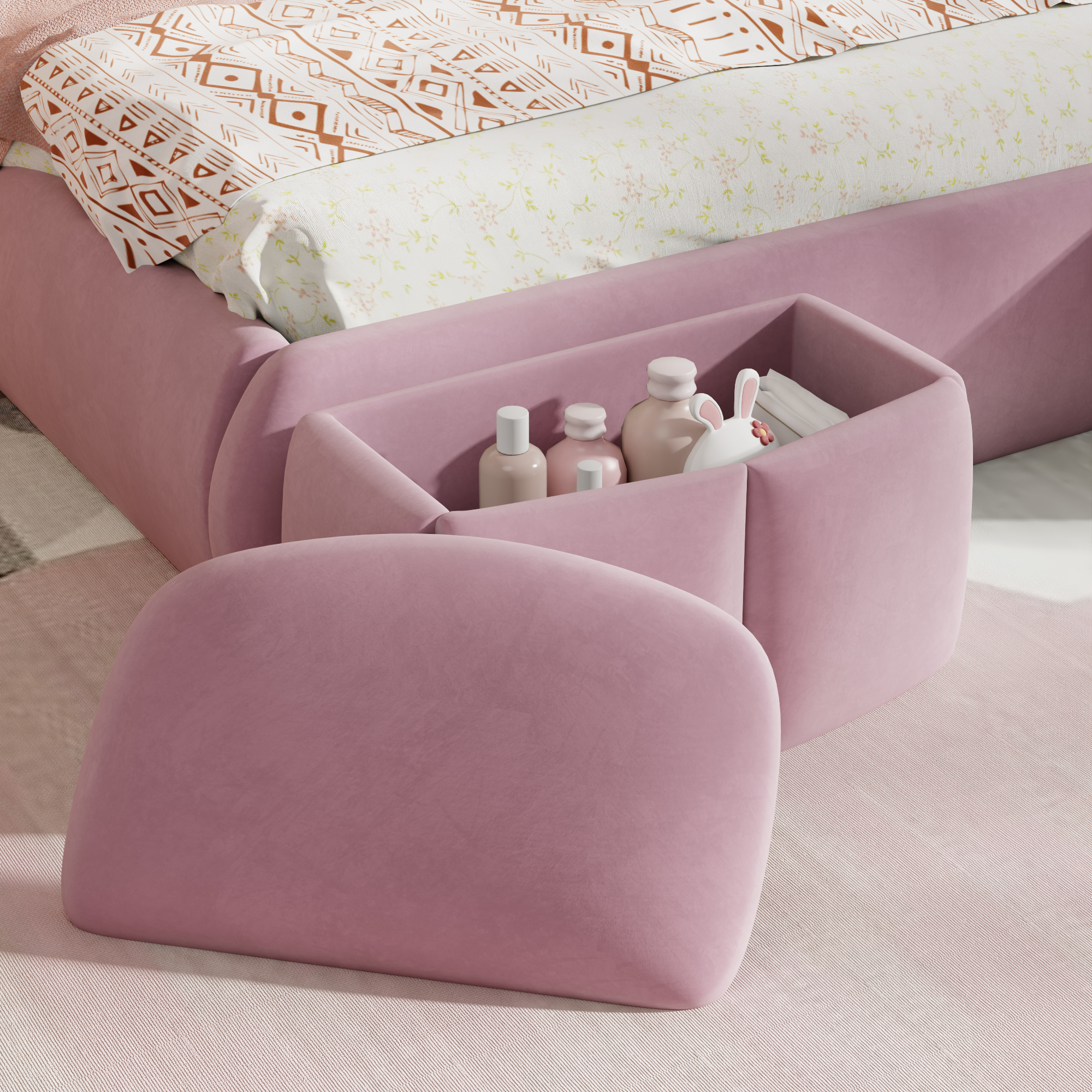 - [Extra Storage Space] There are 2 small storage stools at the end of the bed, where you can store toys or bedding. The lid protects against dust very well.