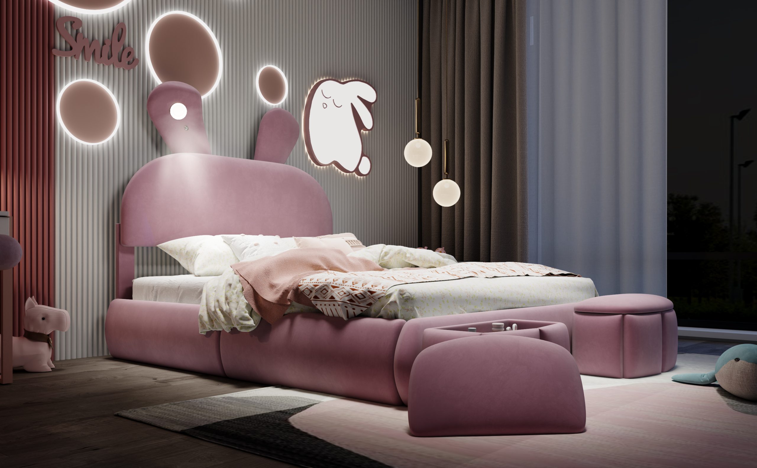 - [Light Design] The built-in LED of one of ears is especially suitable as a reading light for your children. Yellow lights add a warm feel to the room. You can control the intensity of the light with a switch.