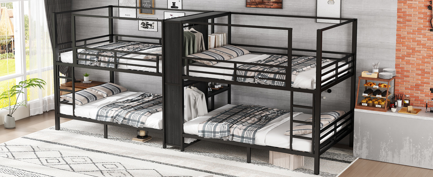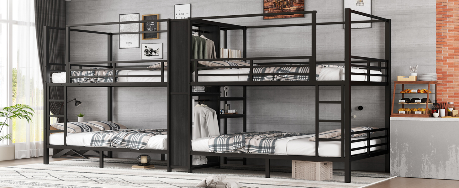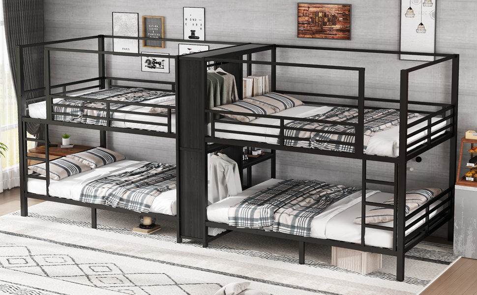 - [Space-Saving Quad Design]: This bunk bed provides four separate sleeping areas at the same time, and through the efficiency of vertical space, it is able to save the use of the floor area, whether it is a family with many children, a vacation home, or temporary entertaining guests, this bed is a great choice!