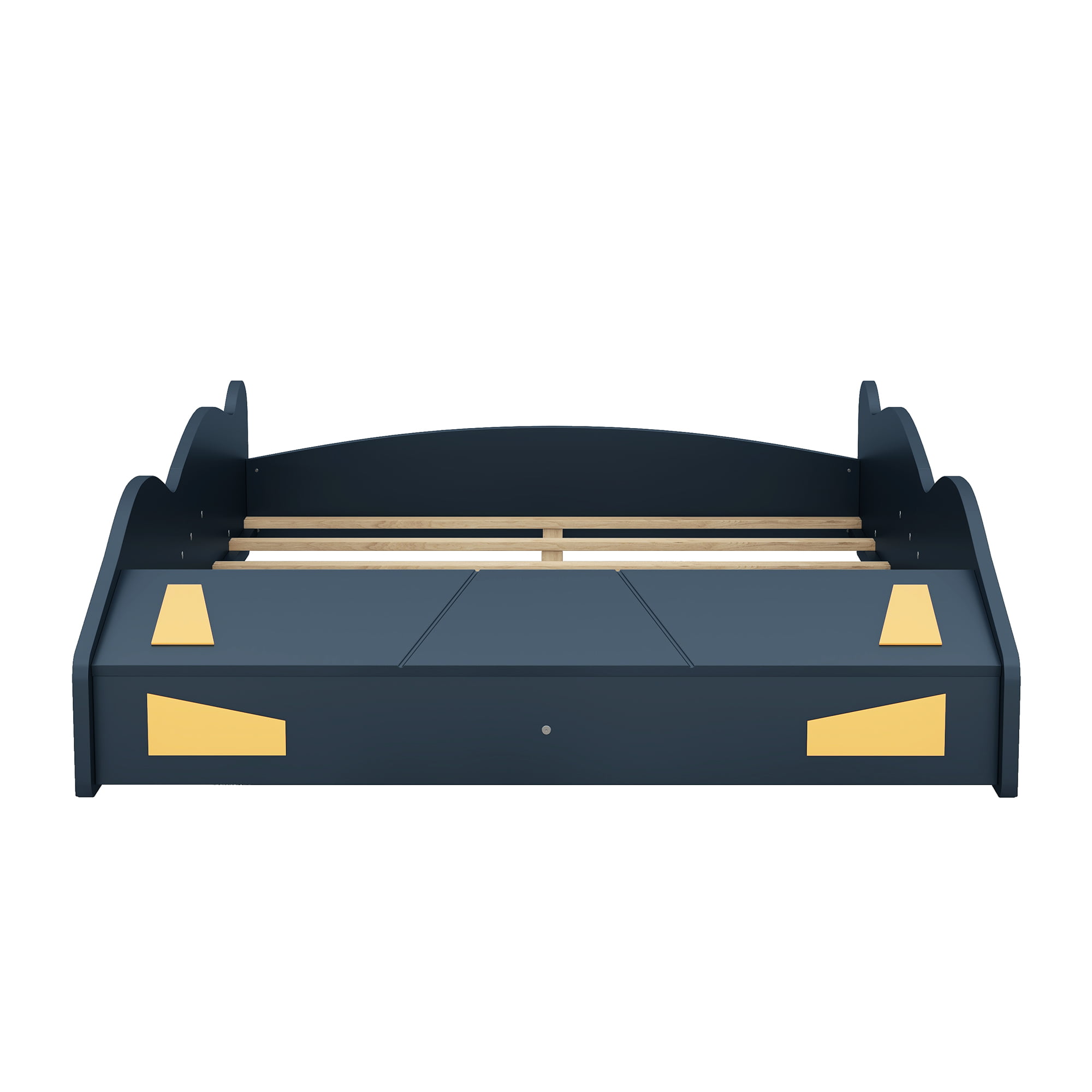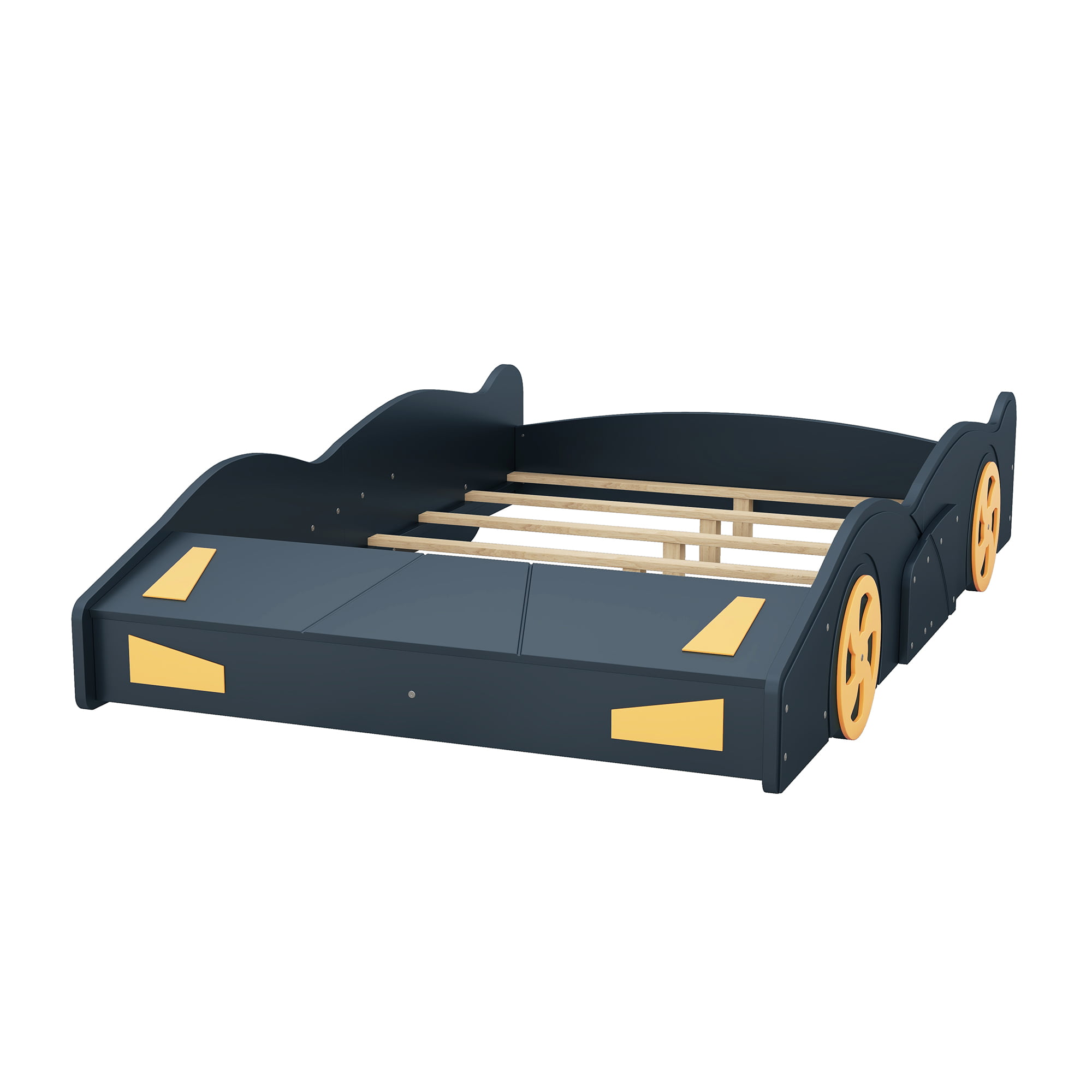 Full Size Race Car-Shaped Platform Bed with Wheels and Storage