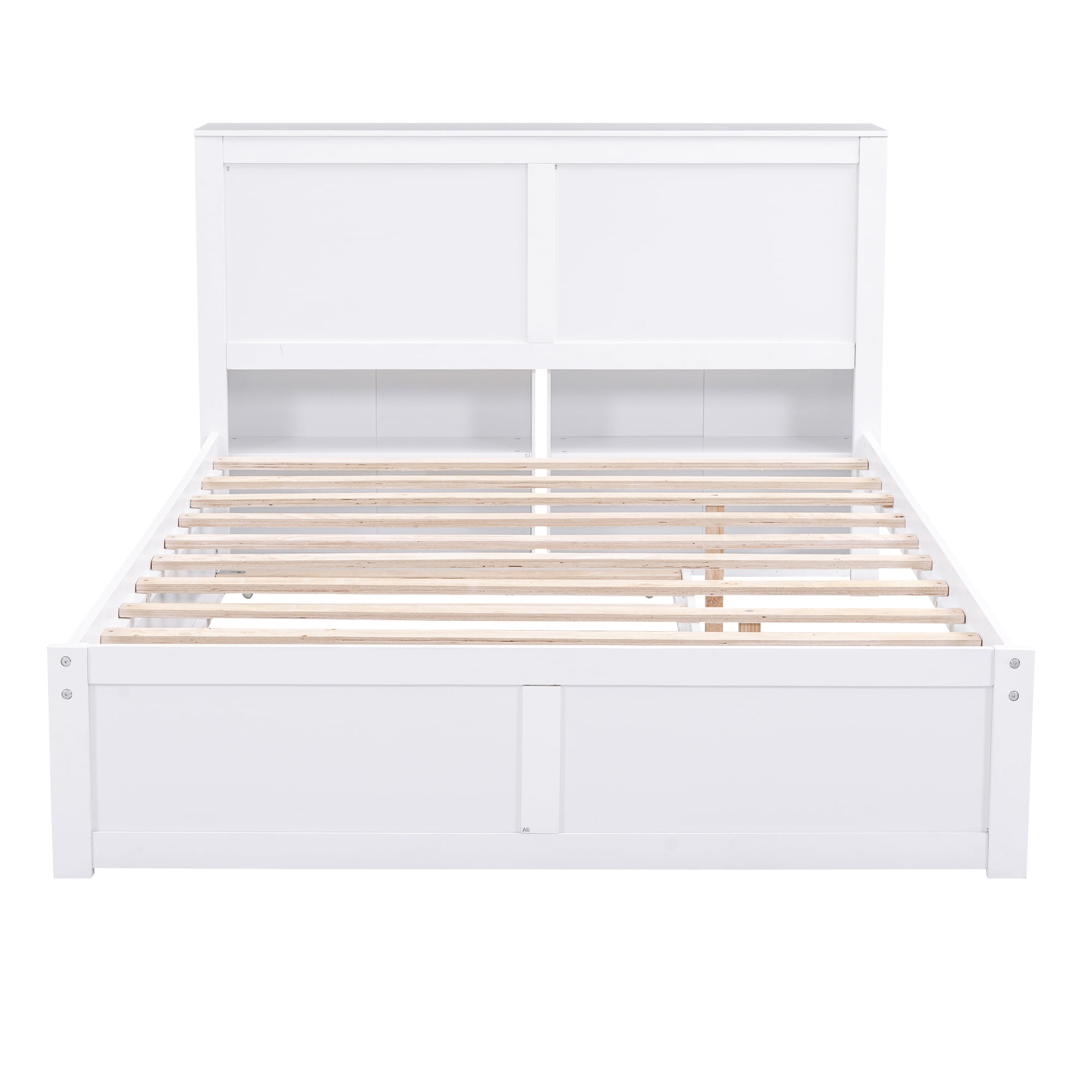 - [Large Storage Space] There are two built-in 4-tier storage shelves on either side of the headboard. Wheel design on the bottom of the shelf is easy for you to pull out and push in, keeping the room tidy.