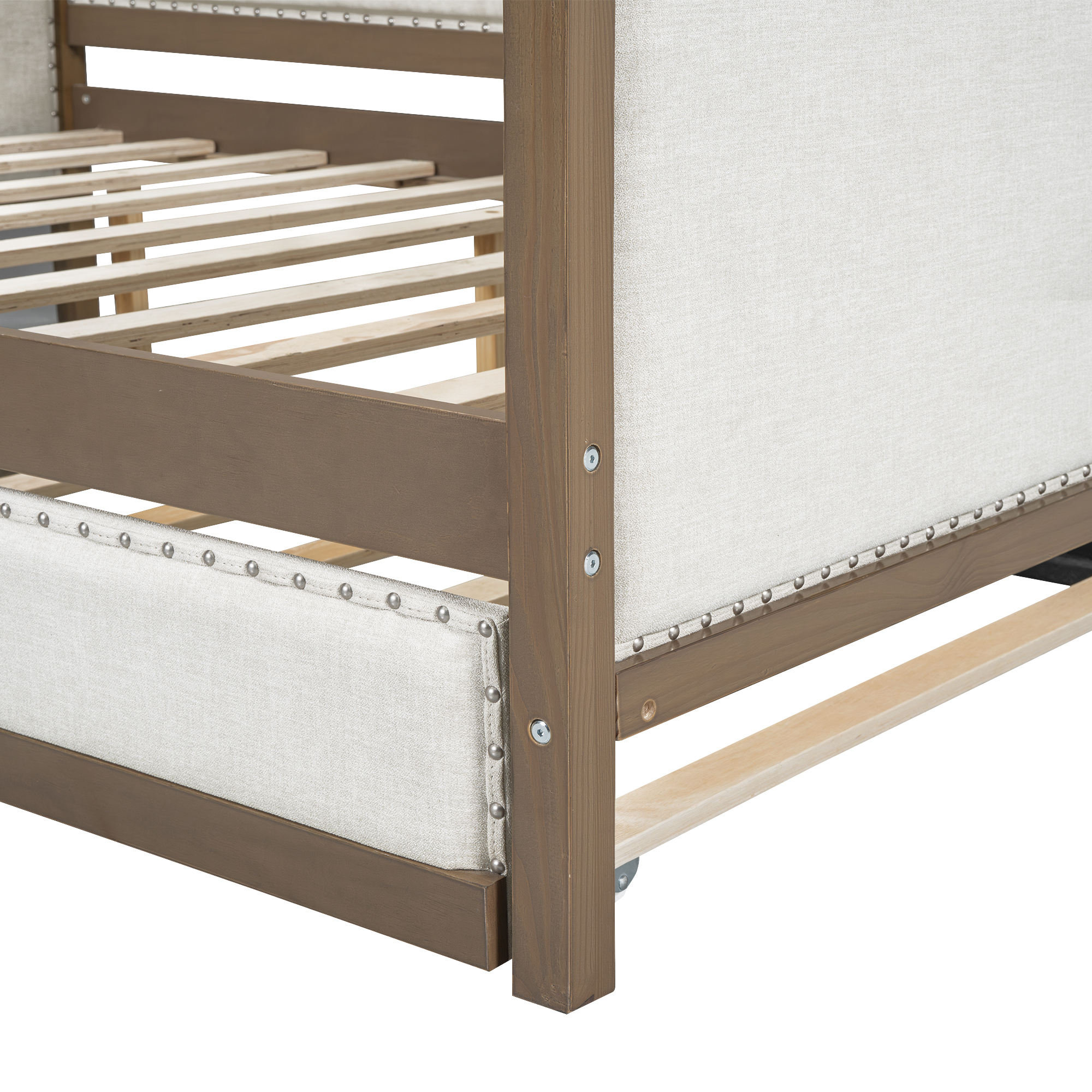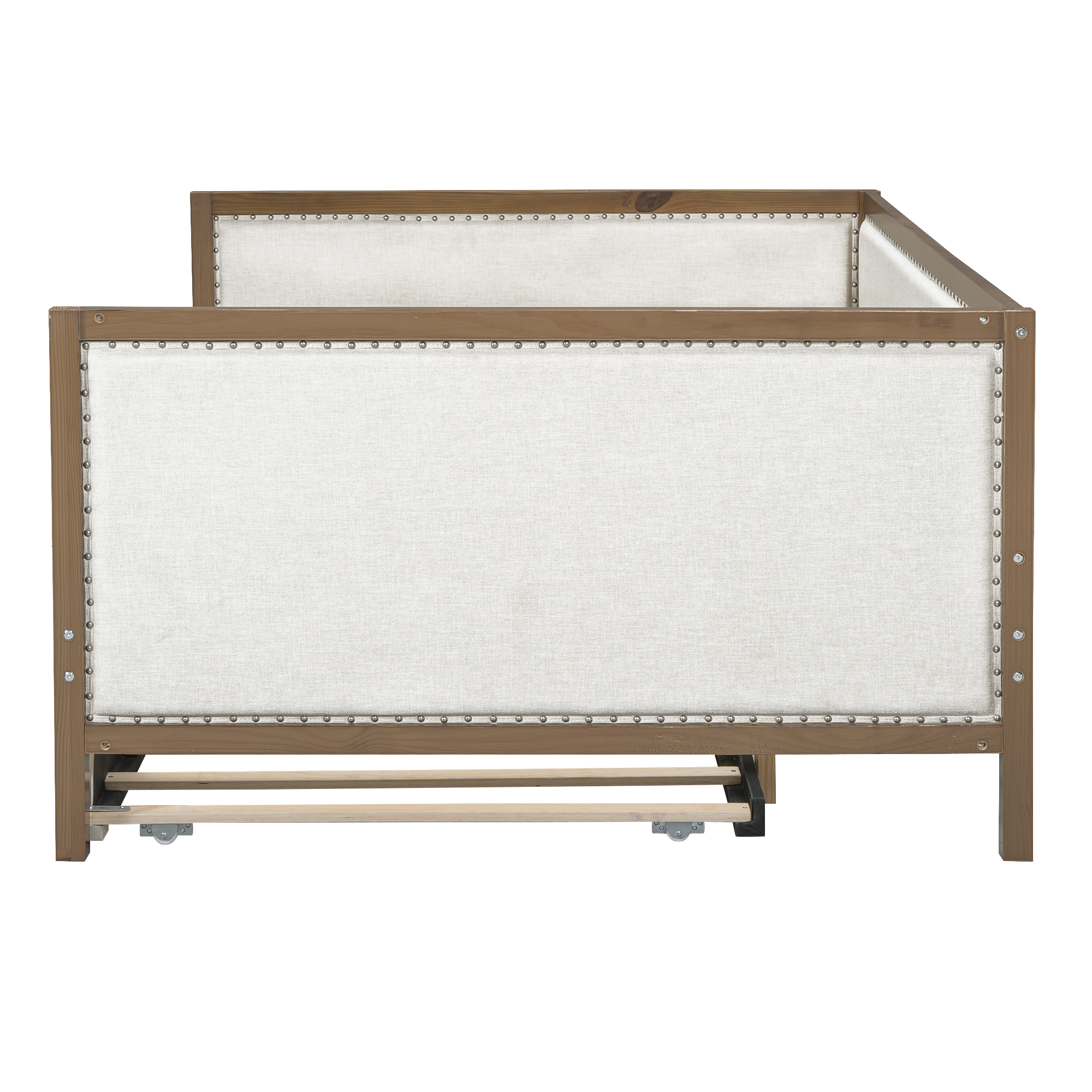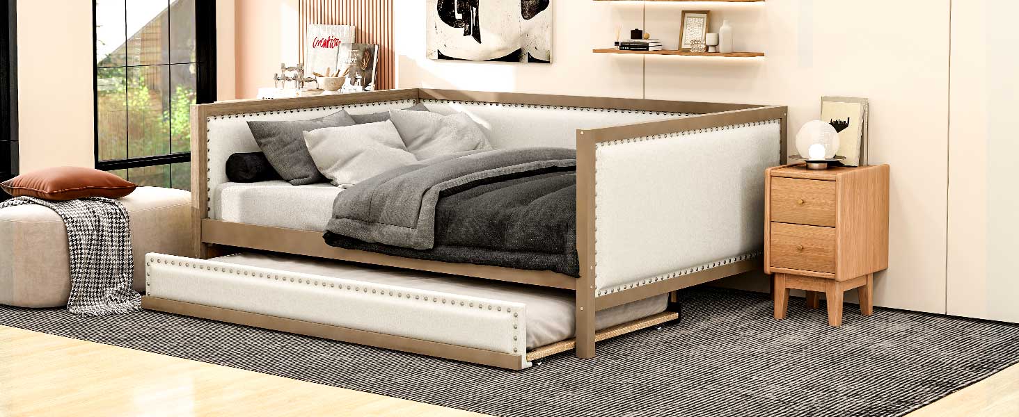 - [Modern Upholstered Daybed] This design is an elegant style upholstered in Linen. Nailhead decoration adds design to this daybed, making it a classic addition to your room.