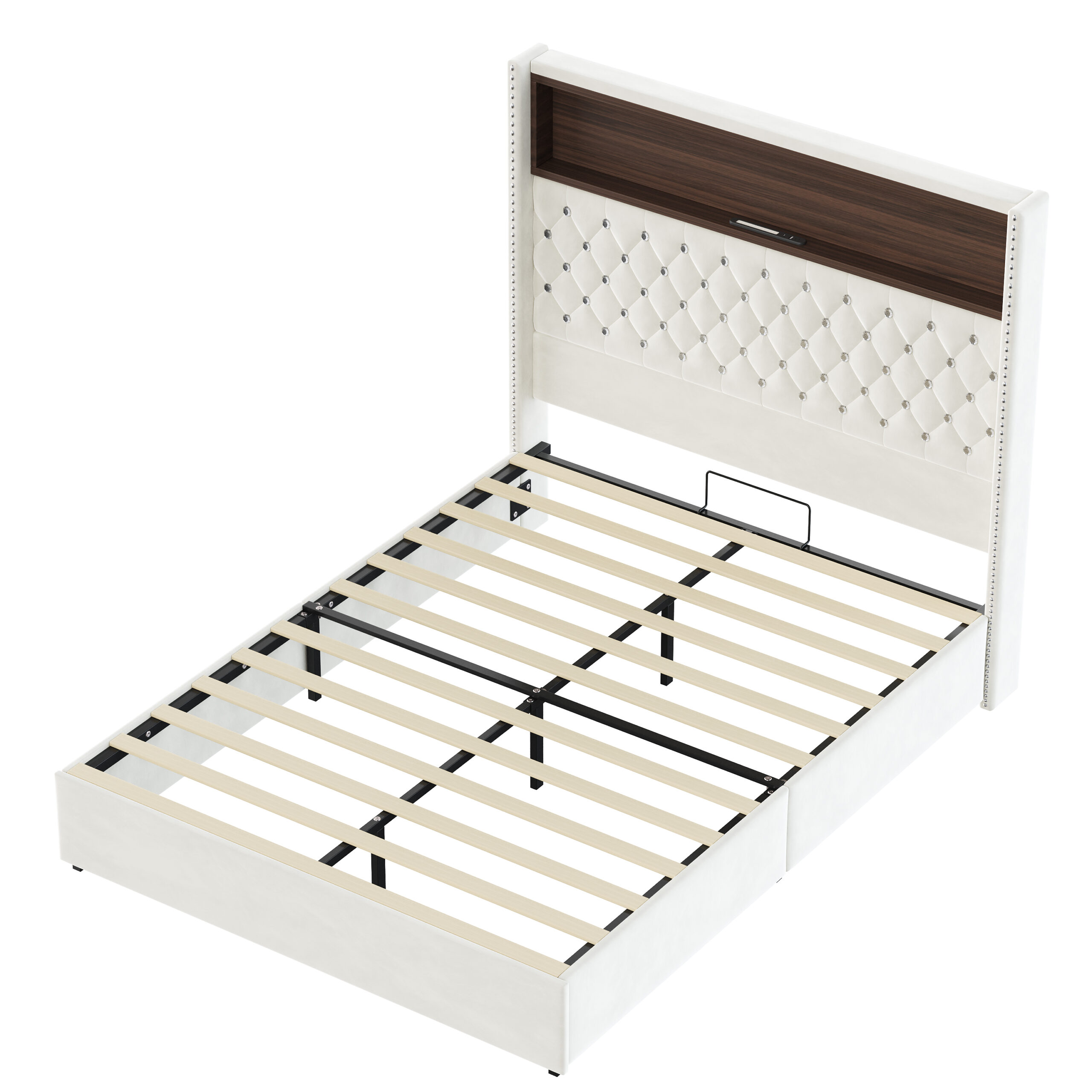 Full Size Velvet Tufted Soft Bed Frame with USB Port and Night Light