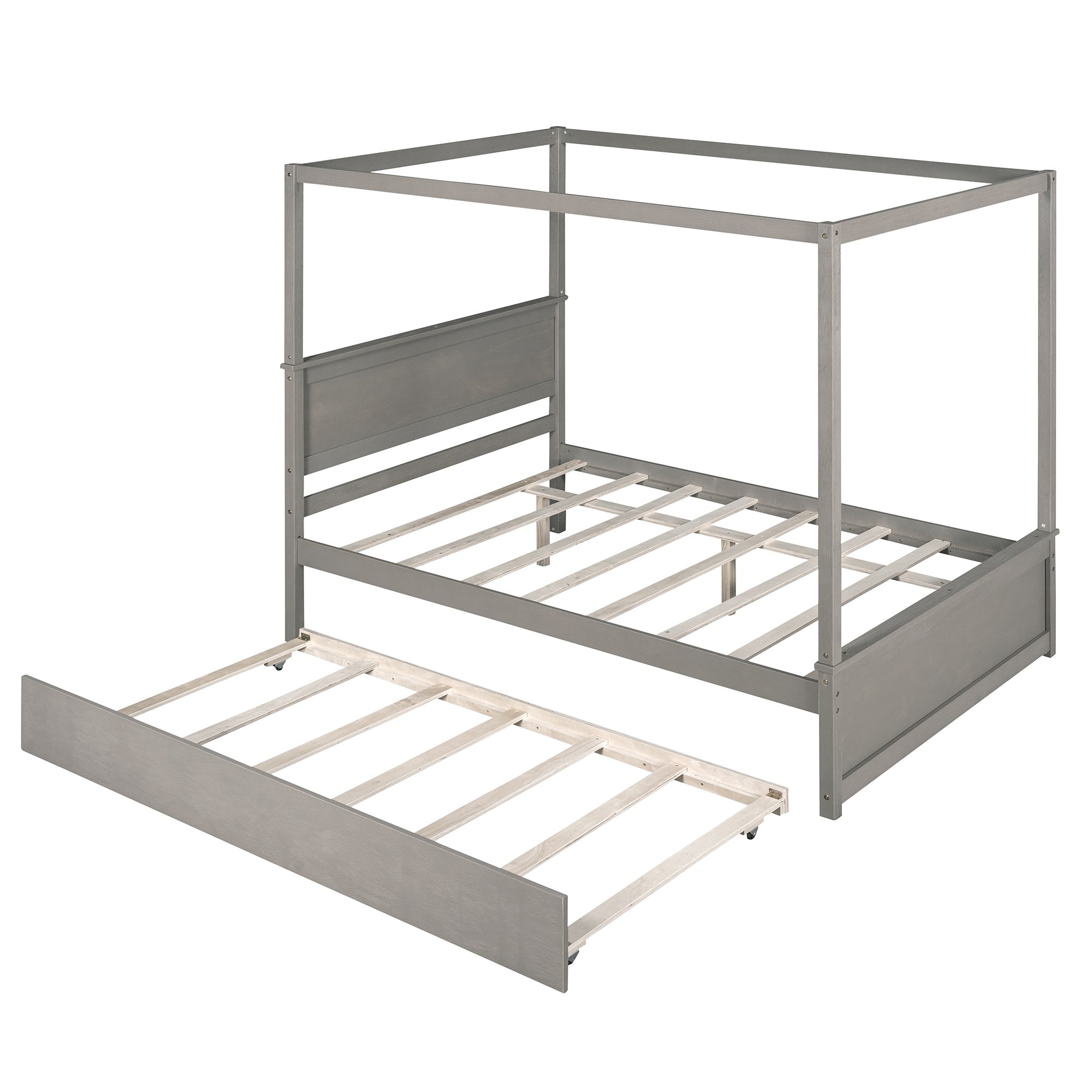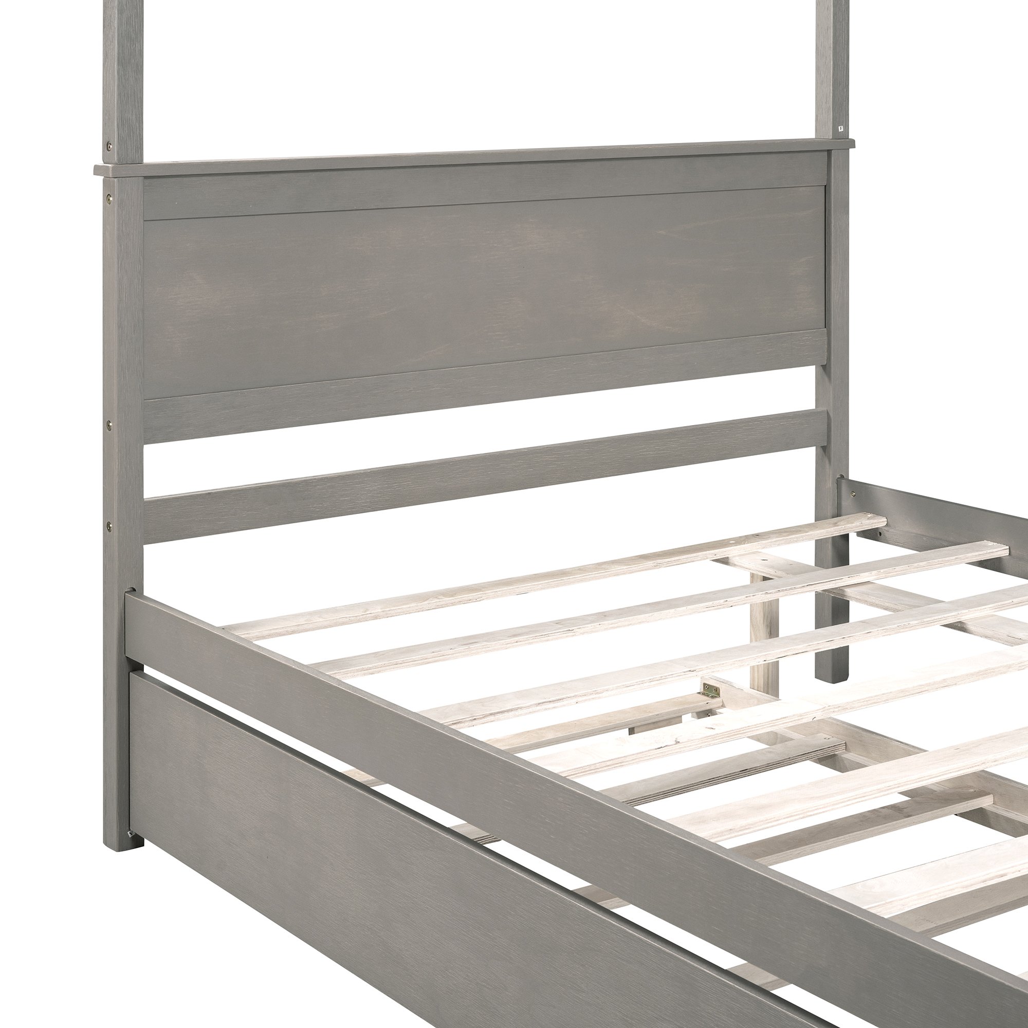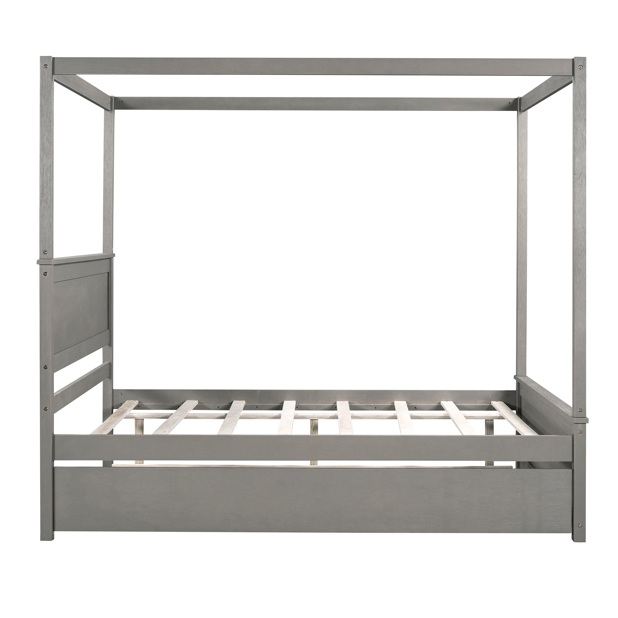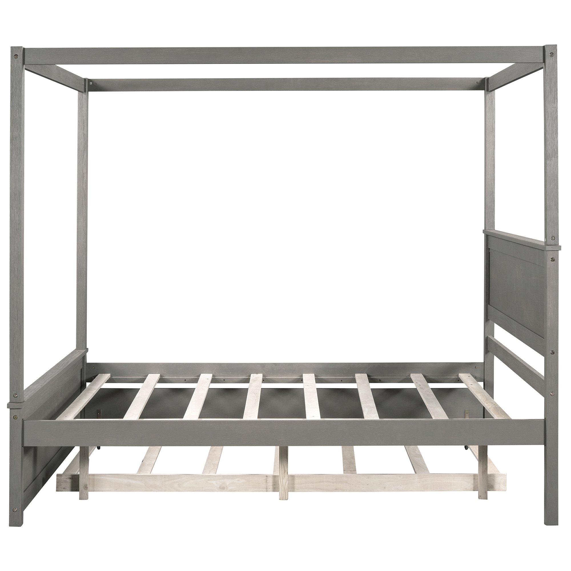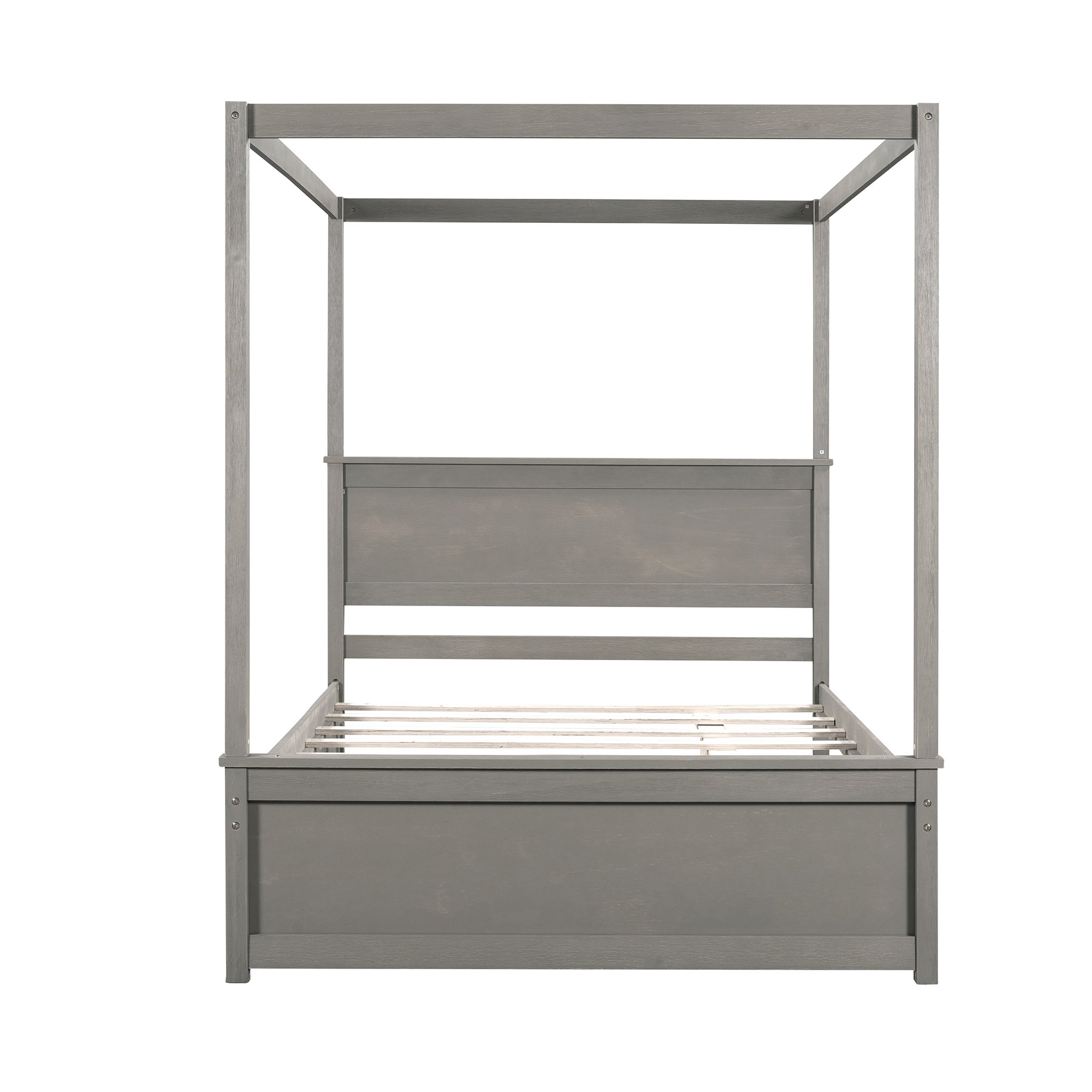 - [Modern Design] Wooden canopy bed with a brushed-effect finish has a sleek exterior profile, built-in headboard, and footboard, with clean lines for a timeless look