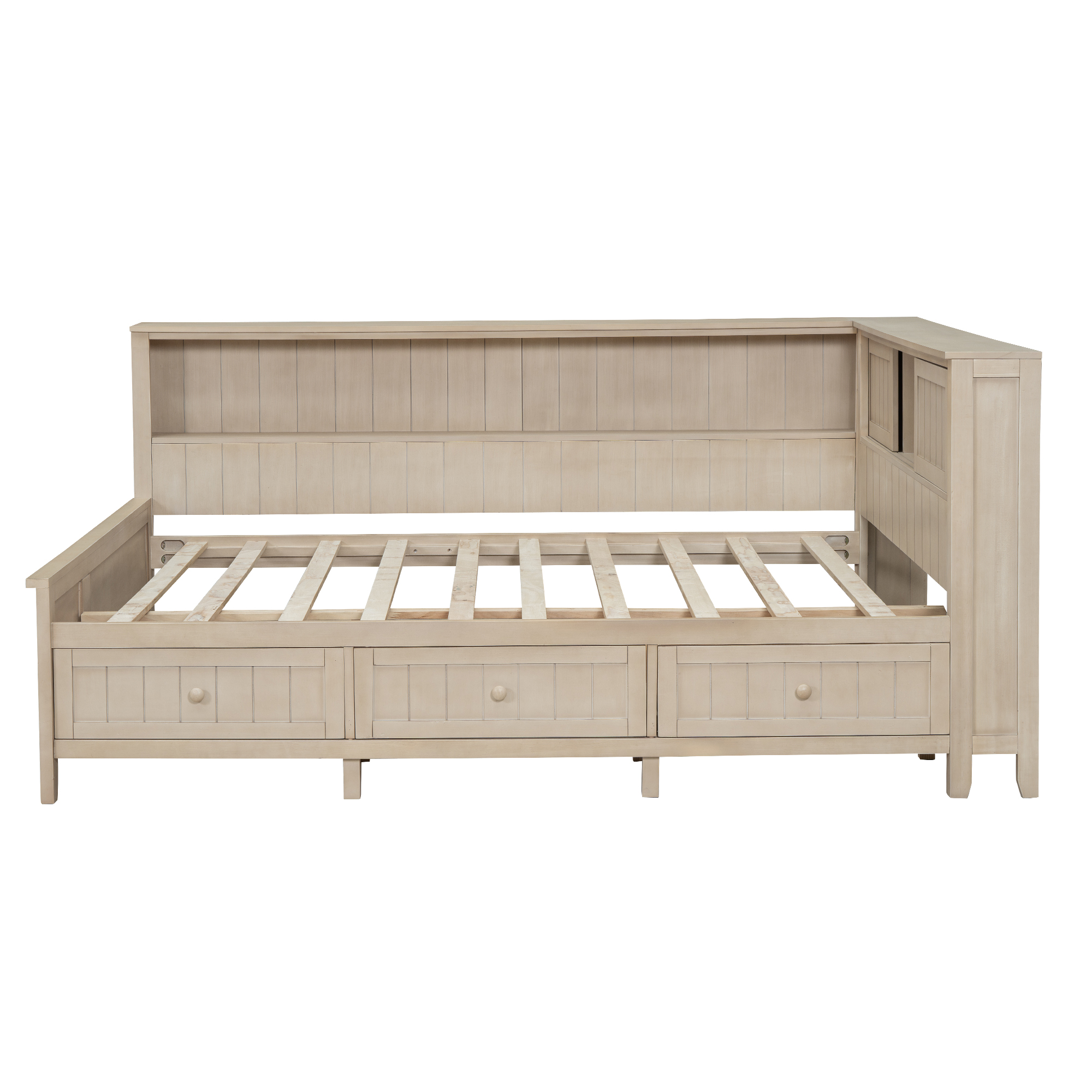 - [Multi-Storage Space] There are several storage shelves on the sides of the bed, so you can store items according to their size. The top storage shelf is equipped with 2 sliding doors, which can store your private items or prevent dust. The 3 drawers under the bed can easily store your clothes or bedding, making it dustproof and tidy.