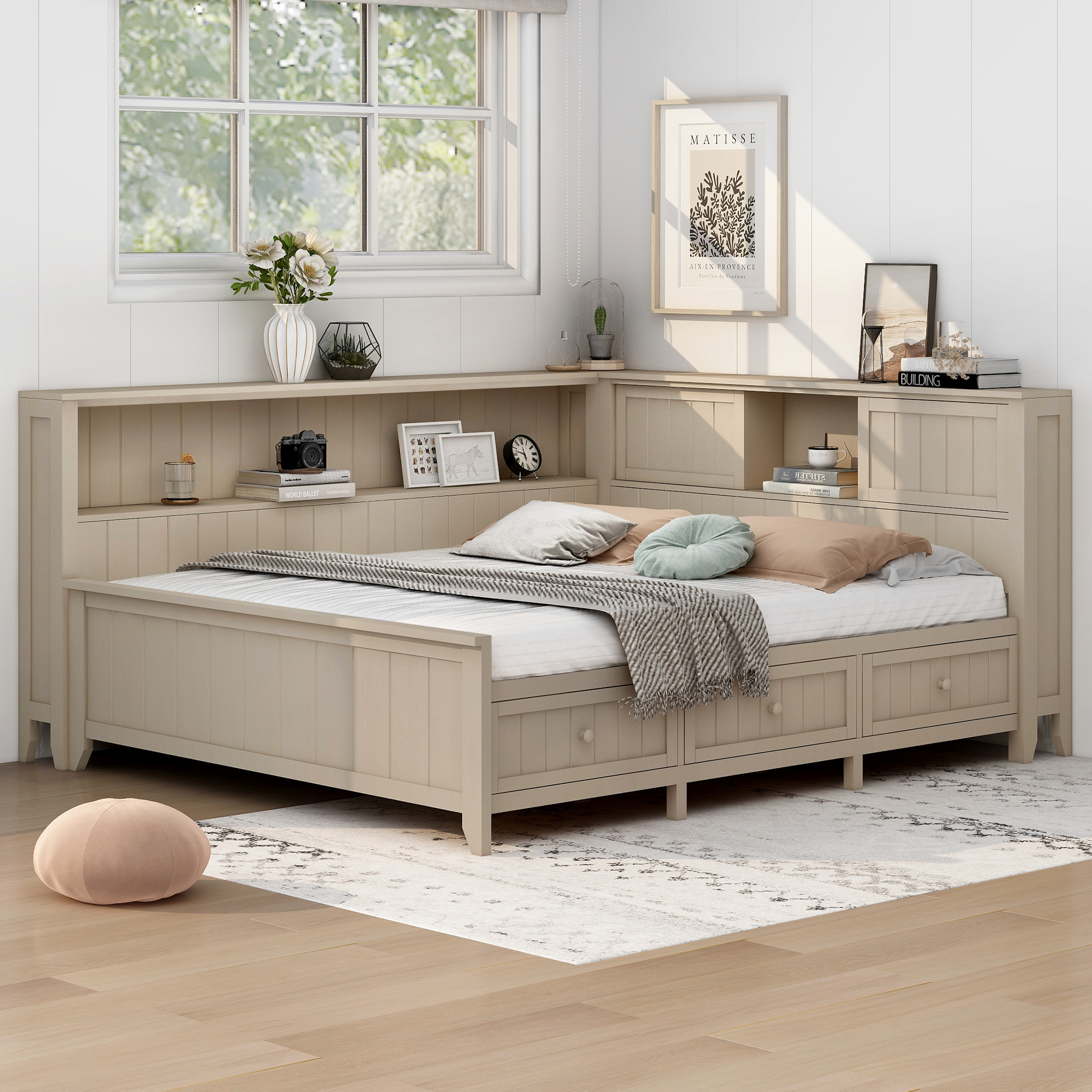 - [Farmhouse Style] With vertical lines design, combined with antique white milk finish, this bed brings a farmhouse style to your room and will match perfectly with the rest of your furniture.