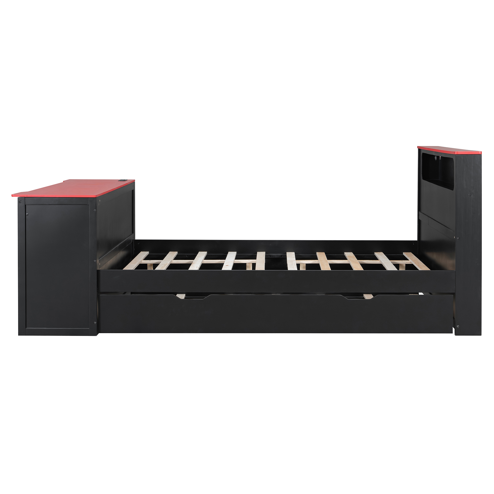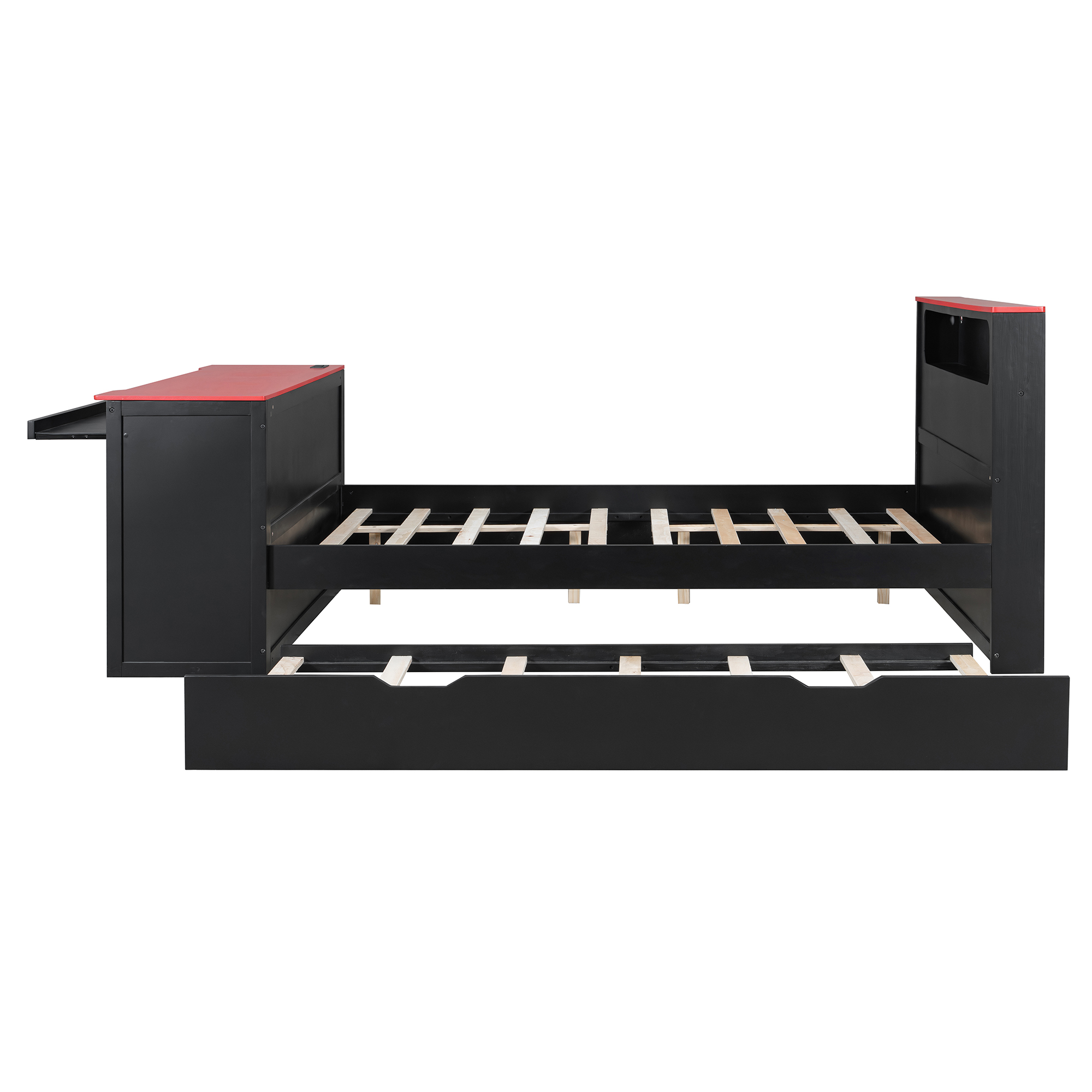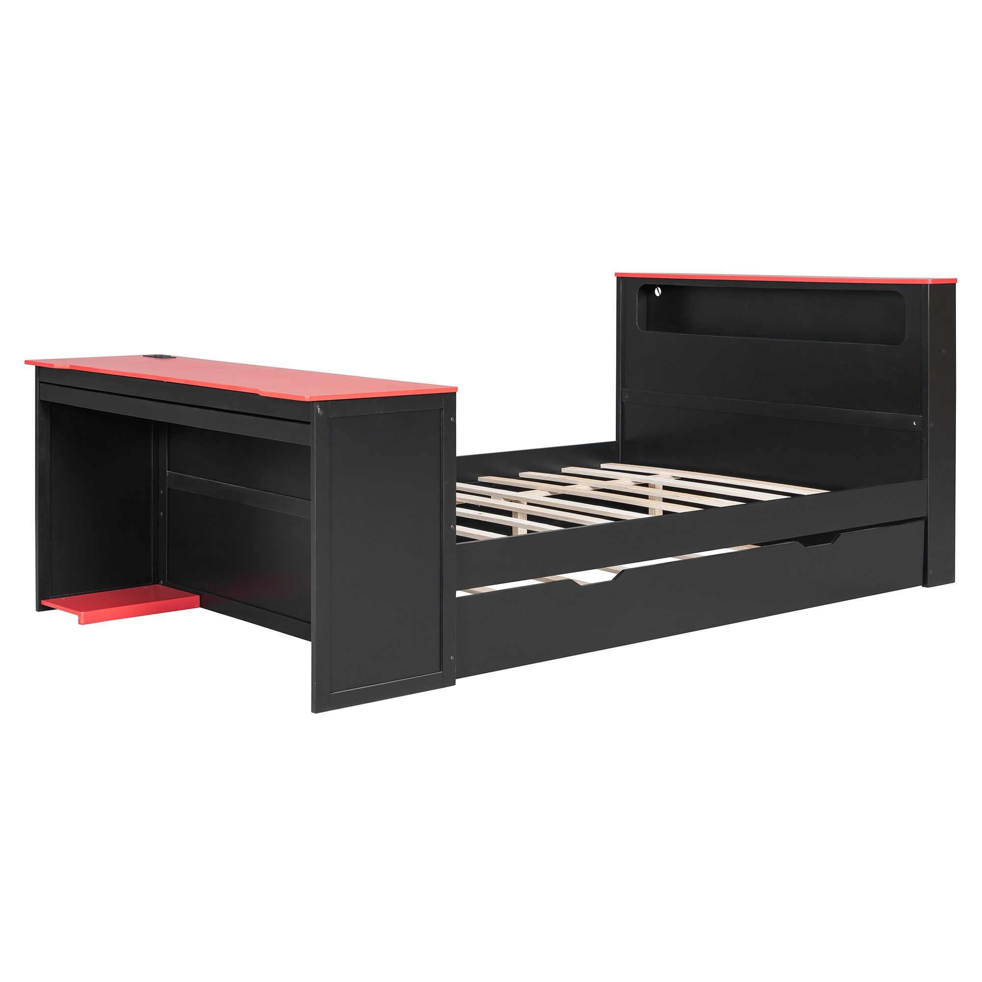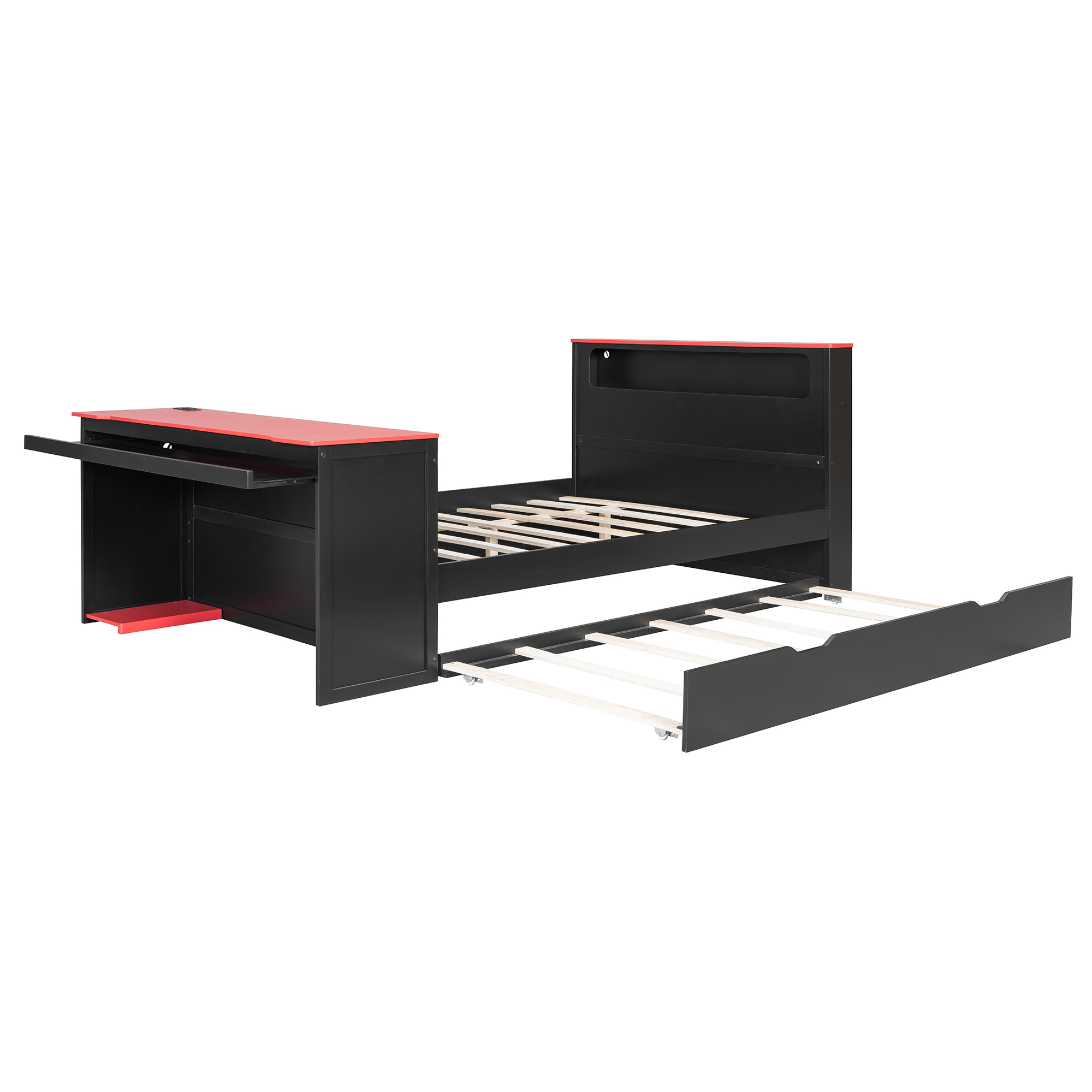 - Integrated Gaming & Study Station: The footboard doubles as a professional-grade desk, featuring a spacious surface for your monitor, a dedicated sliding keyboard tray, and a specialized lower CPU stand. This ergonomic setup keeps your gaming gear or study materials organized without needing extra floor space.