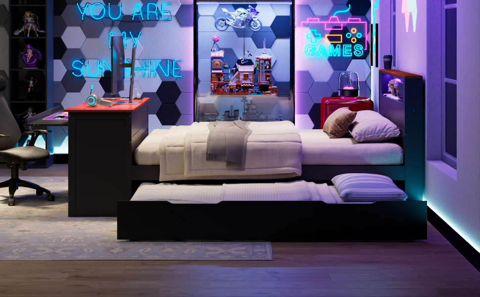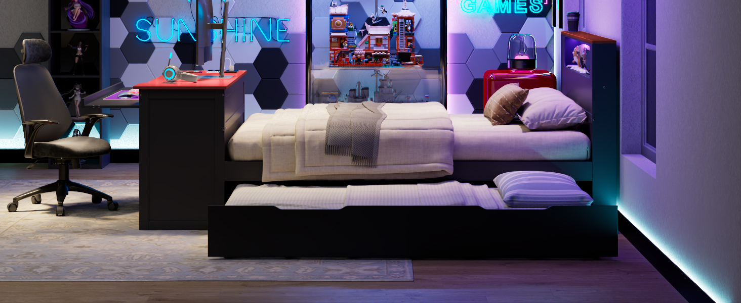 - Space-Saving Pull-Out Trundle: Perfect for sleepovers or shared rooms, this bed includes a hidden twin-size trundle on smooth-gliding wheels. It provides an extra sleeping surface for guests in seconds and tucks away seamlessly when not in use to maximize your living area.