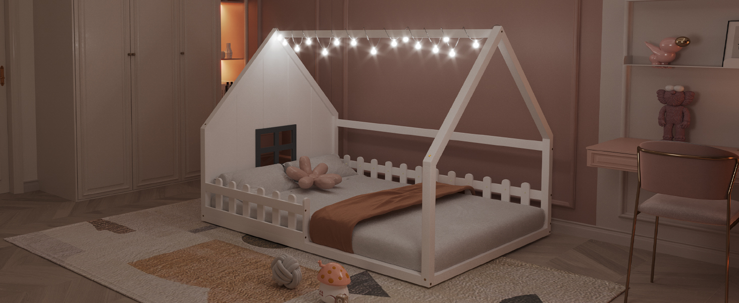 This bed comes with house-shaped frame which can inspire your kid’s imagination, you can decorate the bed as your kid’s personal playground with your kid. The fence provides a sense of rural life and guarantees safety of the young user.