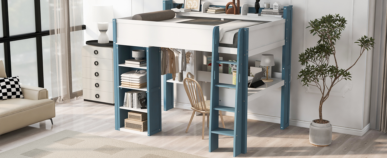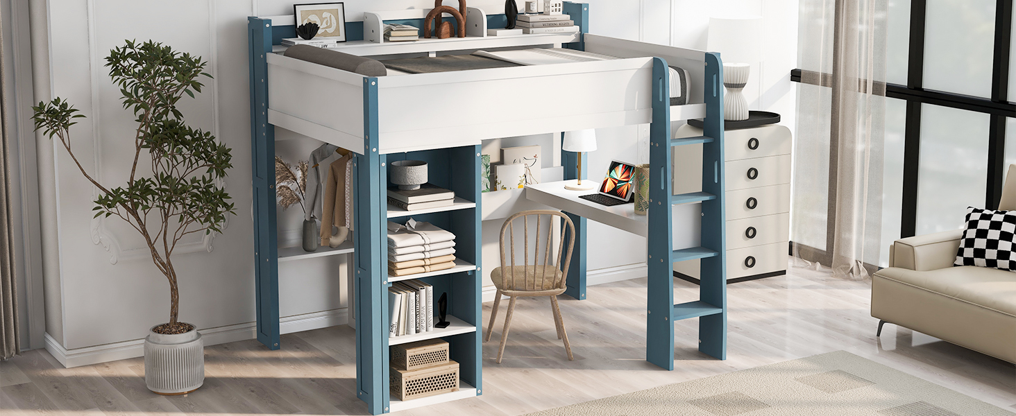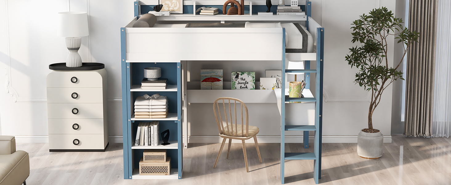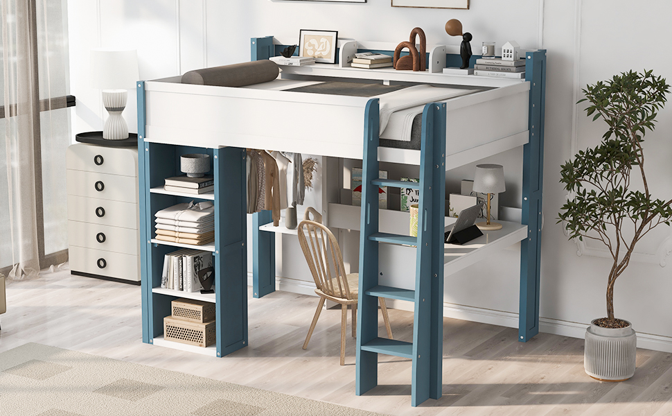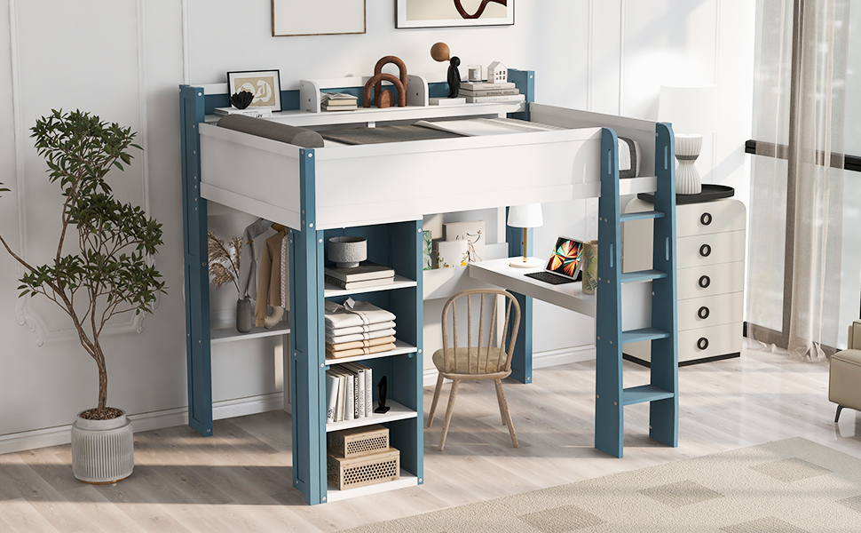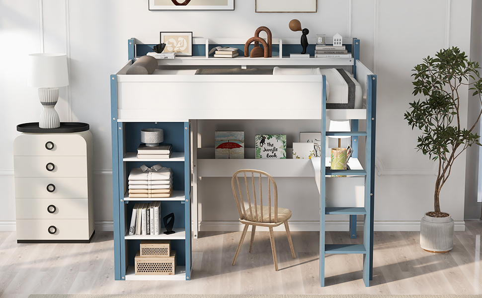 - Integrated Workspace: Featuring a built-in desk with an bulit-in book shelf , it offers a perfect spot for homework, reading, or any creative pursuits.