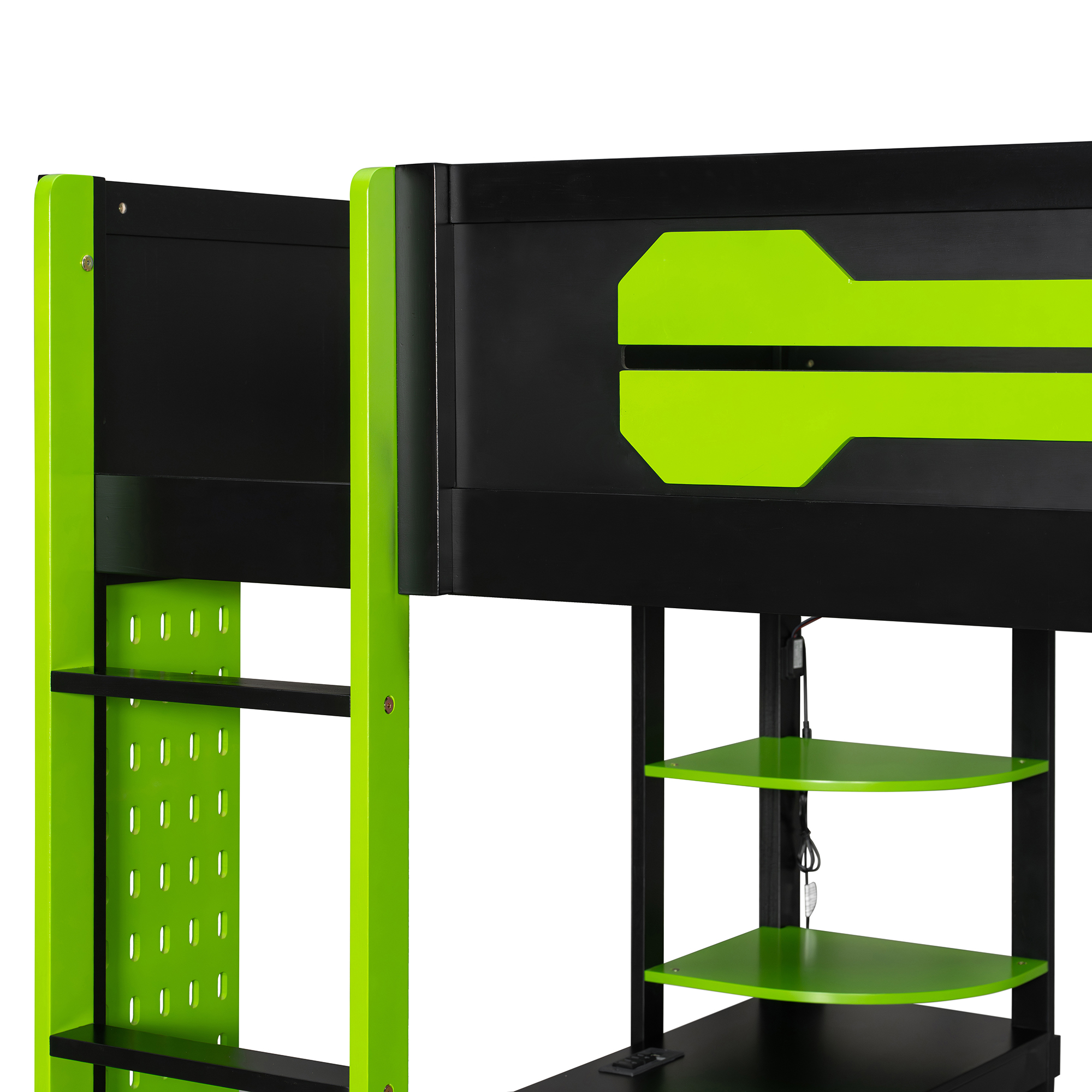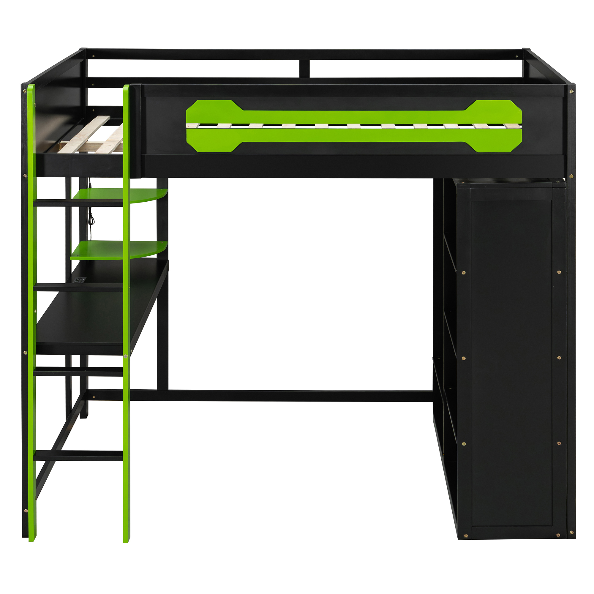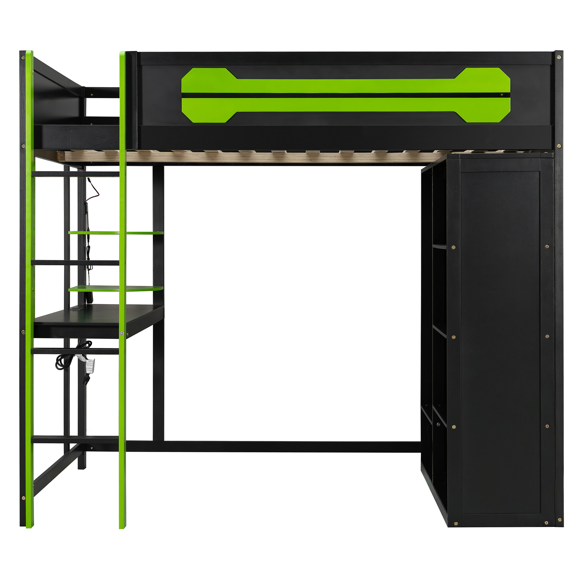 - Ultimate Gaming & Study Station: This full-size loft bed features an integrated spacious desk, an open wardrobe, and shelving, creating a centralized hub for intense gaming sessions and productive study hours.