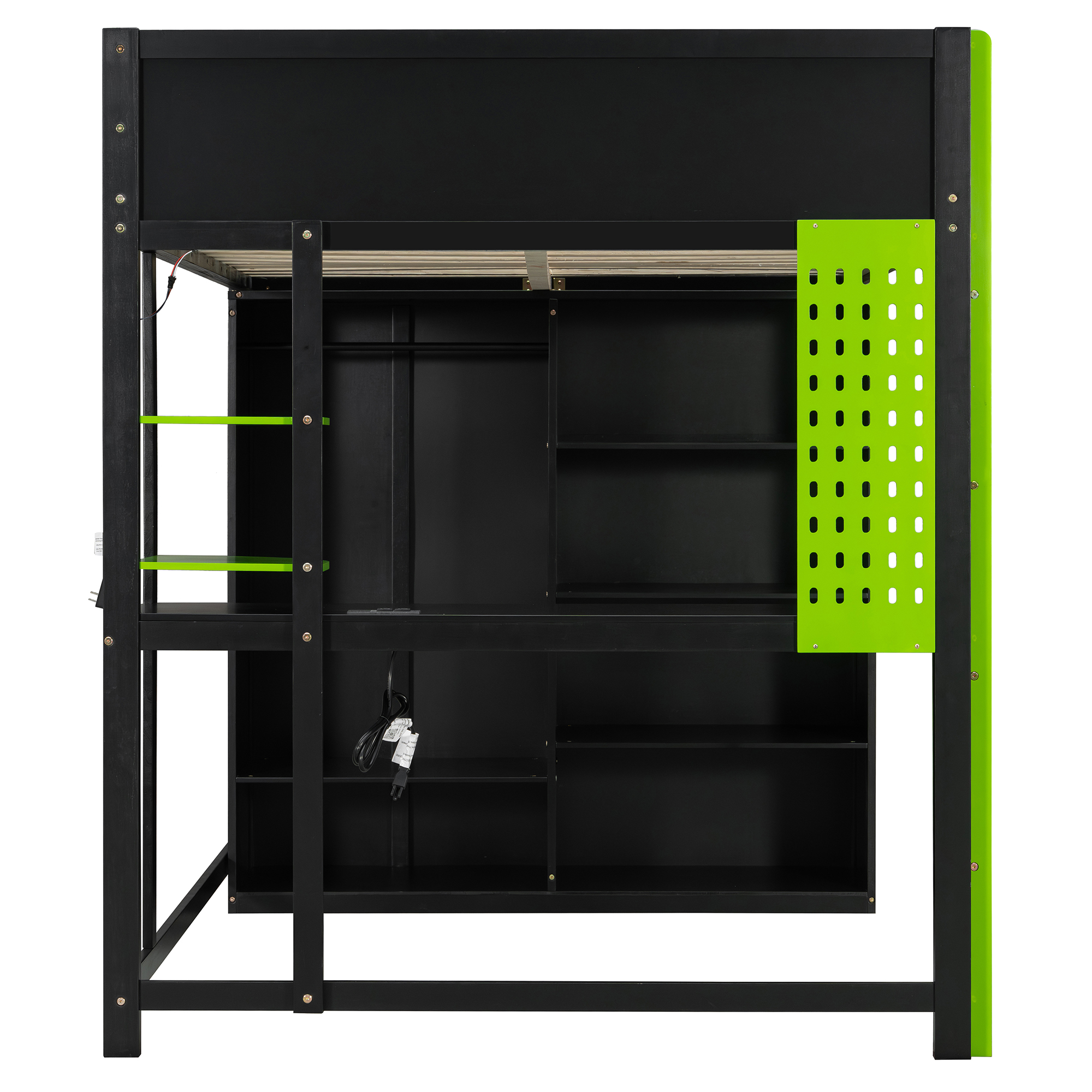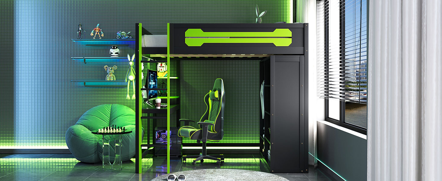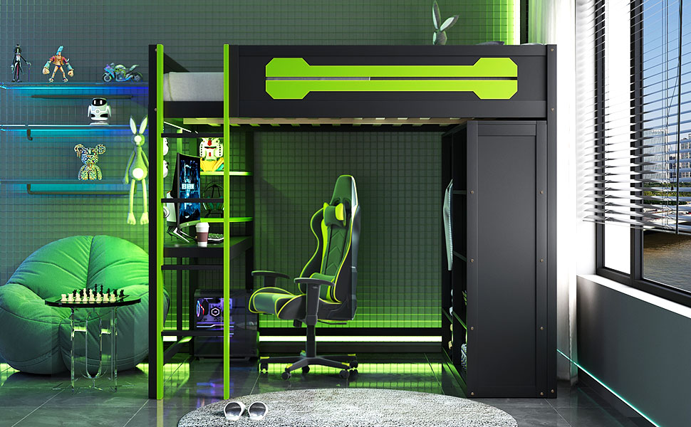 - Immersive RGB Lighting&Tech Integration: Elevate your setup with built-in RGB LED strips under the bed frame. The desk comes equipped with convenient USB ports and power outlets to keep your devices charged and ready.