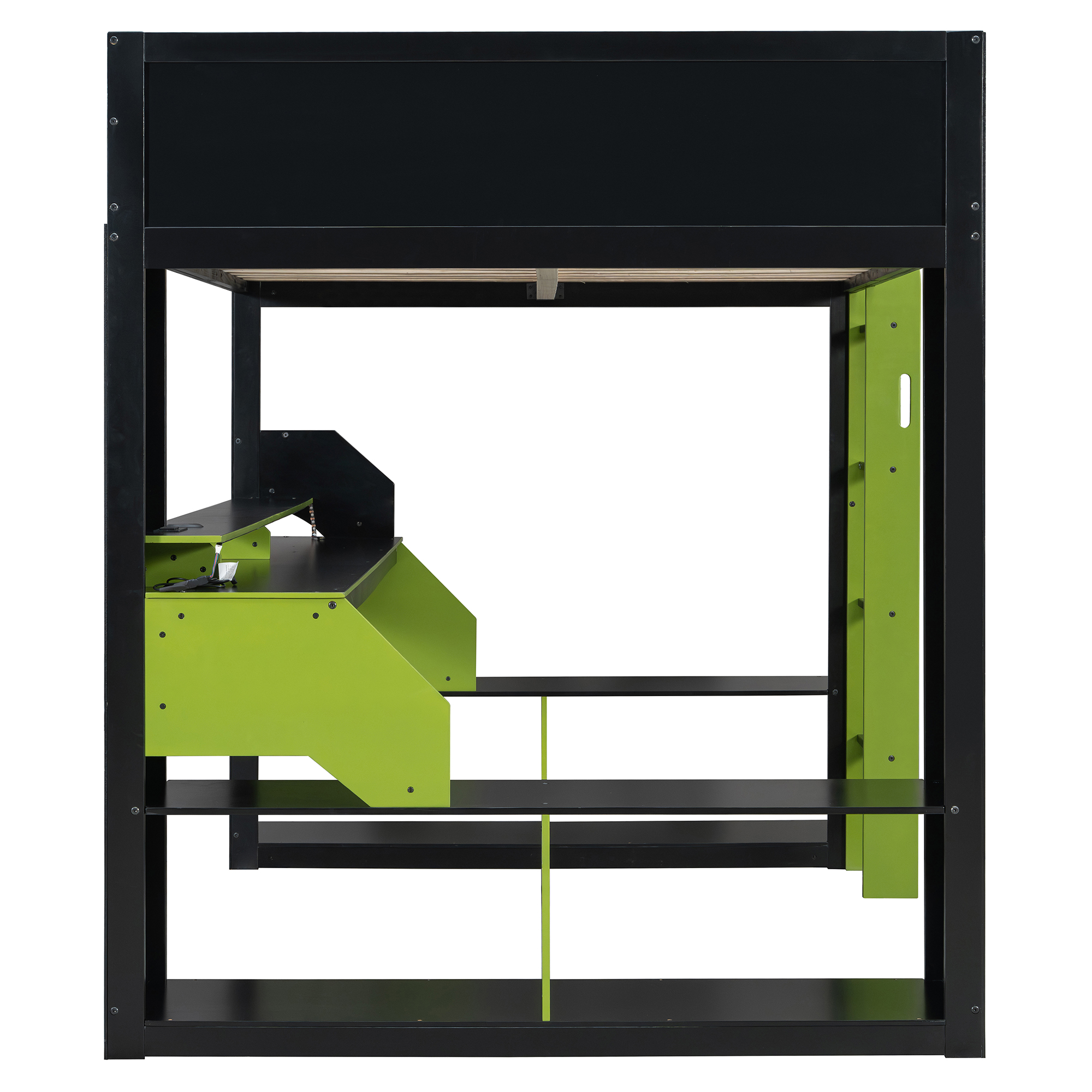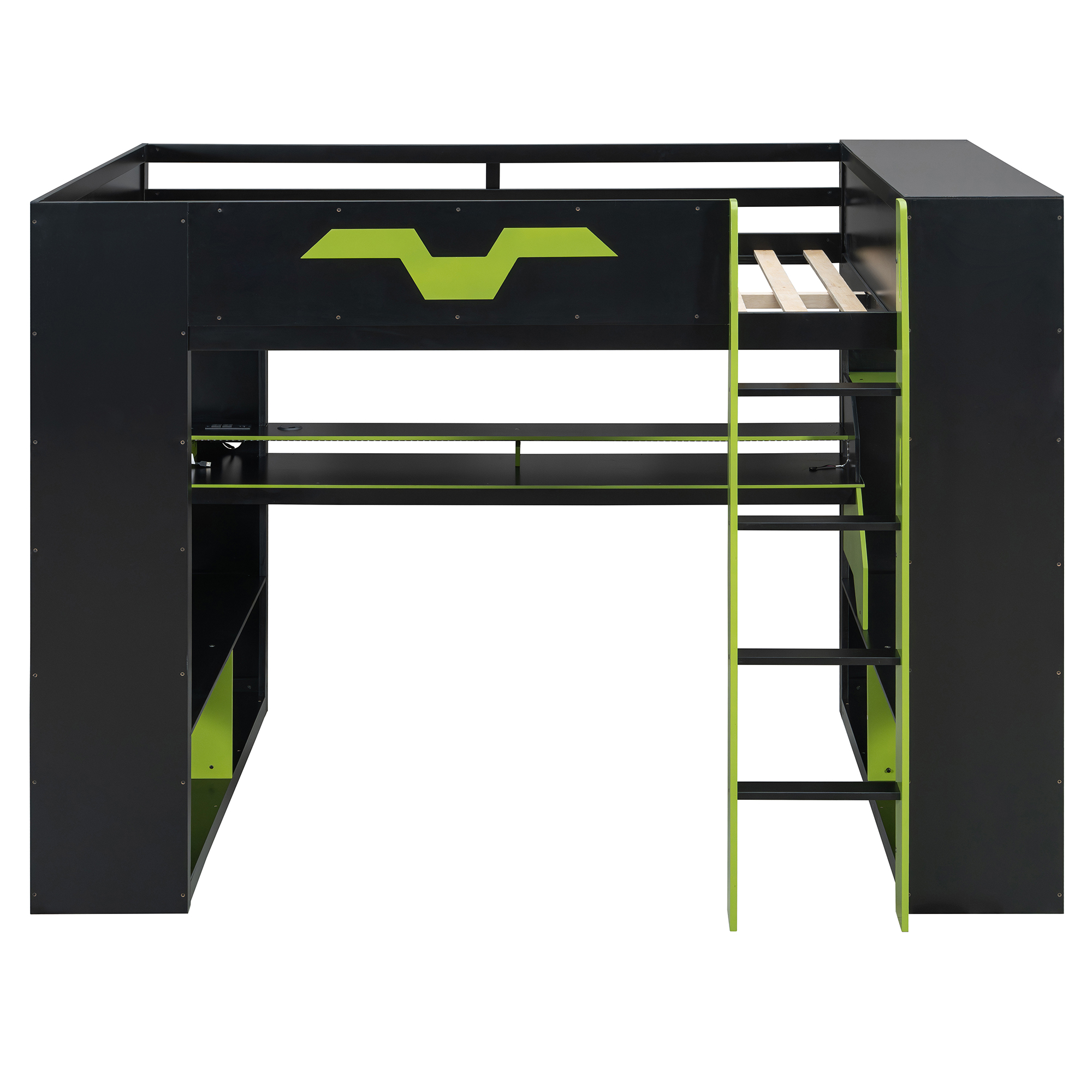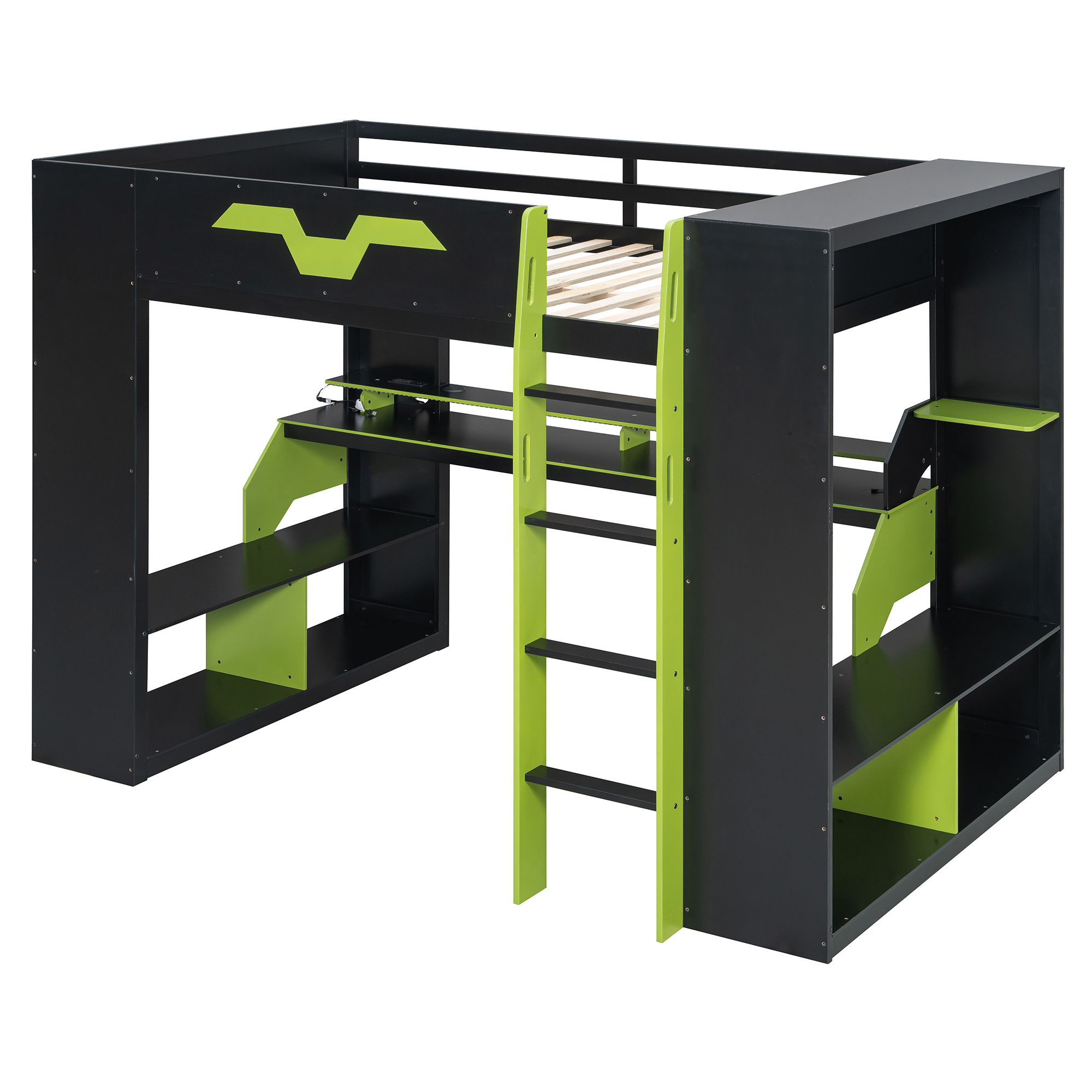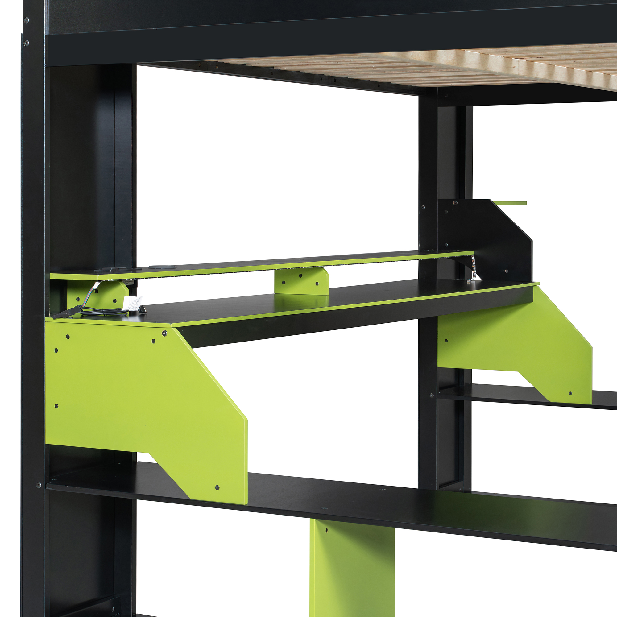 - [Ergonomic Workspace & Multi-Tier Storage] Designed for productivity and comfort, the spacious desk includes a raised monitor shelf to help maintain a healthy posture and reduce neck strain. Two-tier storage shelves on both sides of the bed, plus additional side pockets near the desk, provide ample room for books, collectibles, and gaming gear, making every inch of the room work harder for you. t’s the ideal solution for small bedrooms, apartments, or dorms looking for a modern, high-tech upgrad