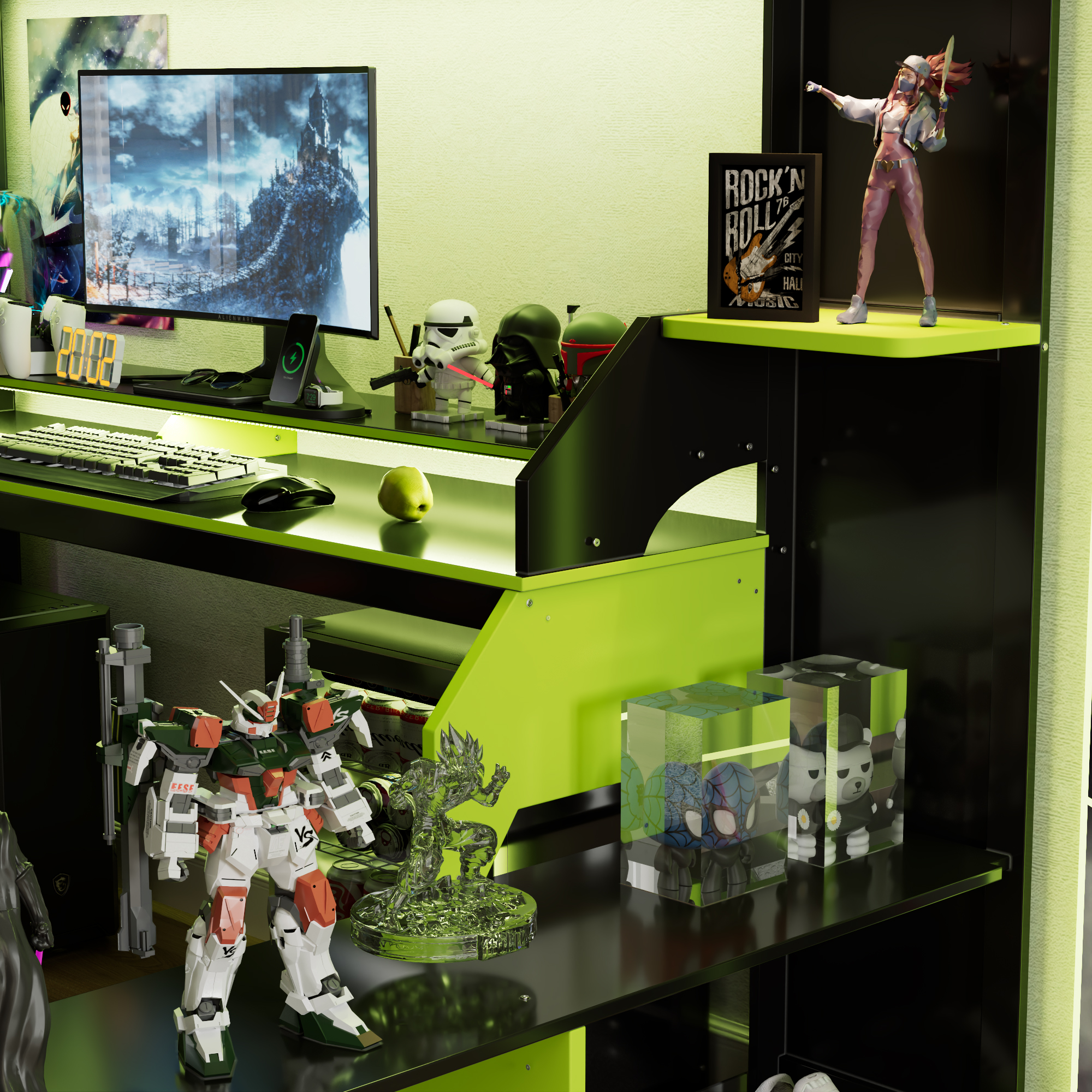 - [Immersive RGB Gaming Atmosphere] Transform any bedroom into a professional gaming suite with the integrated RGB LED light strip. Tucked between the desk and the monitor stand, the light creates a stunning visual depth that enhances the cool, sporty patterns on the guardrails. It’s the perfect blend of high-energy style and cozy ambiance for gaming, streaming, or relaxing after a long day.