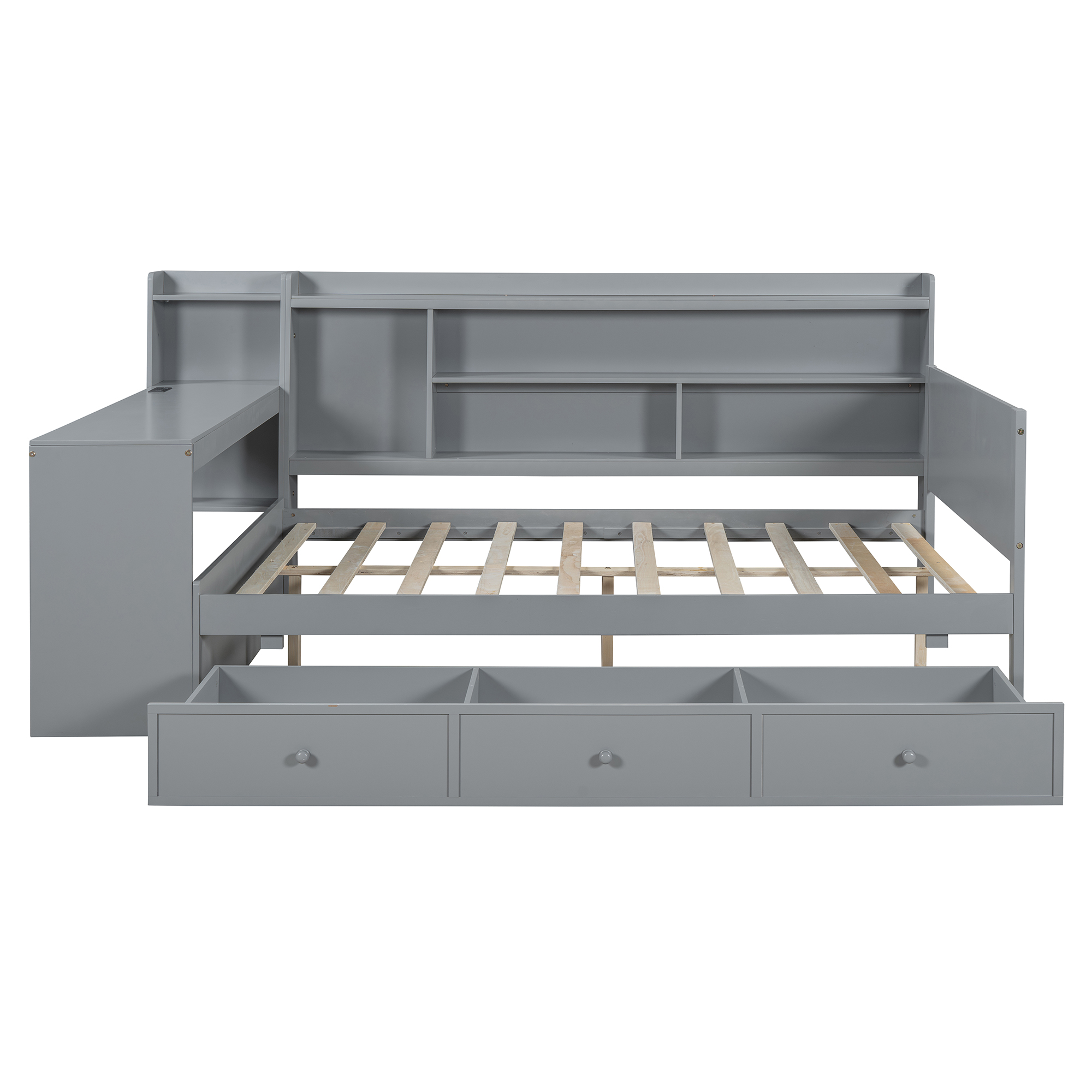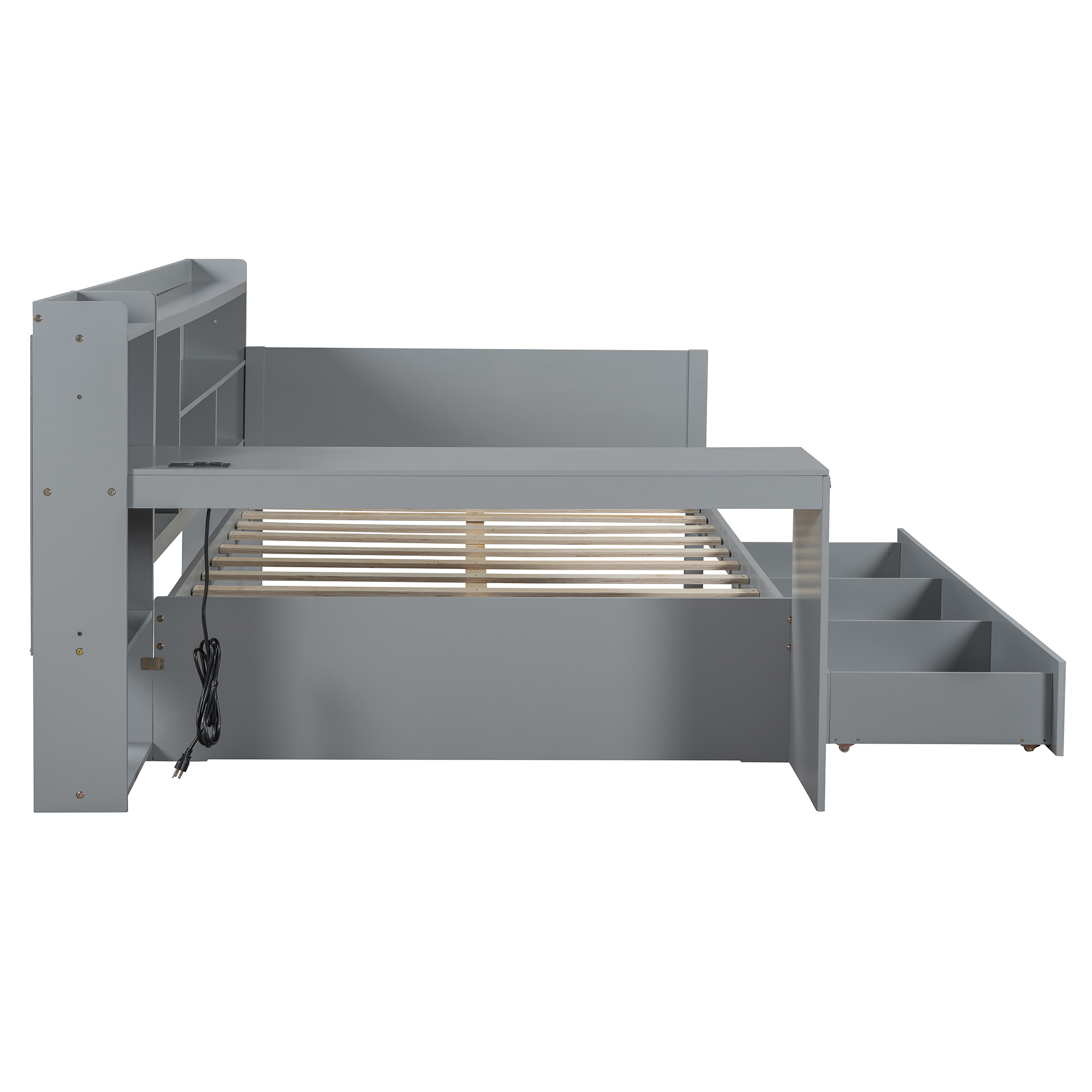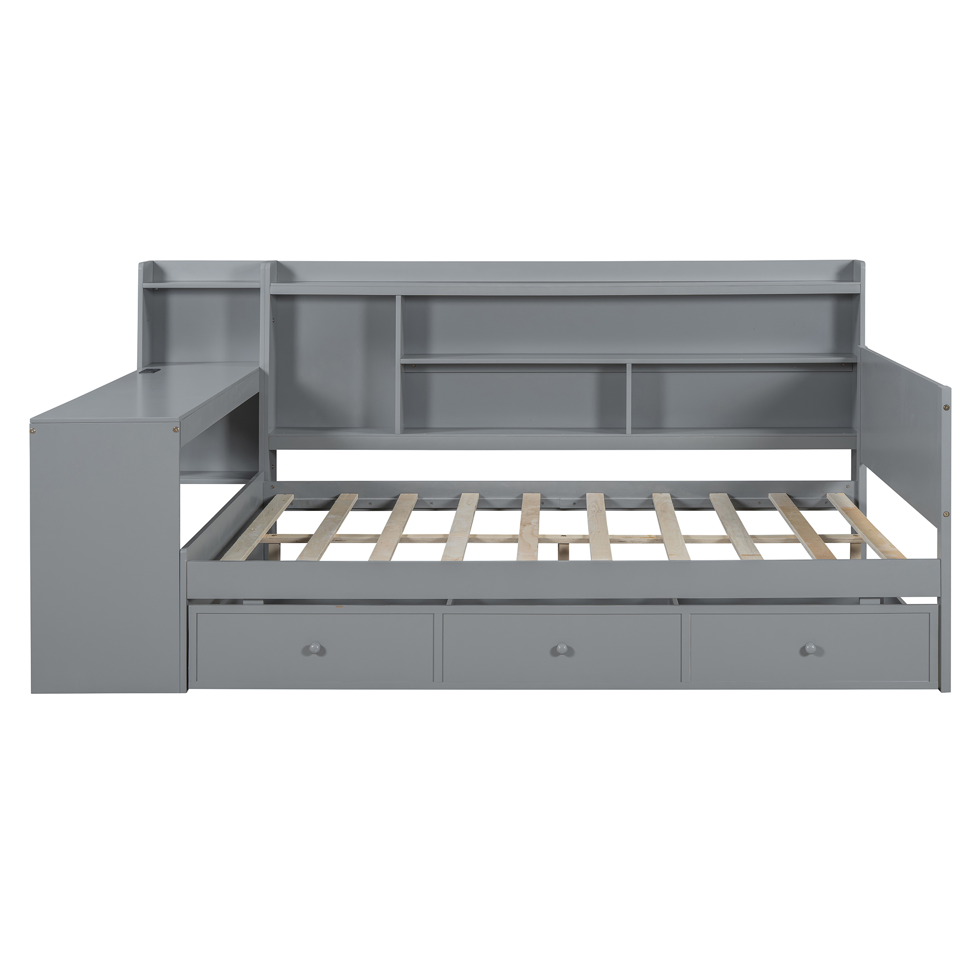 Full Size Wooden Daybed With 3 Drawers, USB Ports and Desk